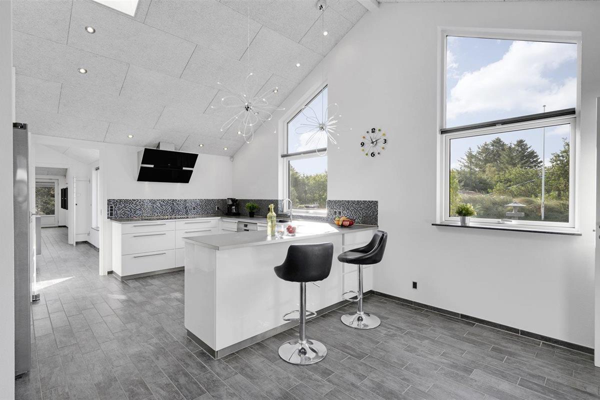 De keuken is uitgerust met amerikaanse koelkast Er is 4 inductiekookplaten, heteluchtoven, magnetron en vaatwasser.
