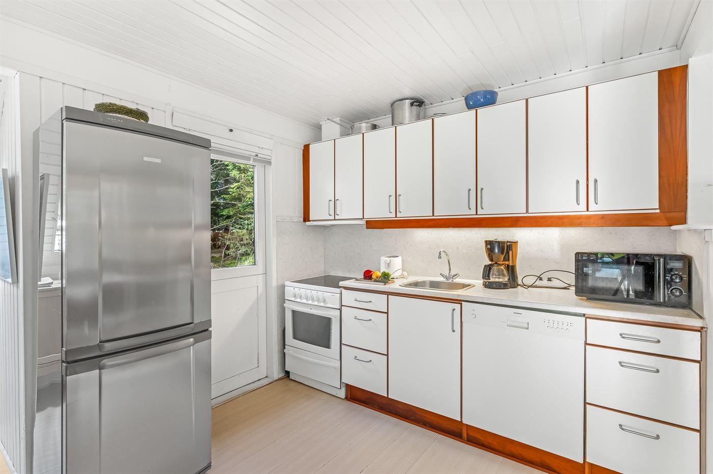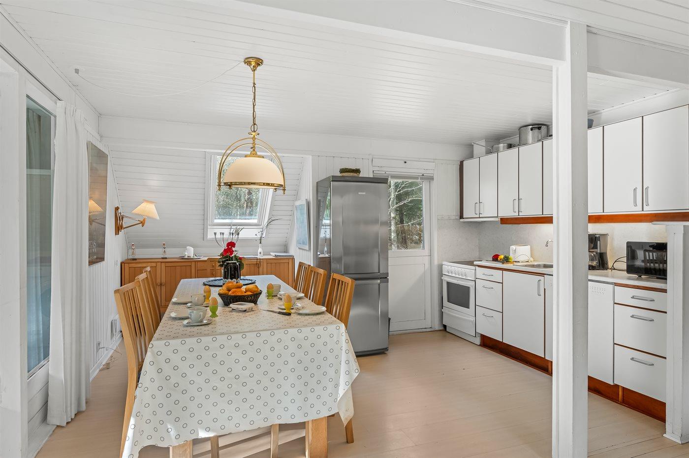 De keuken is uitgerust met koelkast Er zijn 4 keramische kookplaten, heteluchtoven en vaatwasser.