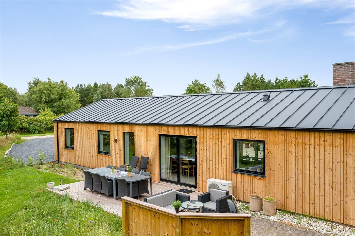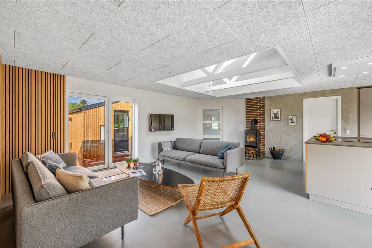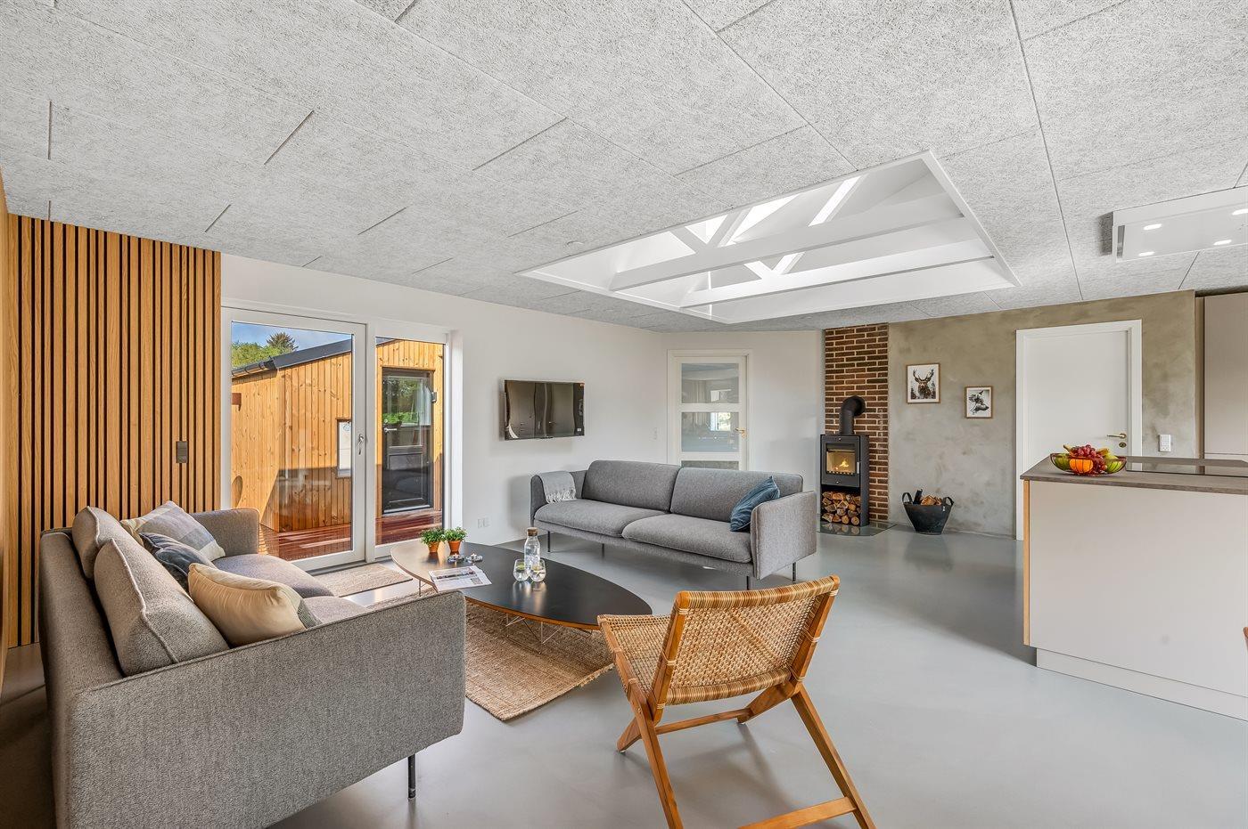 De vakantiewoning is gelegen op een 1800 m² groot natuural grond. Afstand tot de zee 3000 m. Afstand tot de fjord 500 m. Dichtstbijzijnde winkel 750 m. Er is een golfbaan op een afstand van 500 m. Bij de vakantiewoning hoort 38 m² terras. Schommel. Zandbak. Parkeerplaats bij het huis.