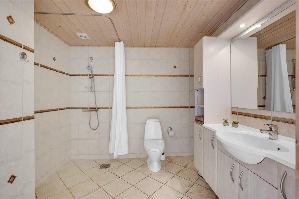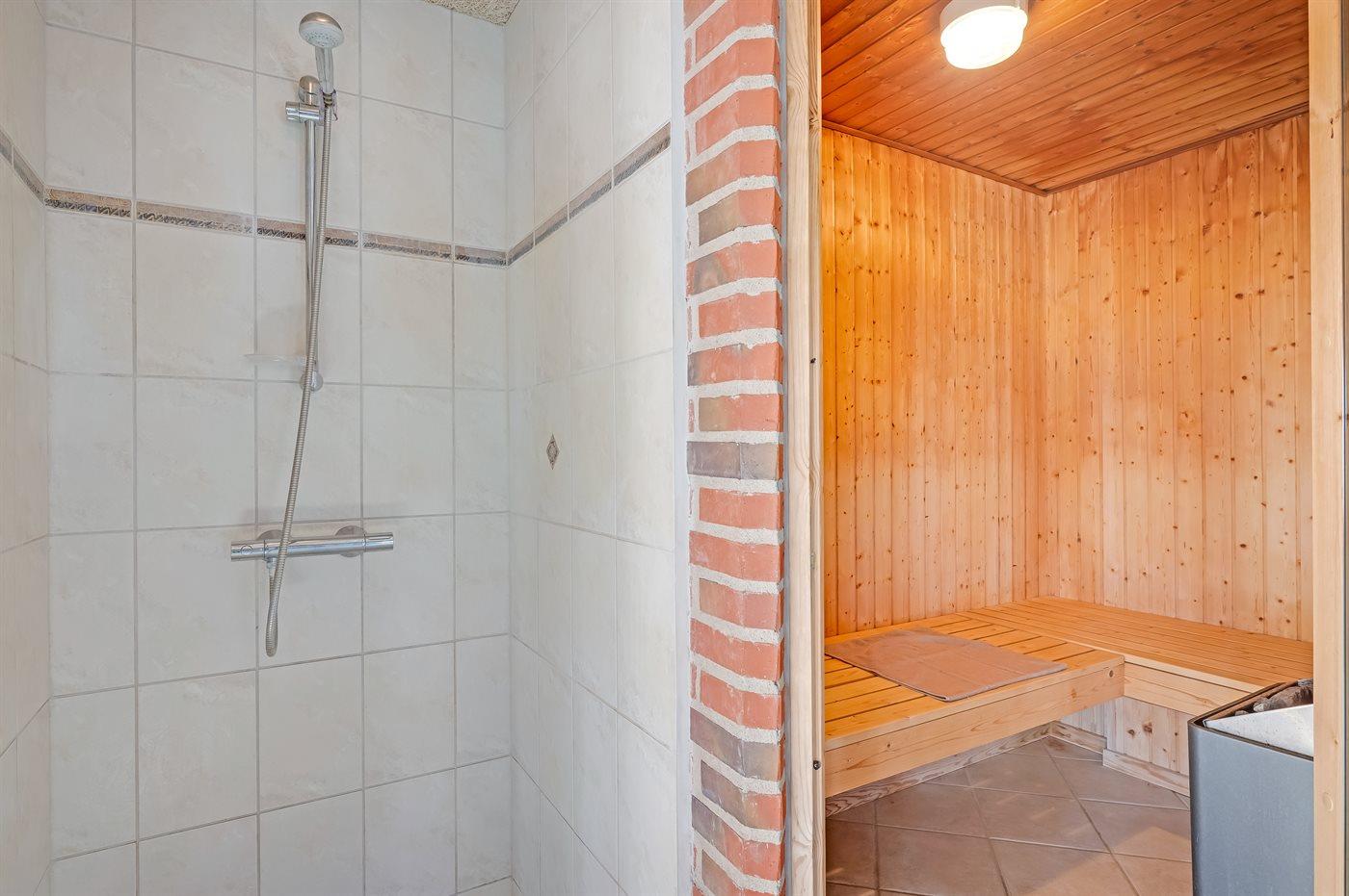 Er is 4 badkamers met douchehok en 3 toiletten, waarvan 1 gastentoilet. Er is vloerverwarming in 3 van de badkamers. De sauna biedt de gelegenheid tot ontspanning.