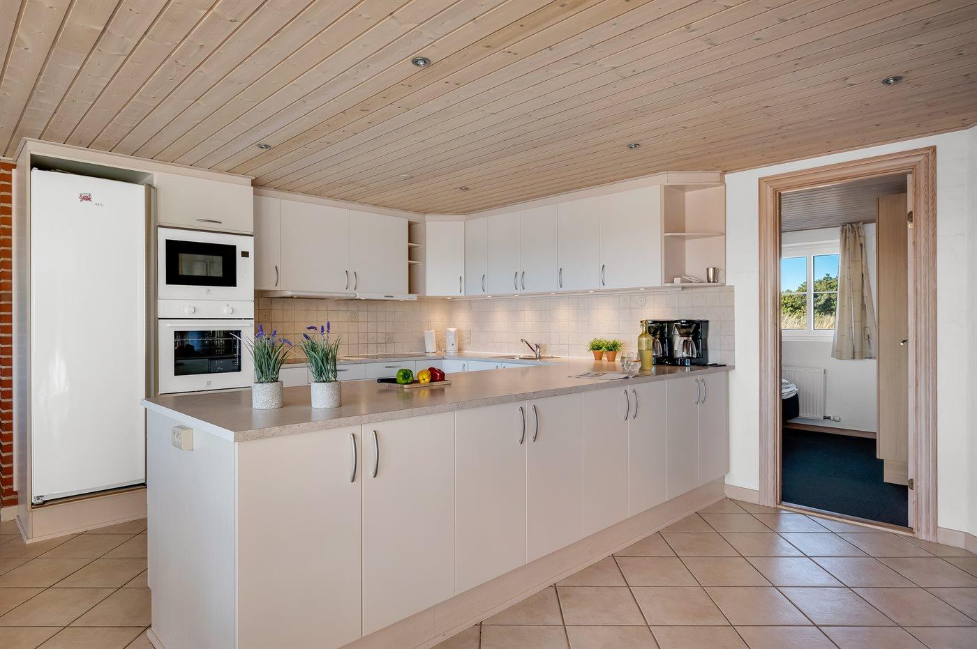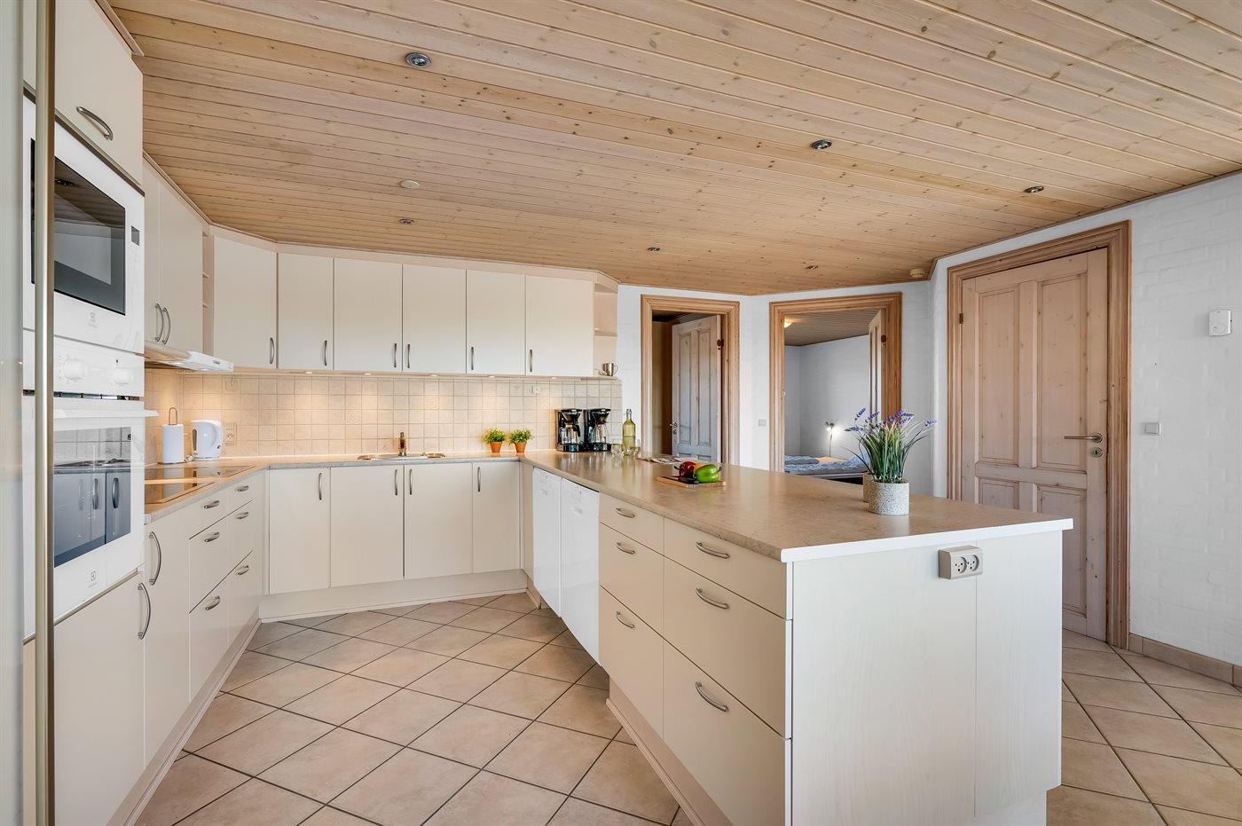 De keuken is uitgerust met koelkast Er zijn 8 keramische kookplaten, heteluchtoven, magnetron en vaatwasser.
