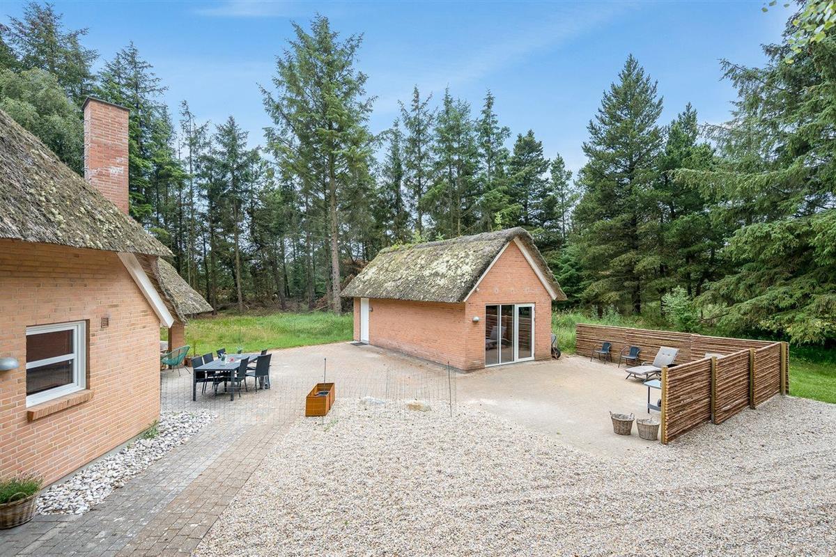 De vakantiewoning is gelegen op een 3000 m² groot natuural grond. Afstand tot de zee 1700 m. Dichtstbijzijnde winkel 2300 m. Er is een golfbaan op een afstand van 3400 m. Bij de vakantiewoning hoort terras. Daarnaast is er een overdekt terras. Gereedschapsruimte. Barbecue. Het huis heeft een stopcontact voor het opladen van een elektrische auto. Parkeerplaats bij het huis.