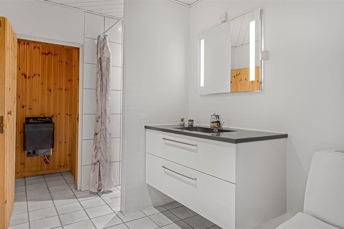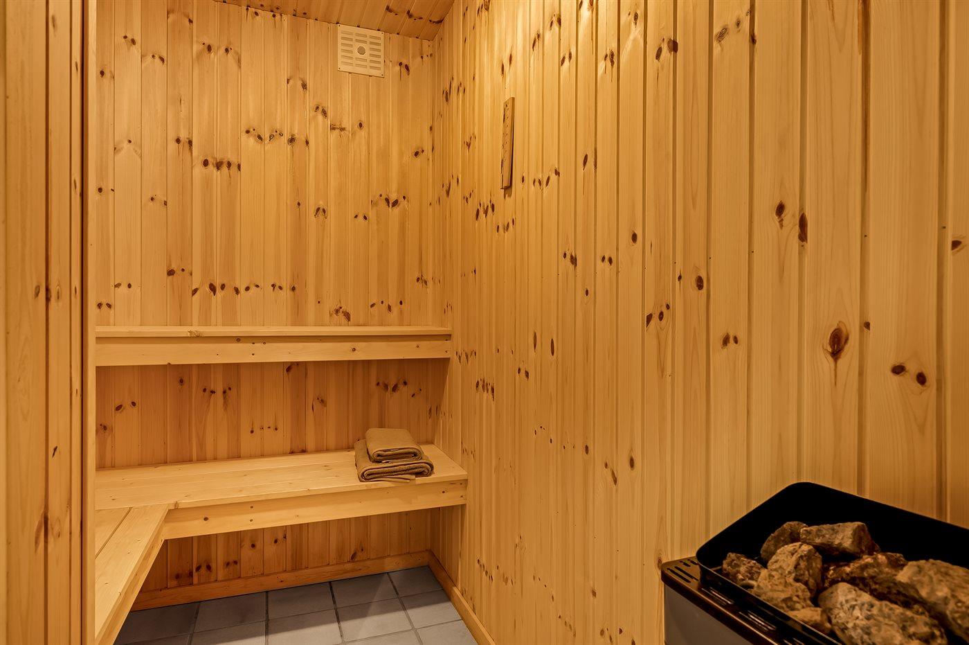 Er is 2 badkamers met douchehok en 3 toiletten, waarvan 1 gastentoilet. Er is vloerverwarming in 2 van de badkamers. De sauna biedt de gelegenheid tot ontspanning.