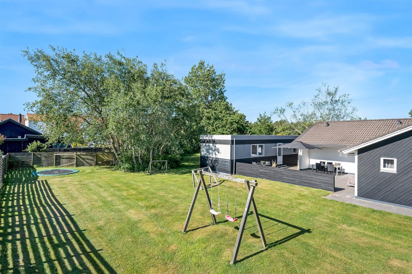 De vakantiewoning is gelegen op een 1632 m² groot natuural grond. Afstand tot de zee 1300 m. Dichtstbijzijnde winkel 200 m. Er is een golfbaan op een afstand van 6000 m. Bij de vakantiewoning hoort beschut terras. Trampoline. Voetbaldoel. Barbecue. Parkeerplaats bij het huis.
