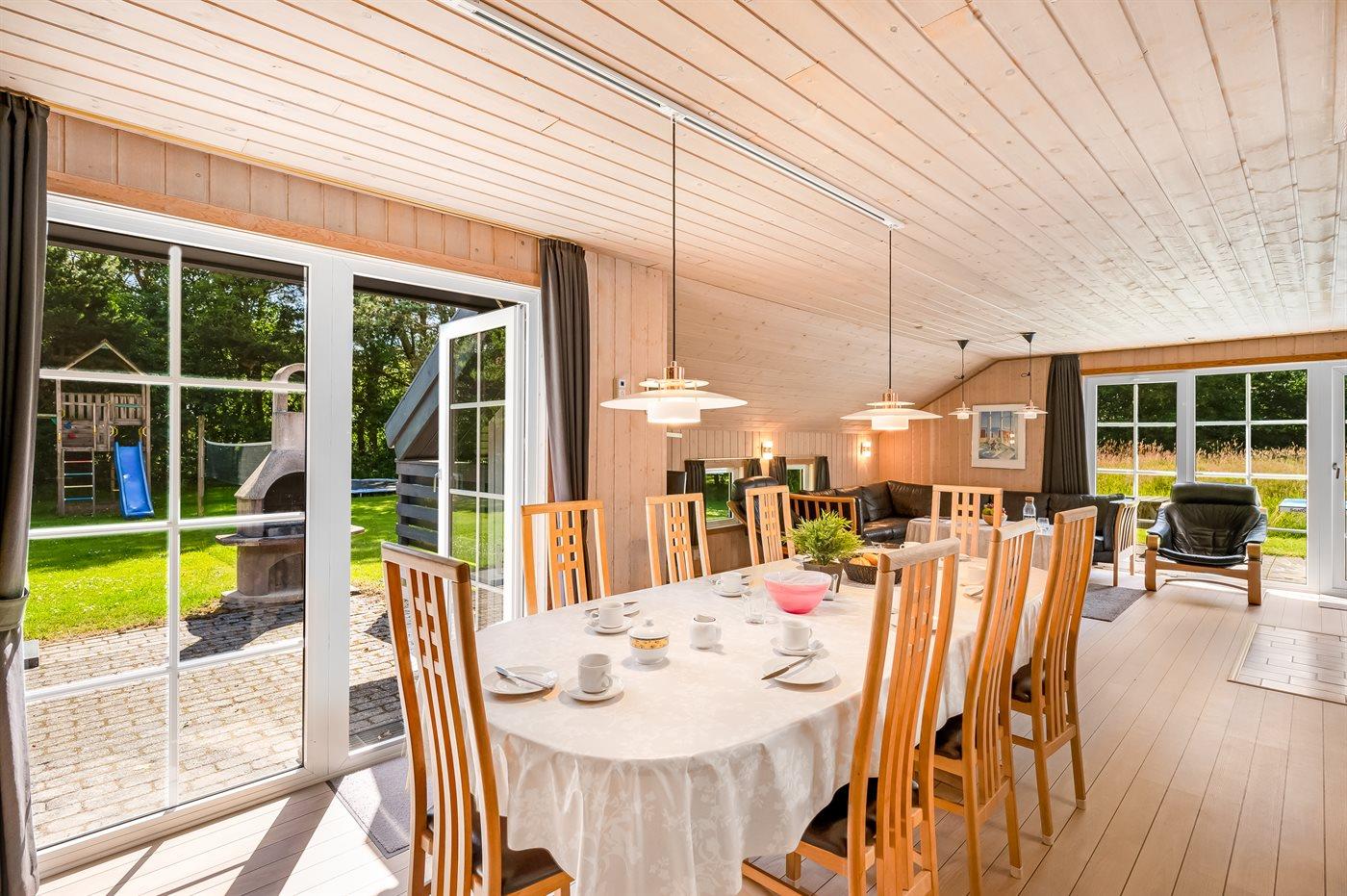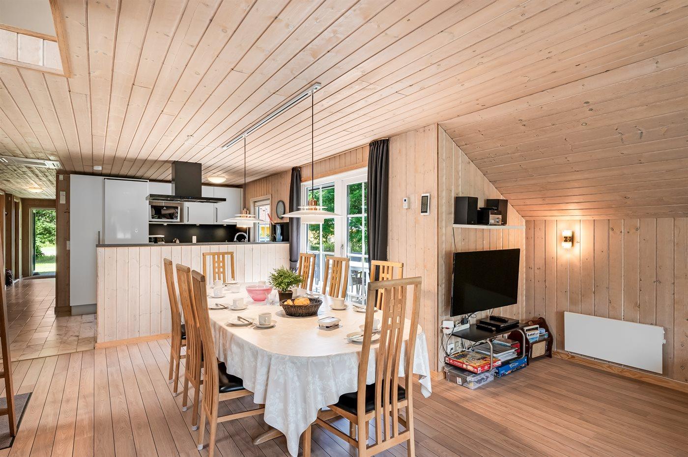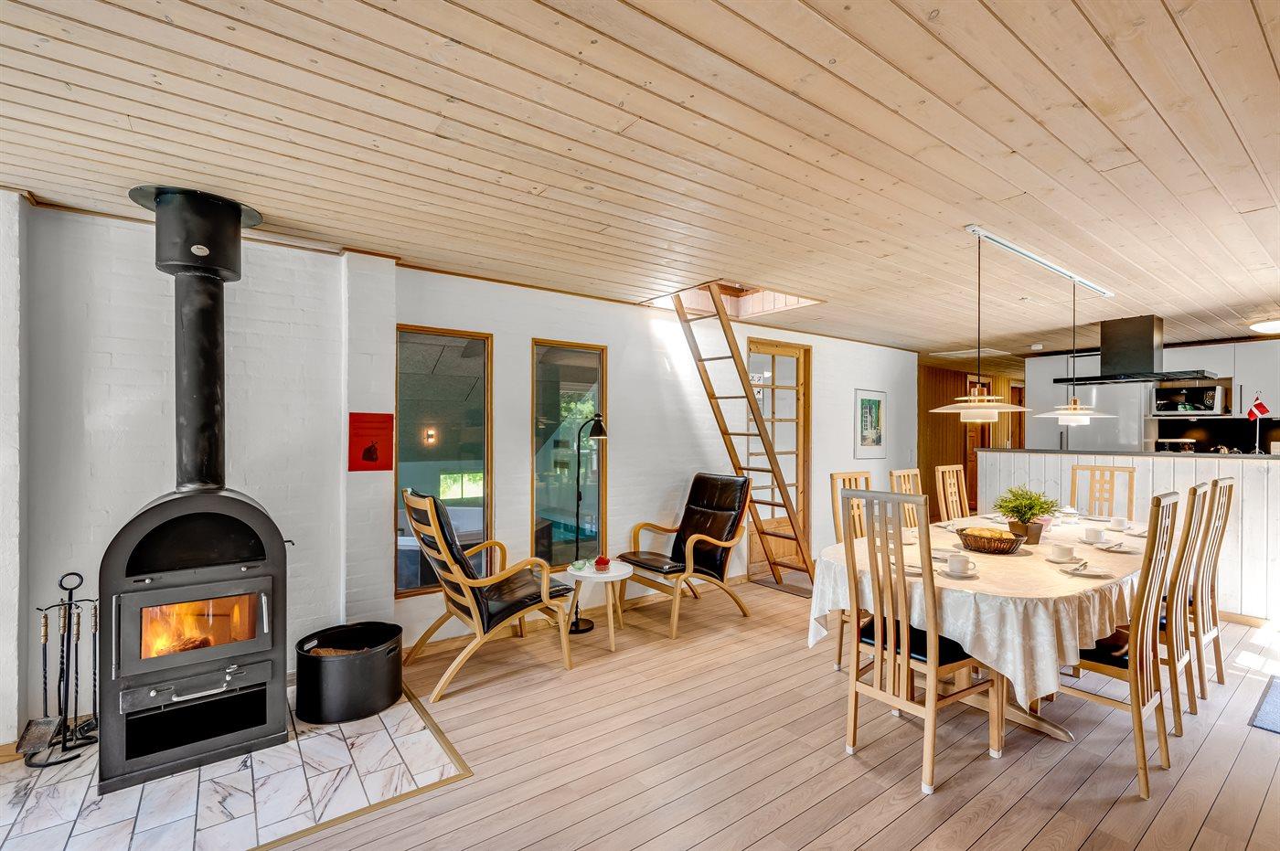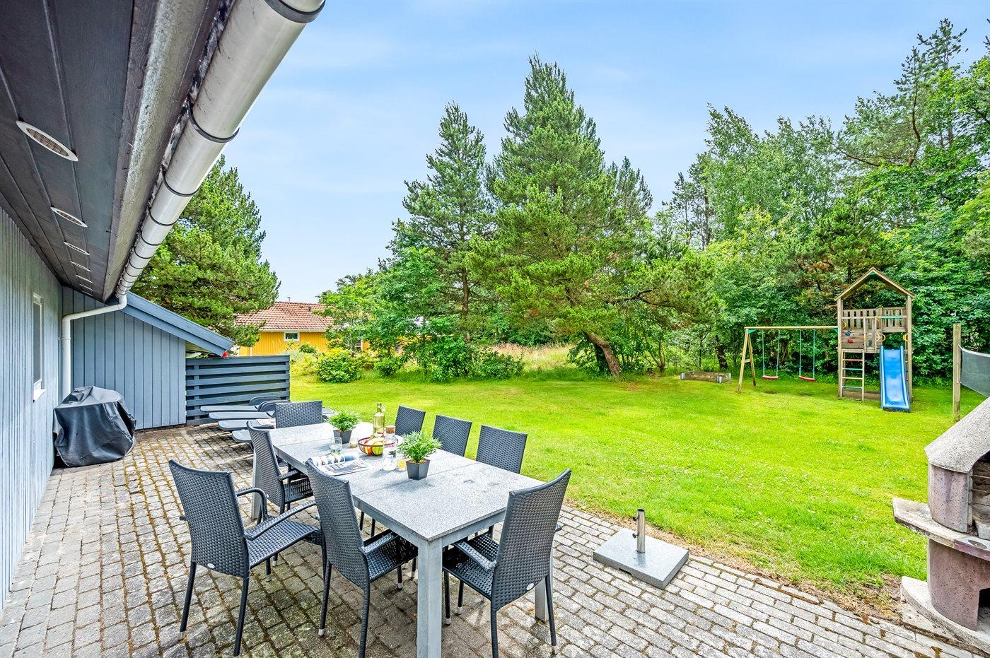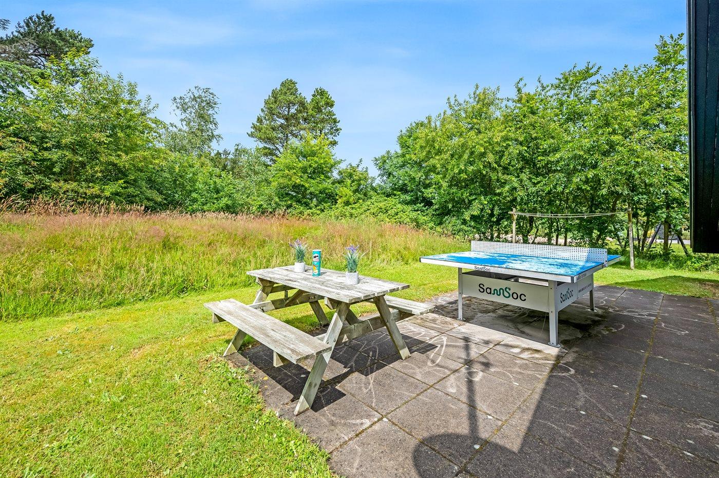 De vakantiewoning is gelegen op een 1800 m² groot natuural grond. Afstand tot de zee 5000 m. Afstand tot de fjord 2000 m. Dichtstbijzijnde winkel 7500 m. Bij de vakantiewoning hoort 60 m² terras. Gereedschapsruimte. Schommel. Zandbak. Trampoline. Speeltoren. Glijbaan. Op zwoele avonden zorgt de buitenhaard voor een gezellige sfeer. Barbecue. Het huis heeft een laadstation geïnstalleerd voor het opladen van elektrische auto's. Oplaadstekker type 2. Parkeerplaats bij het huis.