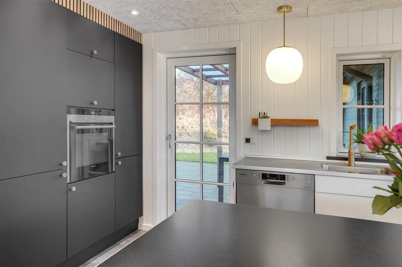 De keuken is uitgerust met koelkast Er is 4 elektrische kookplaten, bakoven, magnetron en vaatwasser.