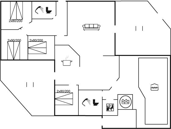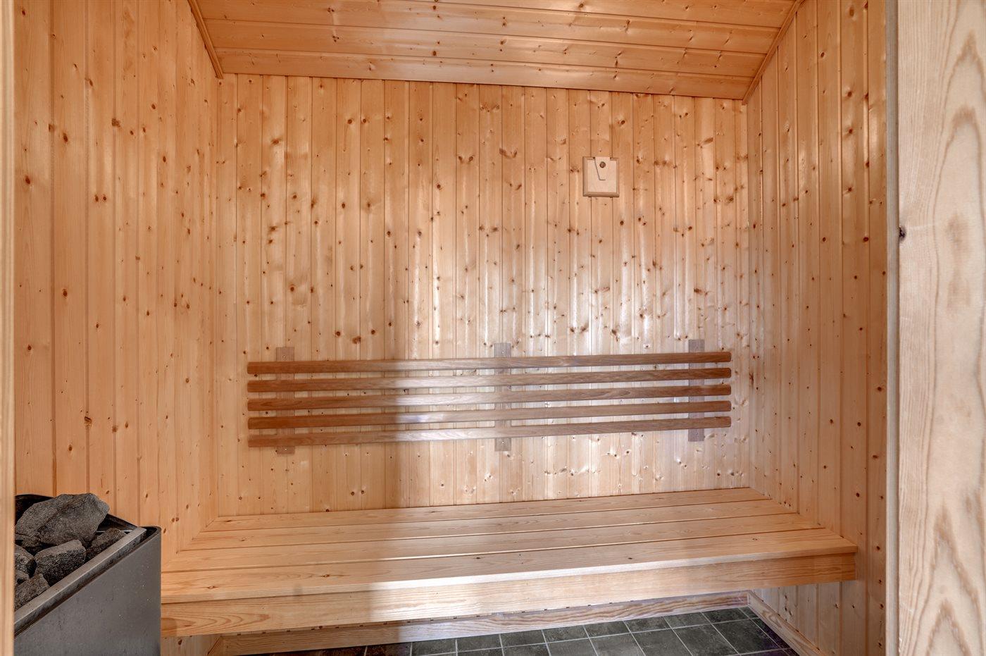 Er is 2 badkamers met douchehok en 2 toiletten. Er is vloerverwarming in 2 van de badkamers. De sauna biedt de gelegenheid tot ontspanning.