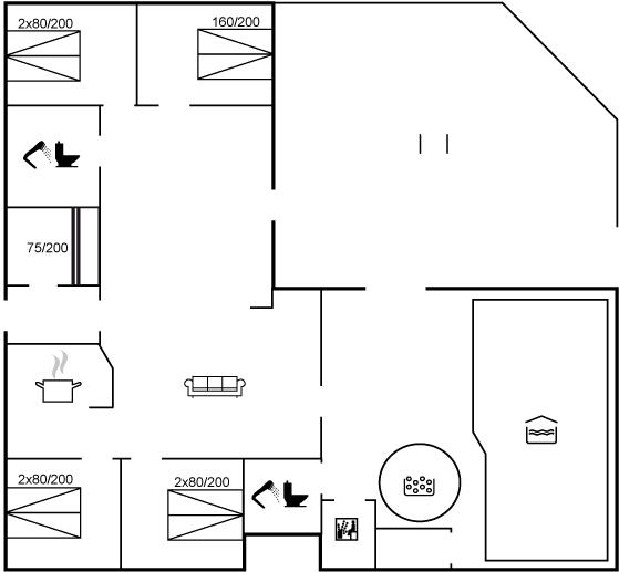Er zijn in totaal 5 slaapkamers. De slaapplaatsen zijn als volgt verdeeld: 8 slaapplaatsen in tweepersoonsbedden. 2 slaapplaatsen in stapelbed.