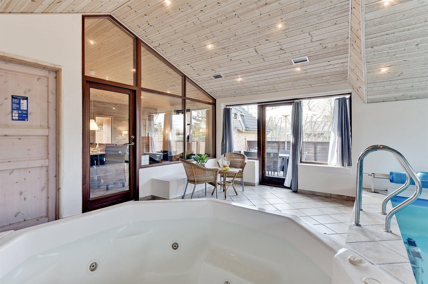 In het binnenbubbelbad (standwater) is plaats voor 4 personen.