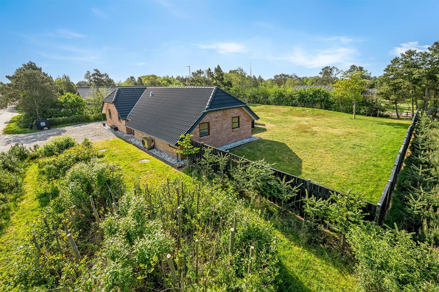 De vakantiewoning is gelegen op een 1680 m² groot natuural grond. De grond is omheind. Afstand tot de zee 500 m. Dichtstbijzijnde winkel 400 m. Bij de vakantiewoning hoort 40 m² terras. Daarnaast is er een 10 m² groot overdekt terras. Waarvan in totaal 40 m² beschut terras. Terrasverwarmer. Schommel. Zandbak. Voetbaldoel. Gasbarbecue ter beschikking. Het huis heeft een stopcontact voor het opladen van een elektrische auto.