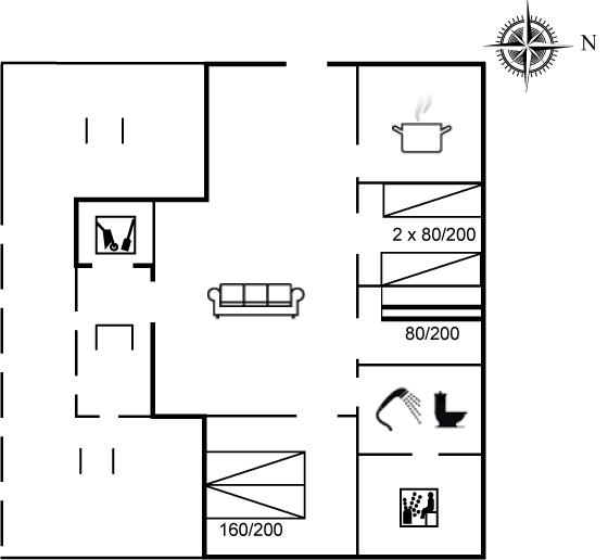 Er zijn in totaal 3 slaapkamers. De slaapplaatsen zijn als volgt verdeeld: 2 slaapplaatsen in tweepersoonsbed. 2 slaapplaatsen in eenpersoonsbedden. 2 slaapplaatsen in stapelbed.