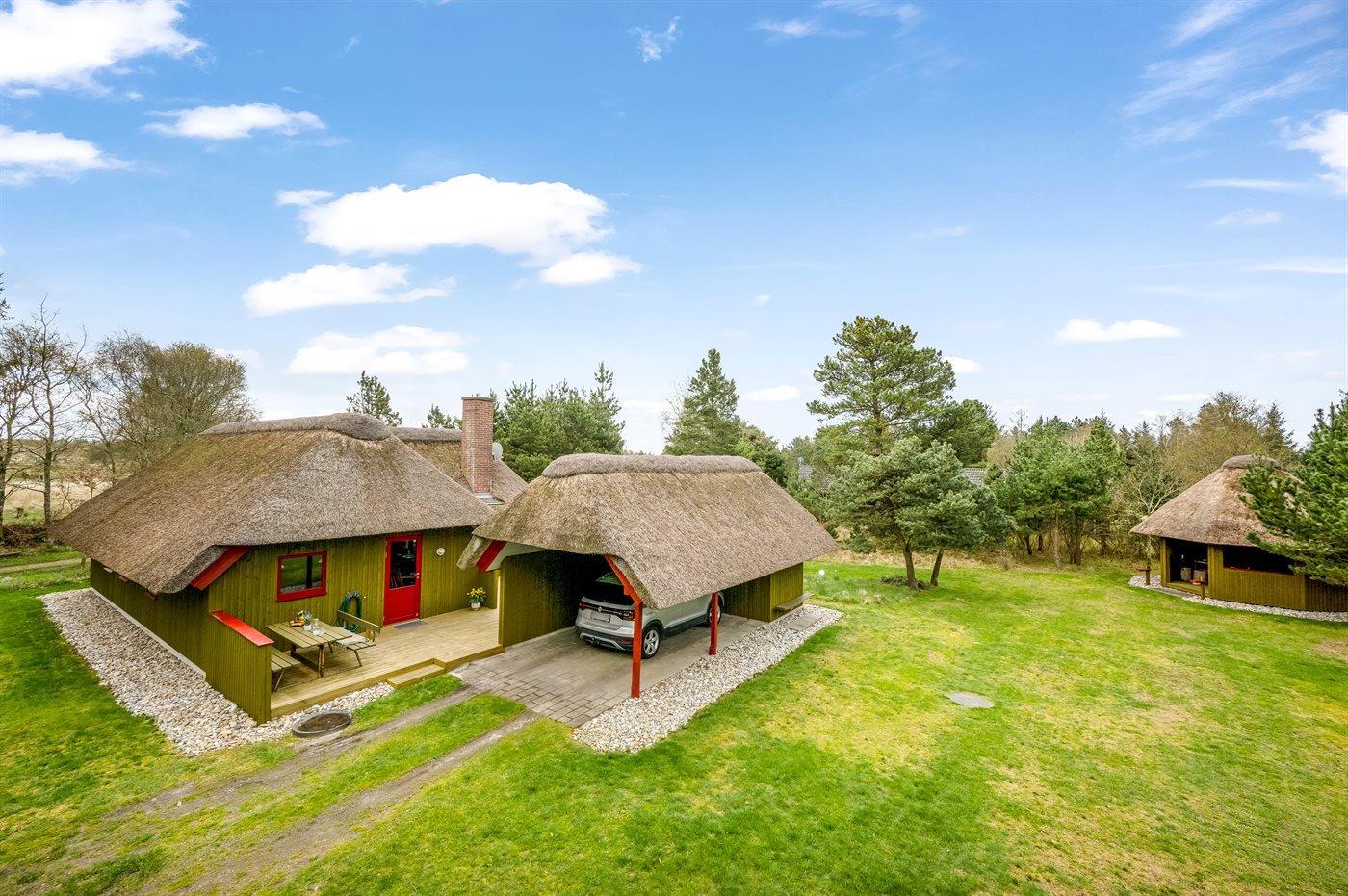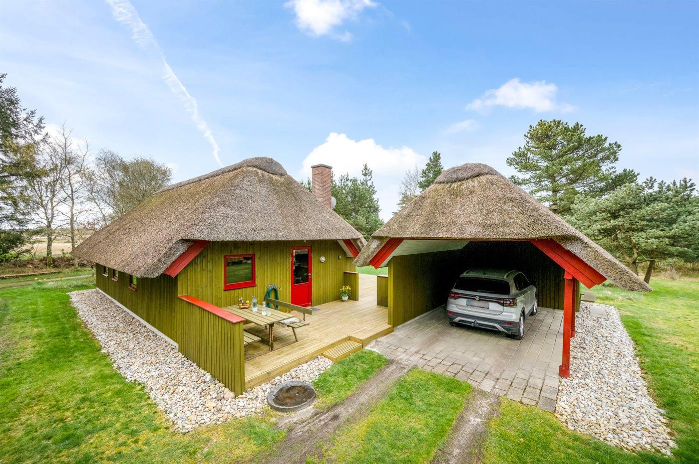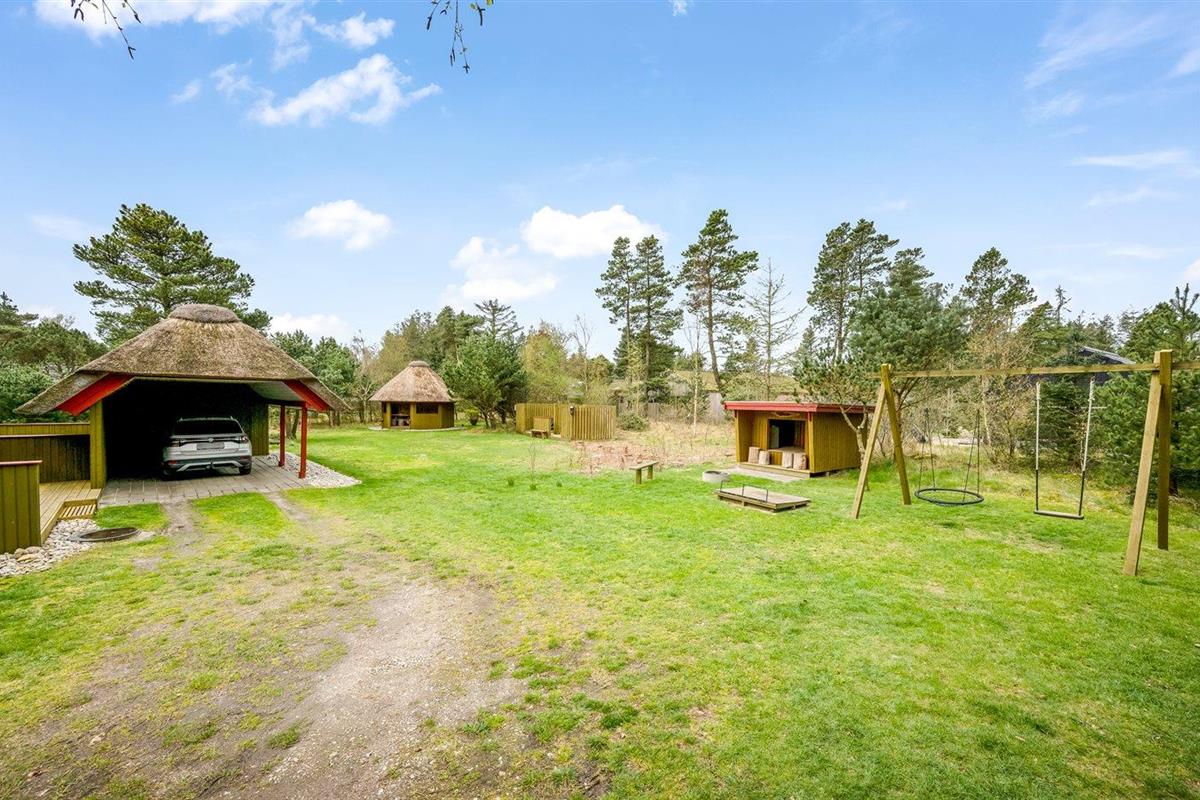 De vakantiewoning is gelegen op een 2300 m² groot natuural grond. Afstand tot de zee 1100 m. Dichtstbijzijnde winkel 1500 m. Bij de vakantiewoning hoort 40 m² terras. Daarnaast is er een 8 m² groot overdekt terras. Gereedschapsruimte. Schommel. Zandbak.Vuurplaats. Carport ter beschikking.