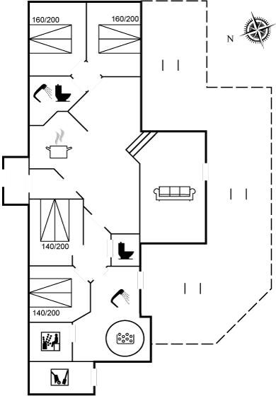 Er is 2 badkamers met douchehok en 2 toiletten, waarvan 1 gastentoilet. Er is vloerverwarming in 2 van de badkamers. De sauna biedt de gelegenheid tot ontspanning.