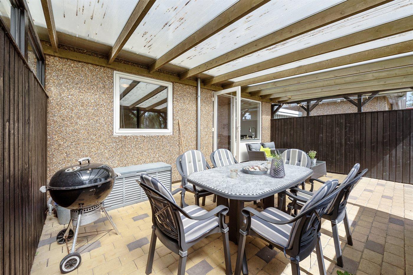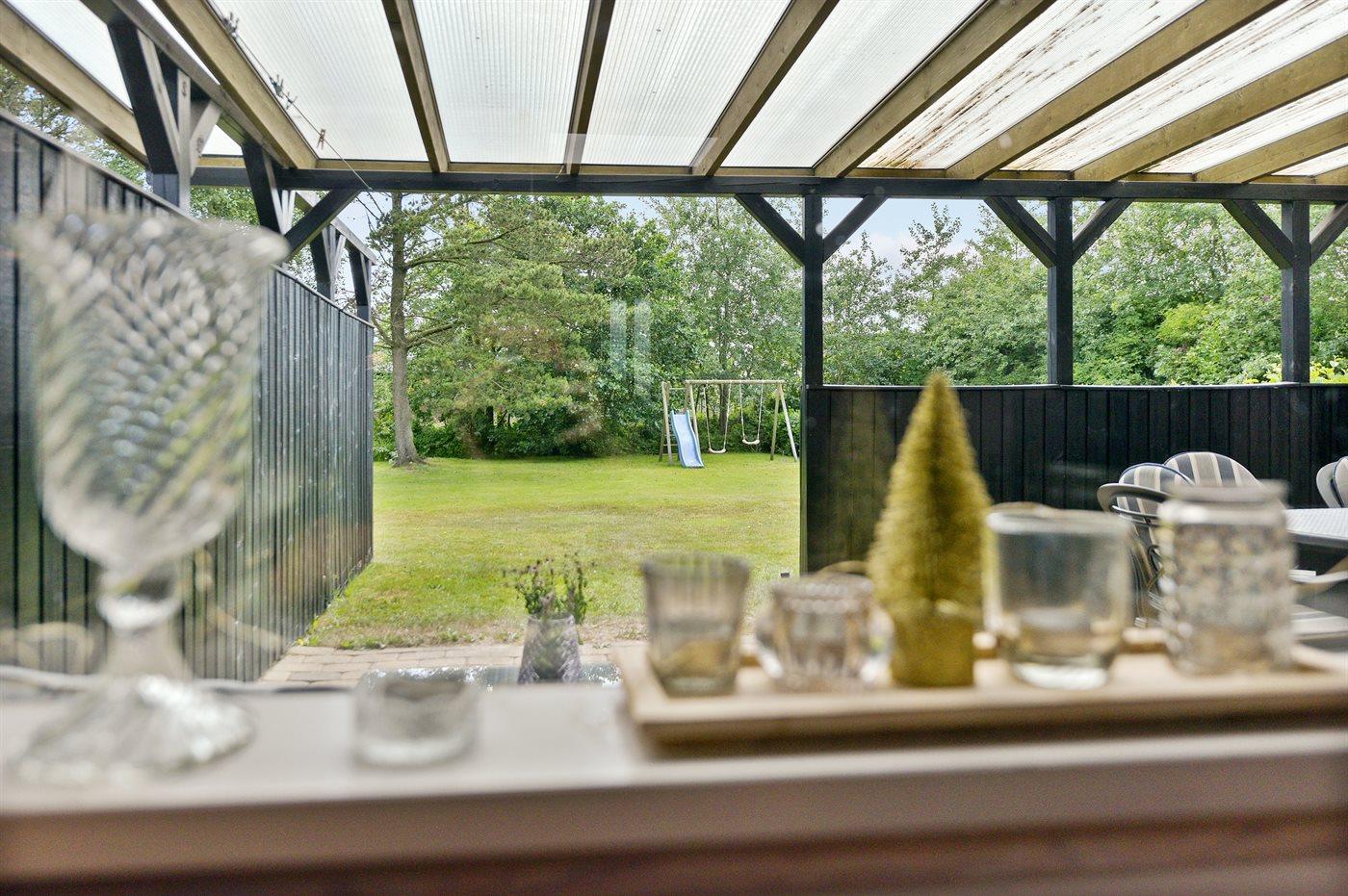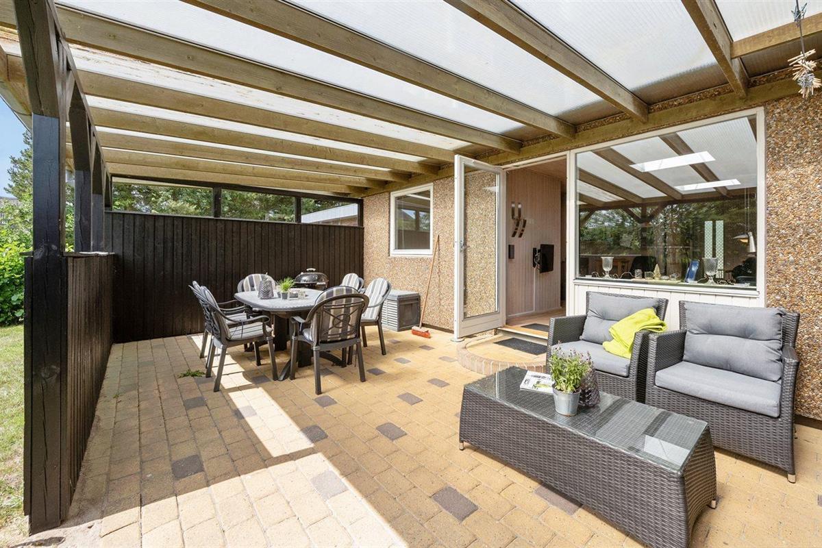 De vakantiewoning is gelegen op een 400 m² groot aangelegde tuin. Afstand tot de zee 900 m. Dichtstbijzijnde winkel 200 m. Daarnaast is er een 23 m² groot overdekt terras. Schommel. Parkeerplaats bij het huis.