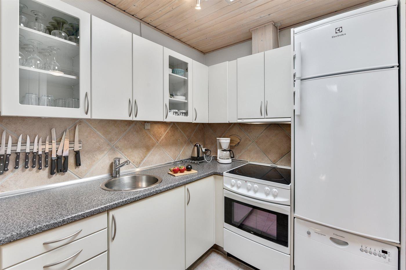 De keuken is uitgerust met koelkast Er zijn 4 keramische kookplaten, heteluchtoven, magnetron en vaatwasser.