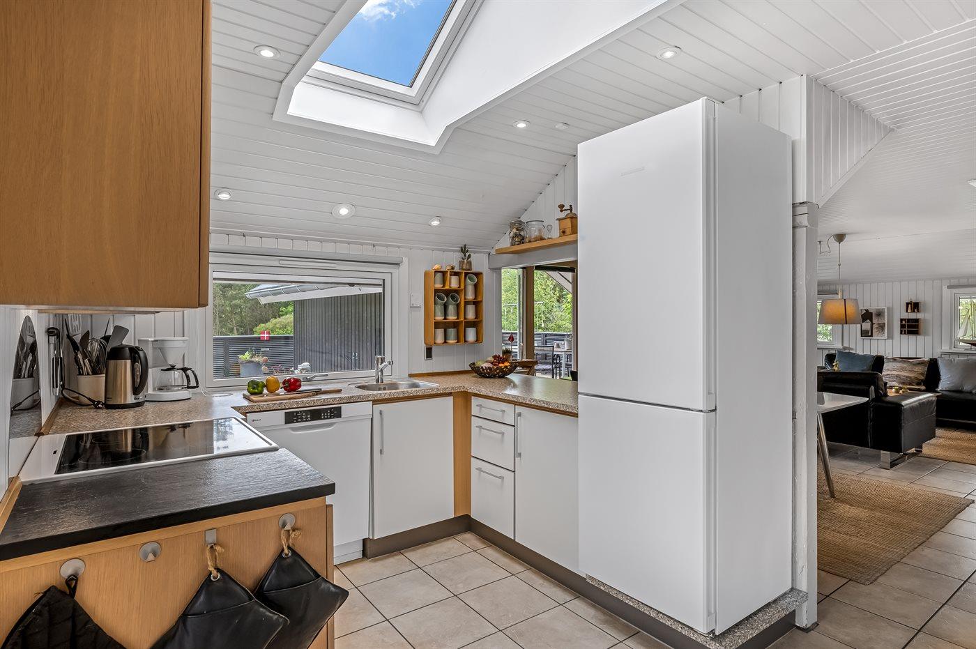 De keuken is uitgerust met koelkast Er zijn 4 keramische kookplaten, heteluchtoven, magnetron en vaatwasser.