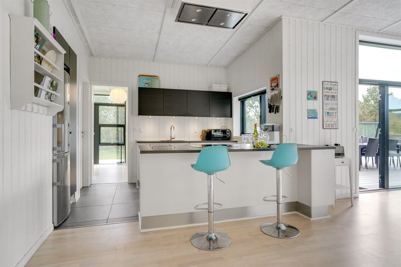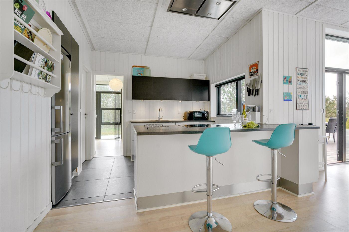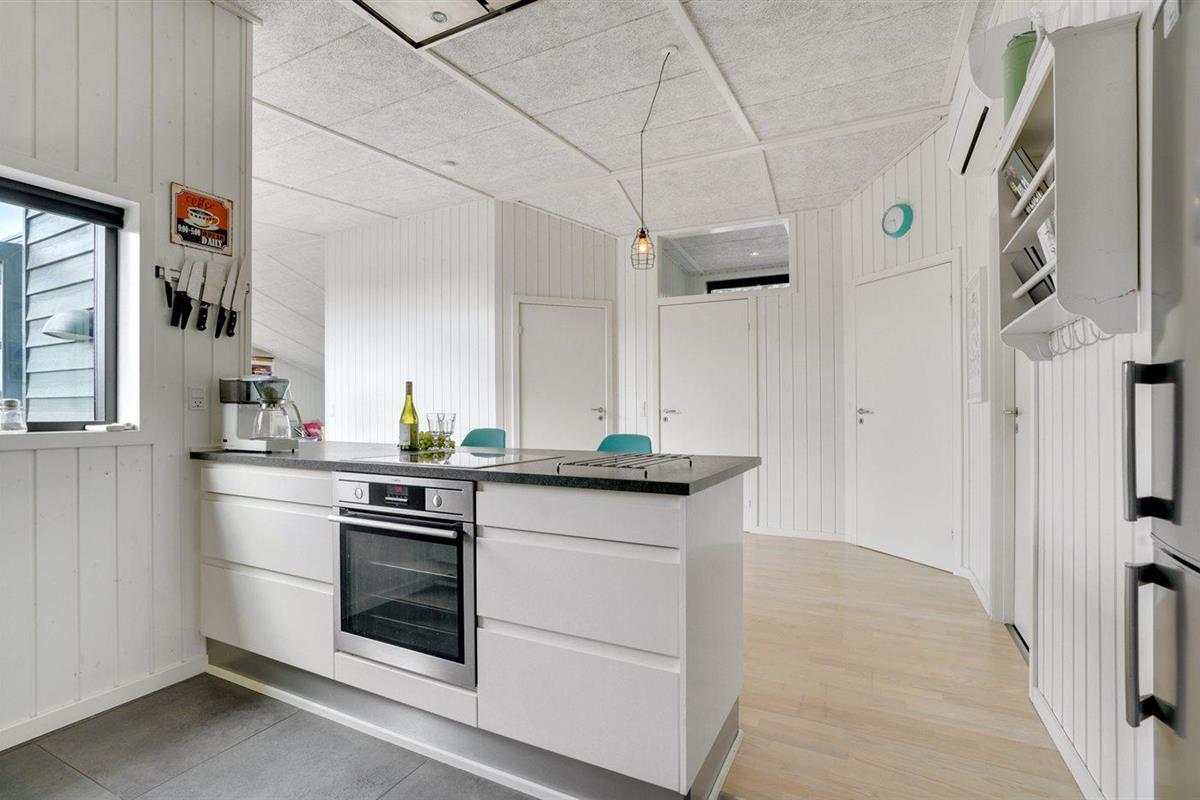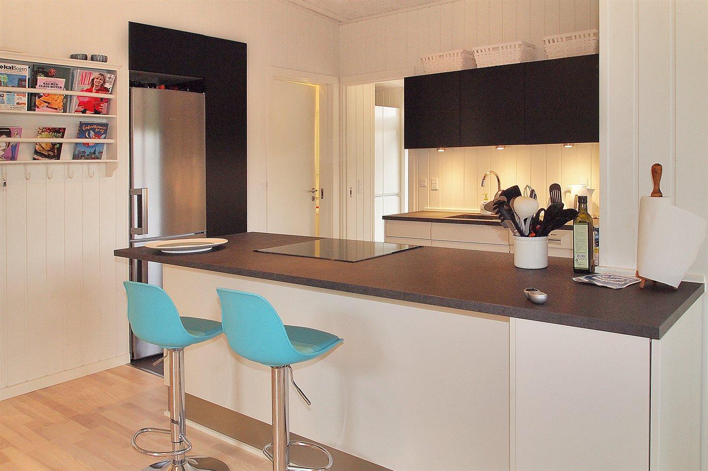 De keuken is uitgerust met koelkast Er is 4 inductiekookplaten, heteluchtoven, magnetron en vaatwasser.