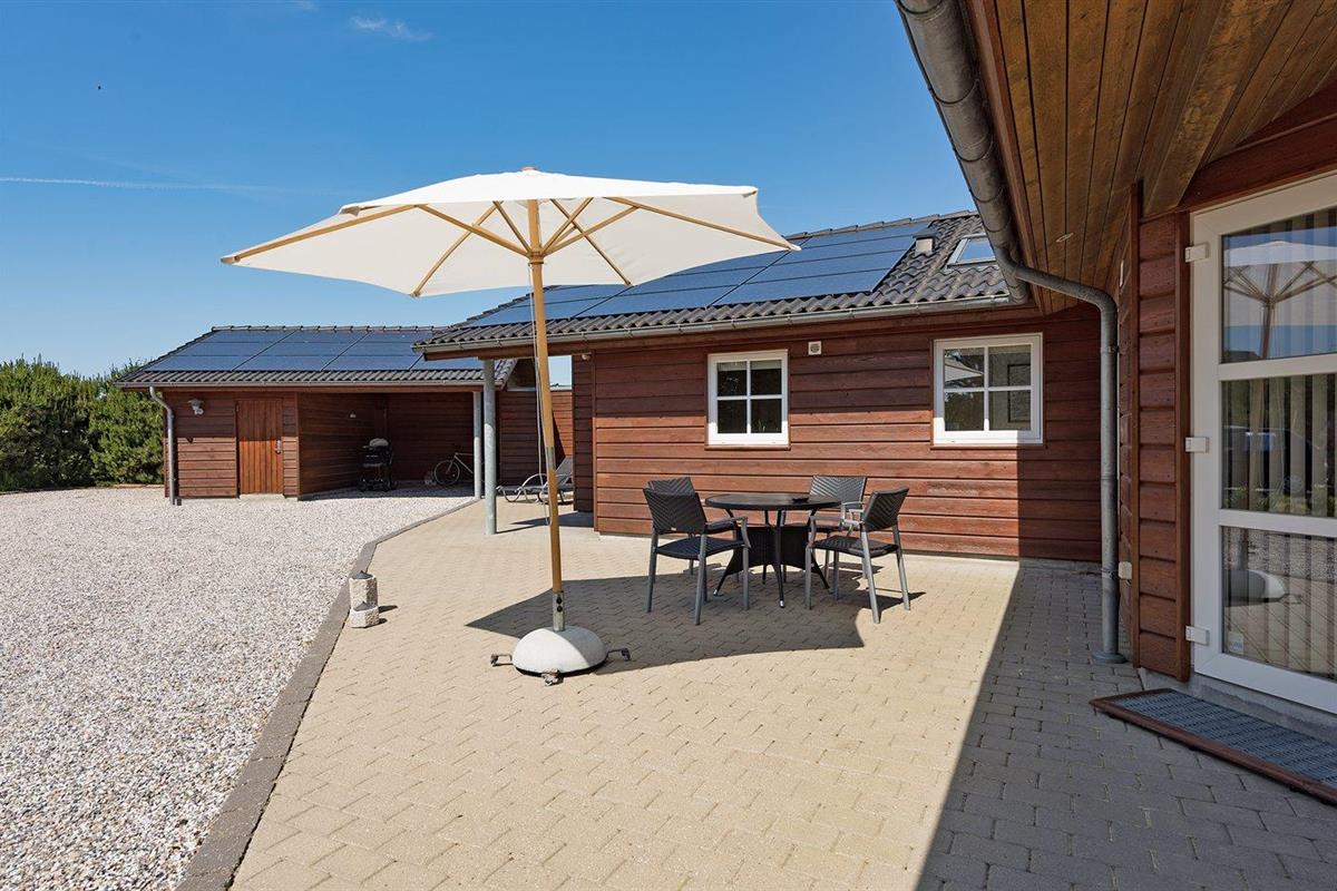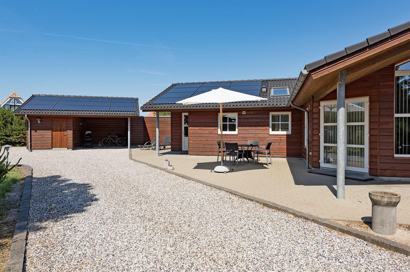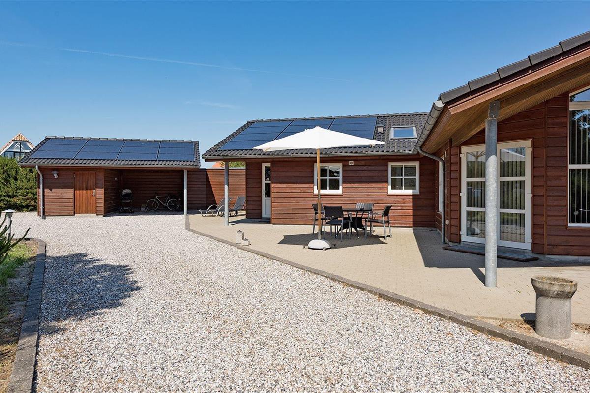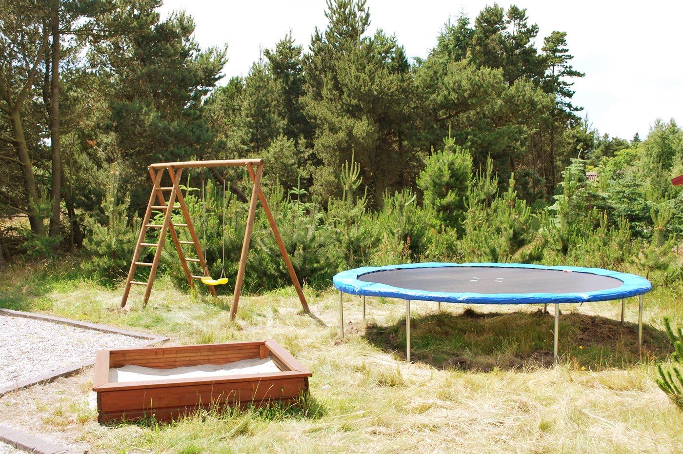 De vakantiewoning is gelegen op een 2410 m² groot natuural grond. Afstand tot de zee 700 m. Dichtstbijzijnde winkel 100 m. Bij de vakantiewoning hoort 80 m² terras. Daarnaast is er een 25 m² groot overdekt terras. Schommel. Zandbak. Trampoline.