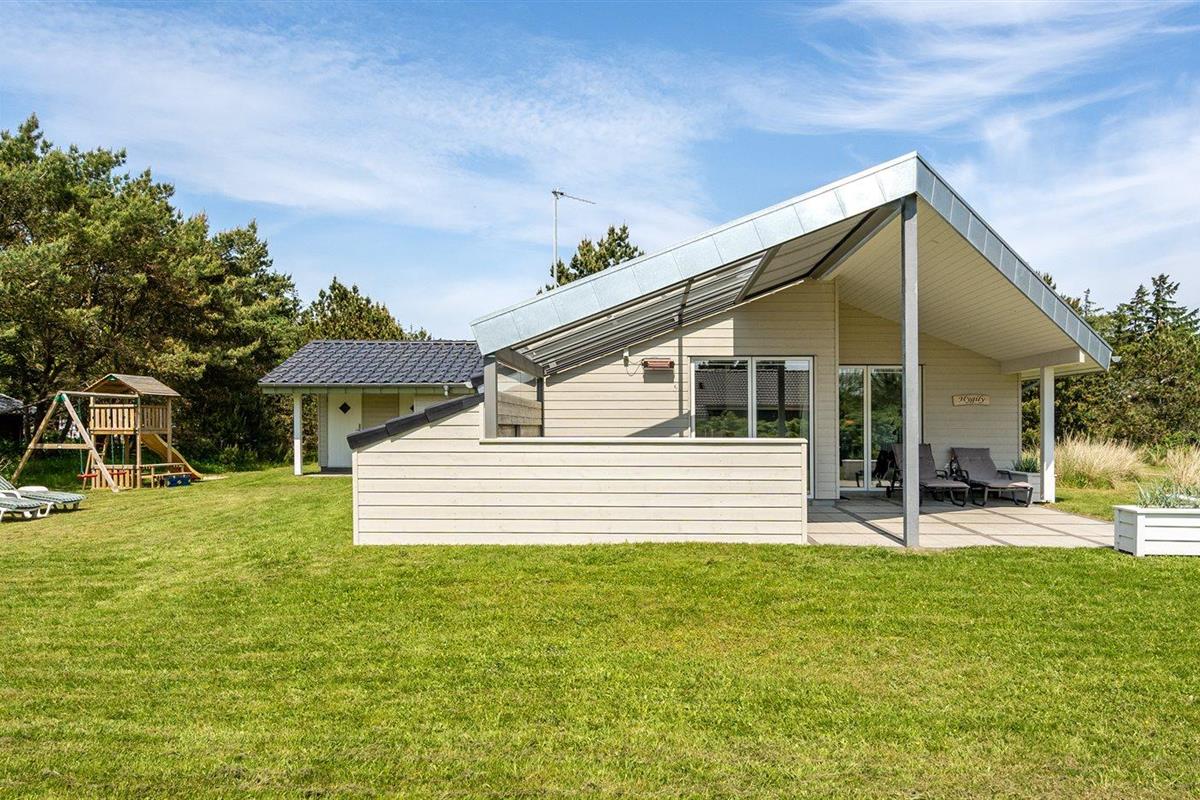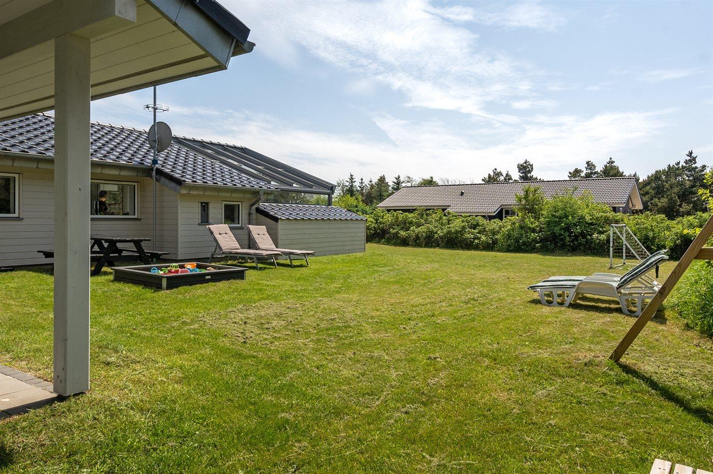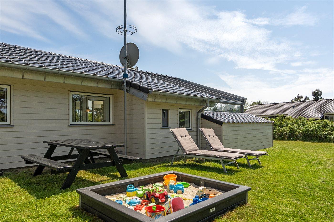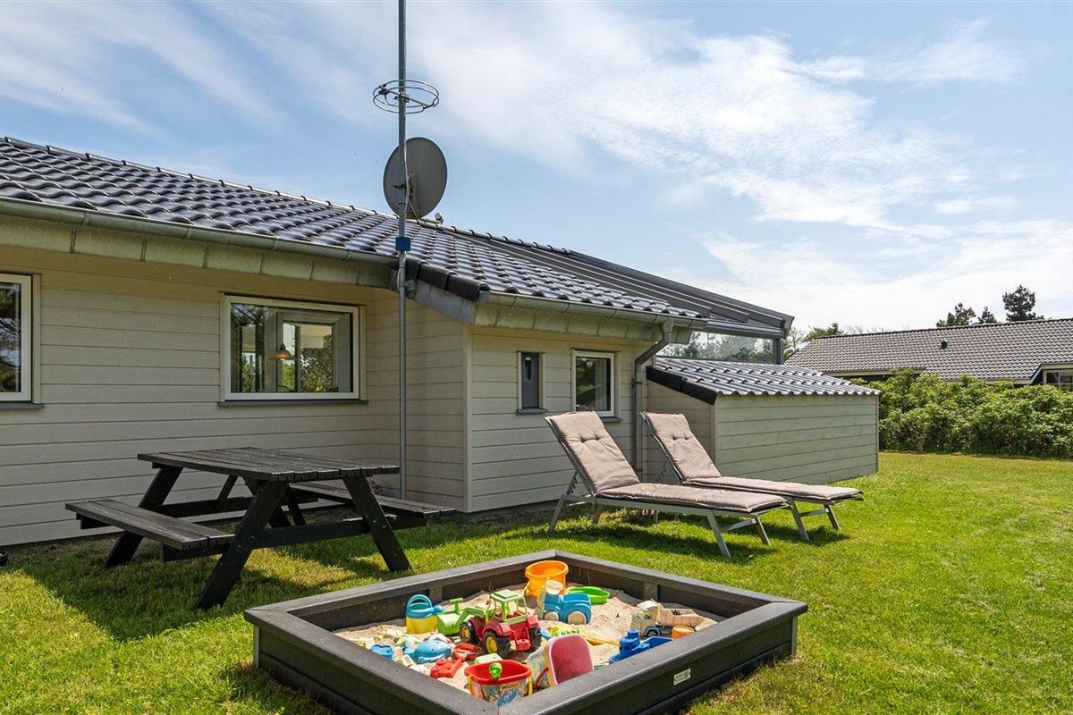De vakantiewoning is gelegen op een 1792 m² groot natuural grond. Afstand tot de zee 600 m. Dichtstbijzijnde winkel 400 m. Bij de vakantiewoning hoort 34 m² terras. Daarnaast is er een 34 m² groot overdekt terras. Gereedschapsruimte. Schommel. Zandbak. Barbecue. Het huis heeft een stopcontact voor het opladen van een elektrische auto. Oplaadstekker type 2. Met 11 kW-laadvermogen. Parkeerplaats bij het huis.
