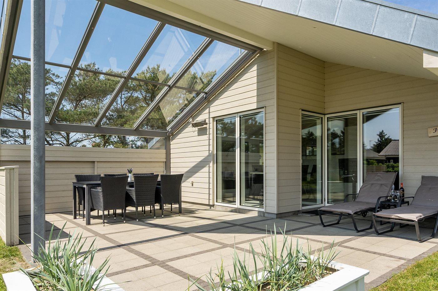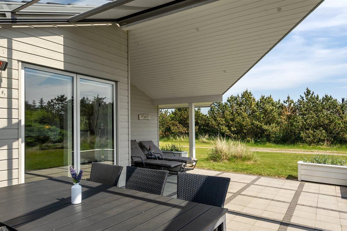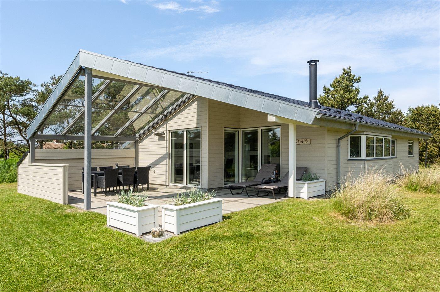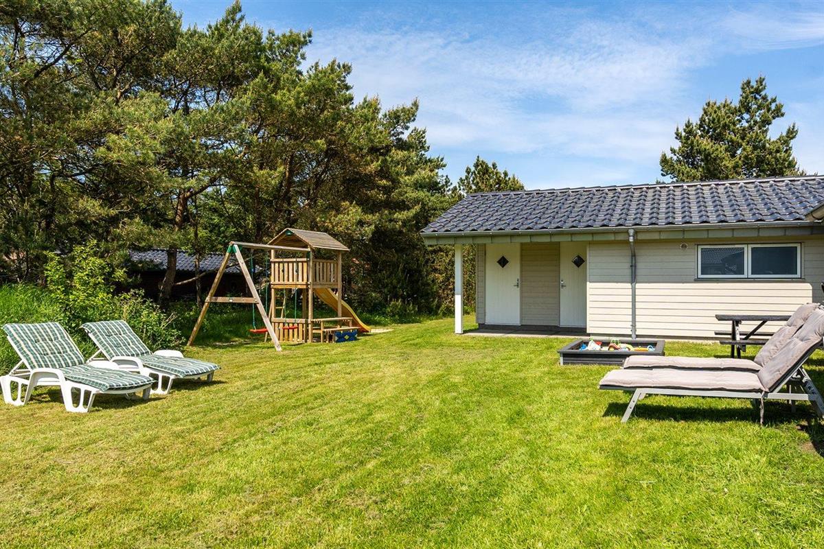 De vakantiewoning is gelegen op een 1792 m² groot natuural grond. Afstand tot de zee 600 m. Dichtstbijzijnde winkel 400 m. Bij de vakantiewoning hoort 34 m² terras. Daarnaast is er een 34 m² groot overdekt terras. Gereedschapsruimte. Schommel. Zandbak. Barbecue. Het huis heeft een stopcontact voor het opladen van een elektrische auto. Oplaadstekker type 2. Met 11 kW-laadvermogen. Parkeerplaats bij het huis.