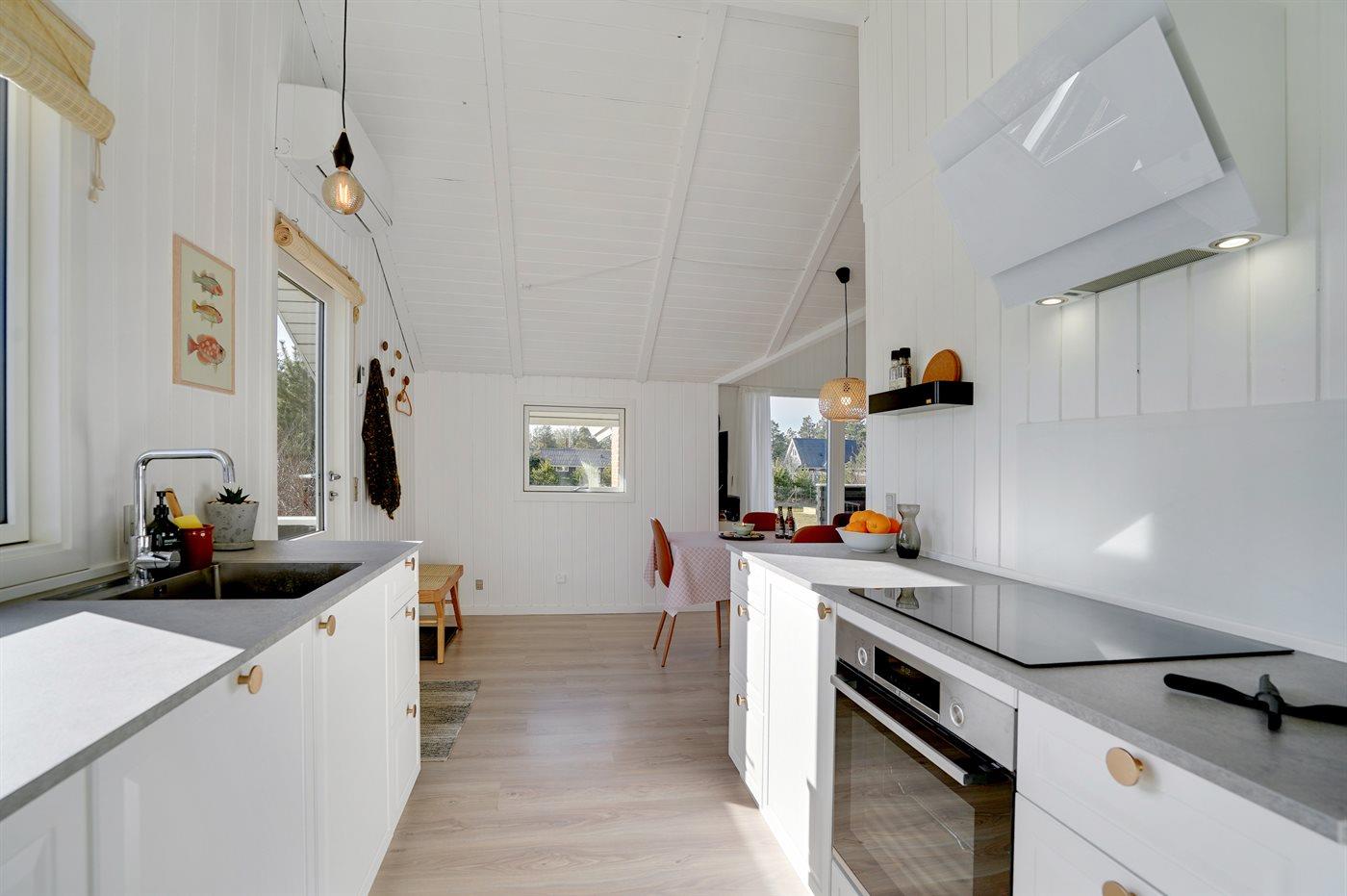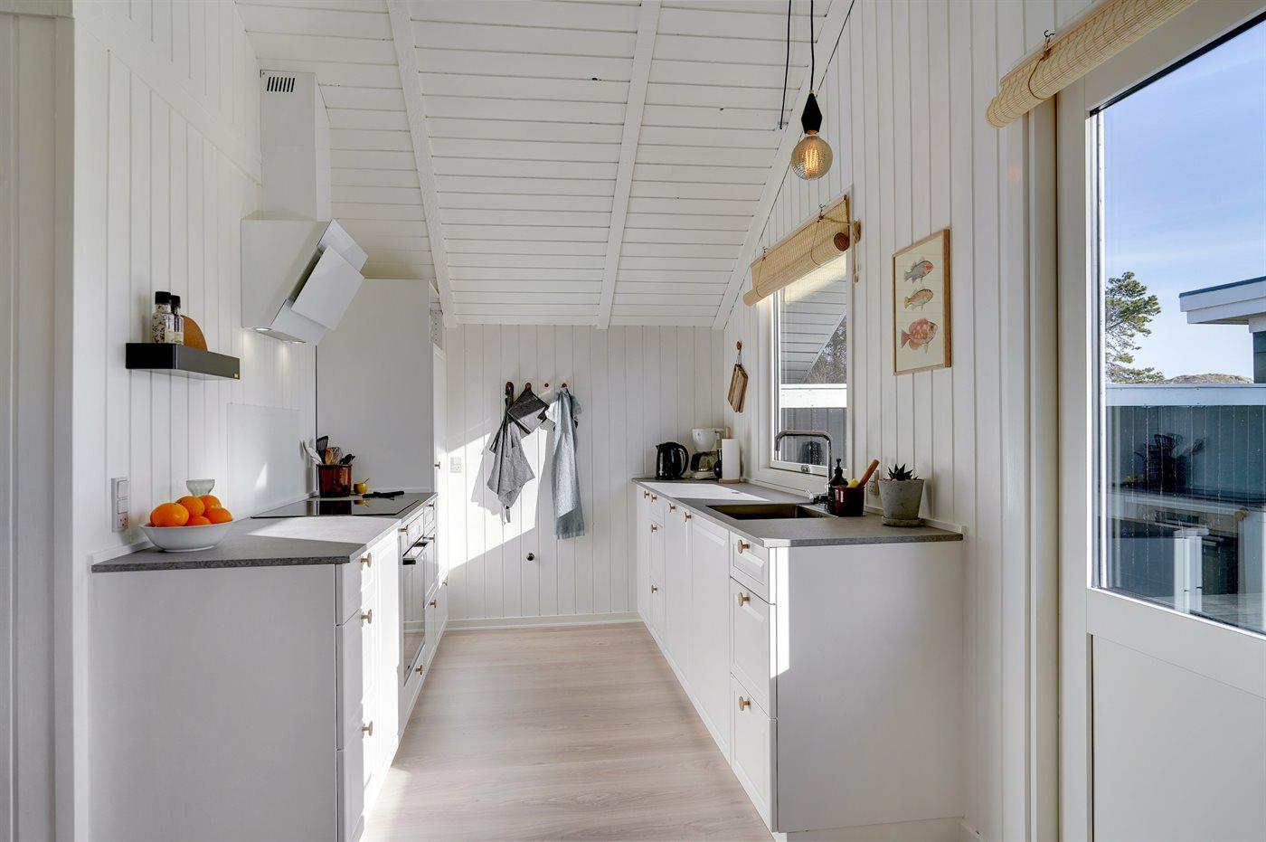 De keuken is uitgerust met koelkast Er is 4 inductiekookplaten, heteluchtoven, magnetron en vaatwasser.