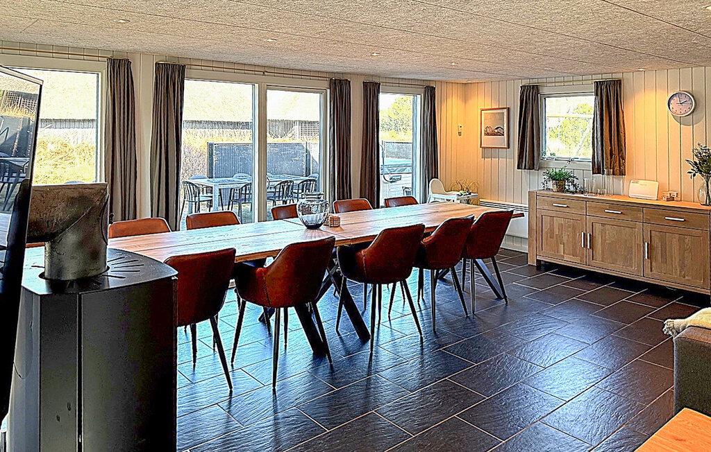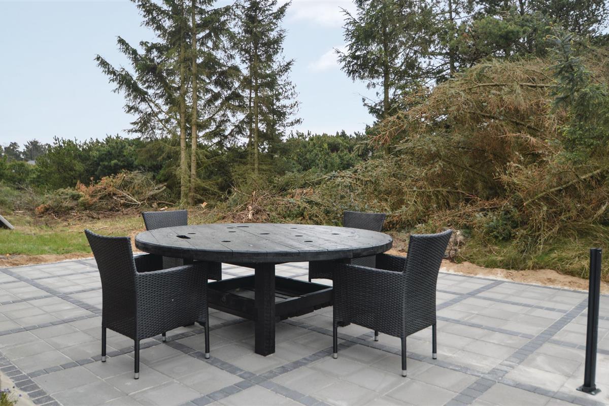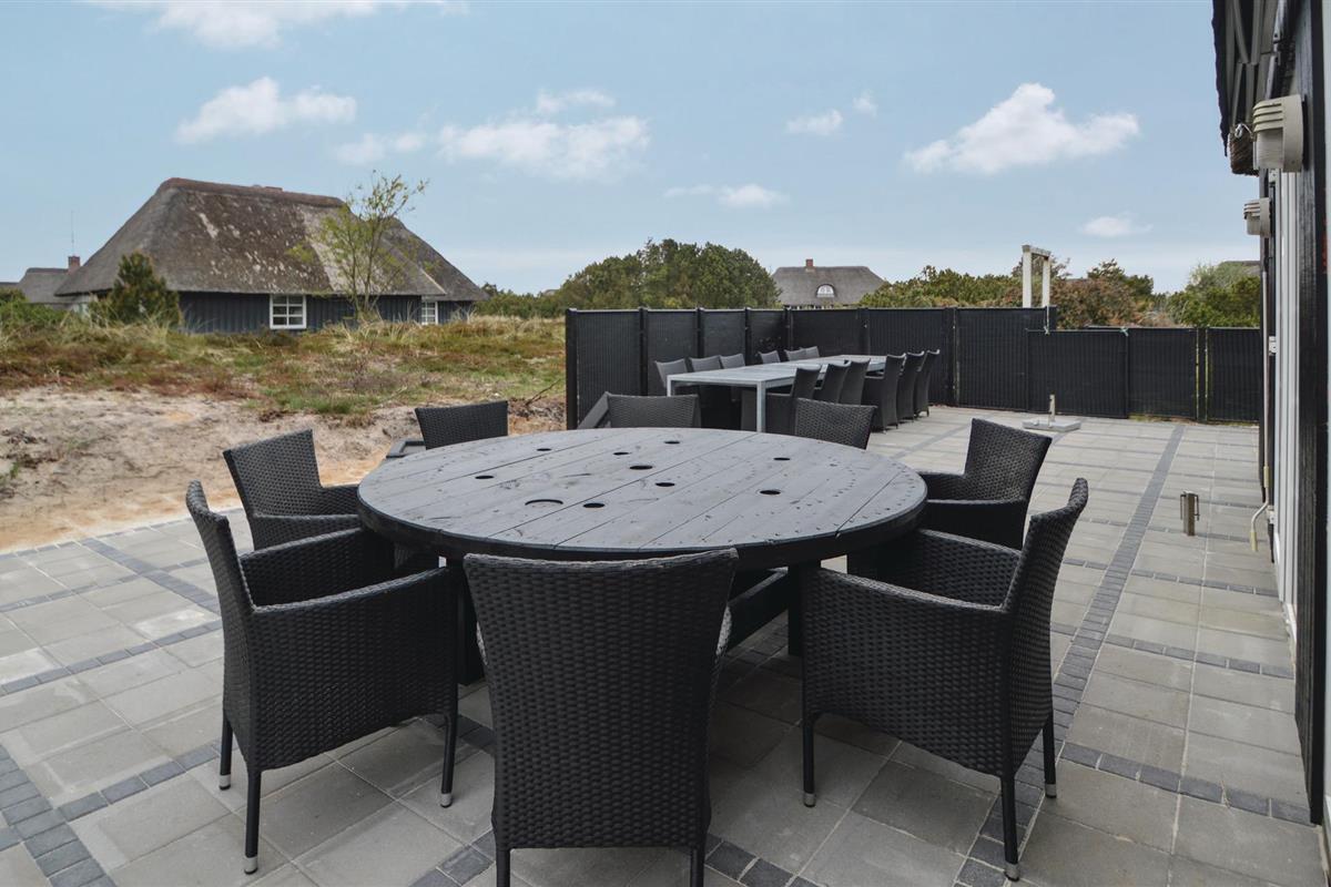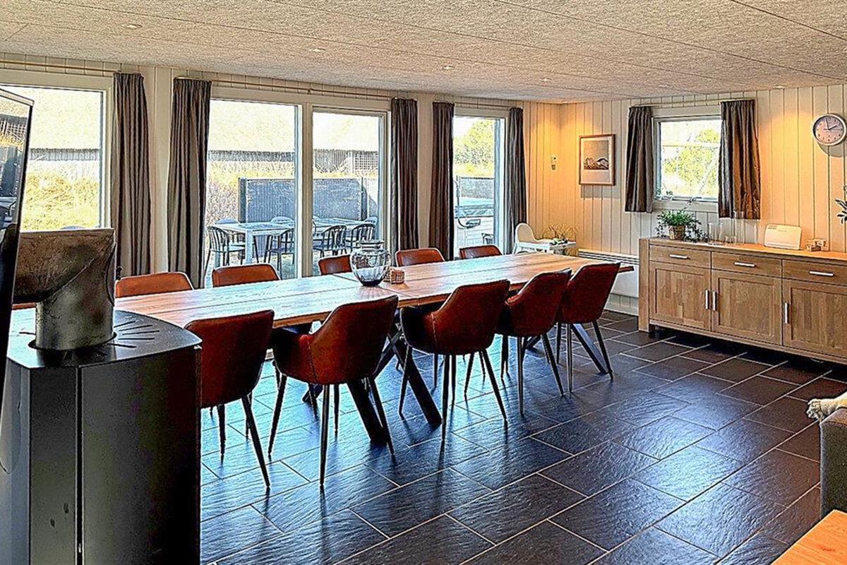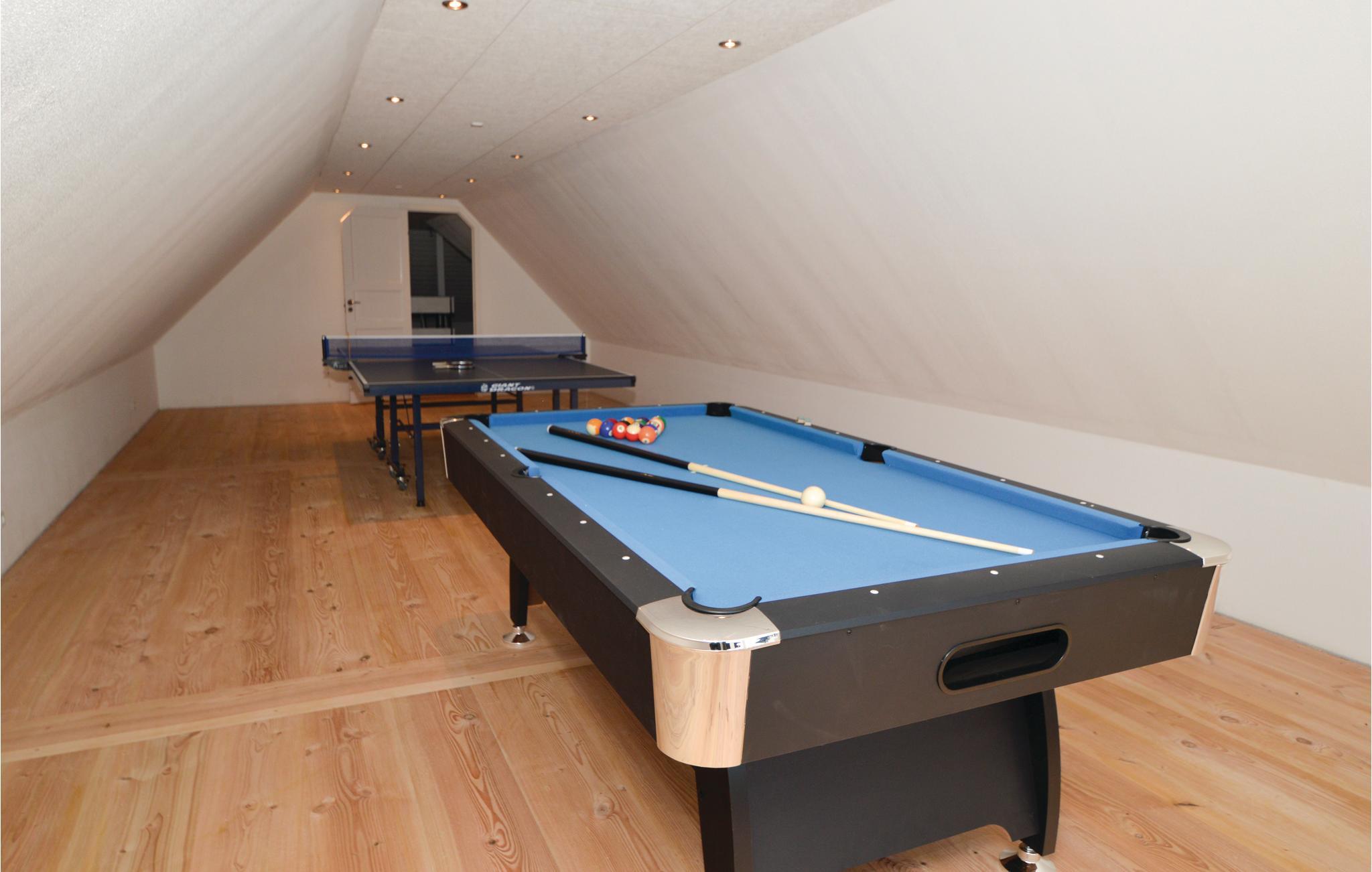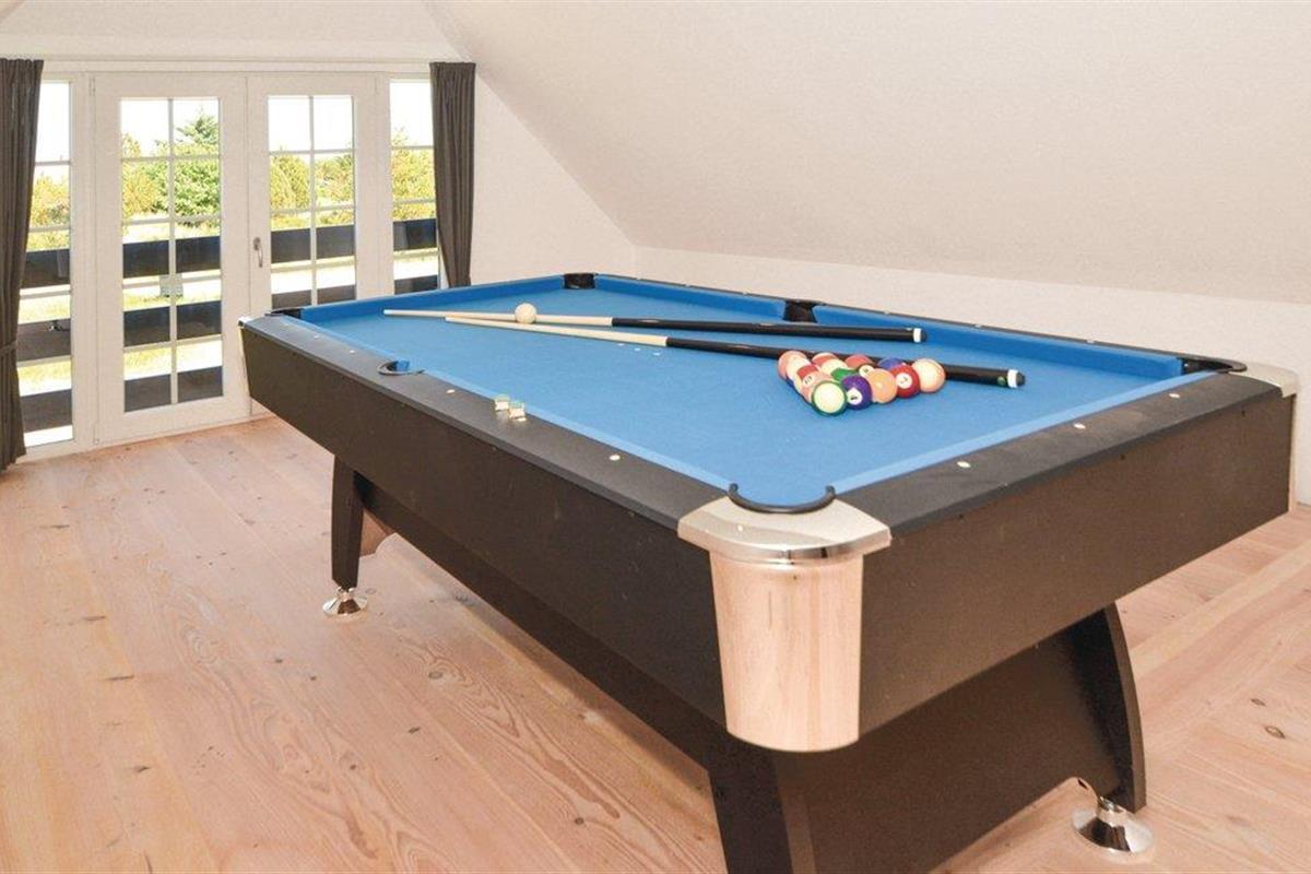Mooi groot en ruim vakantiehuis met veel mogelijkheden voor activiteiten. Bij het zwembad is aan elke leeftijd gedacht en zelfs de allerkleinsten kunnen spetteren in hun afgesloten deel van het zwembad, terwijl de ouderen kunnen zwemmen of het zich gemakkelijk maken in de jacuzzi. Op de eerste verdieping is er een grote activiteitenruimte met biljart en tafeltennis. De grote, moderne keuken staat in open verbinding met de woonkamer, zodat u het koken niet hoeft te missen terwijl de anderen op de bank relaxen. Er is een glazen paneel tussen de woonkamer en het zwembad, dus zelfs water schuwe gasten kunnen genieten. Ontspan in de zon op het grote terras van het huis. Het huis ligt op een enigszins heuvelachtig duingrondstuk, dicht bij Blåvand en het aantrekkelijke strand.
