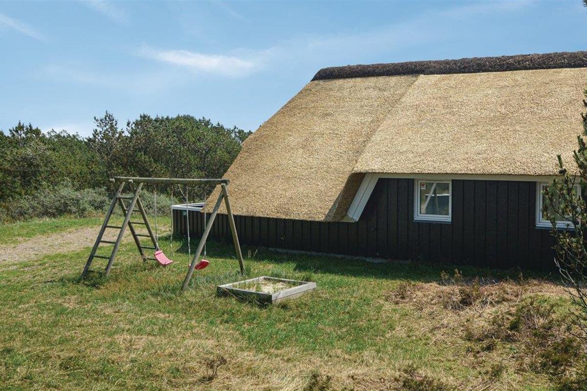 Sfeervol, rietgedekt vakantiehuis in Blåvand met sauna, bubbelbad en grote tuin, ideaal voor familie en natuur.
