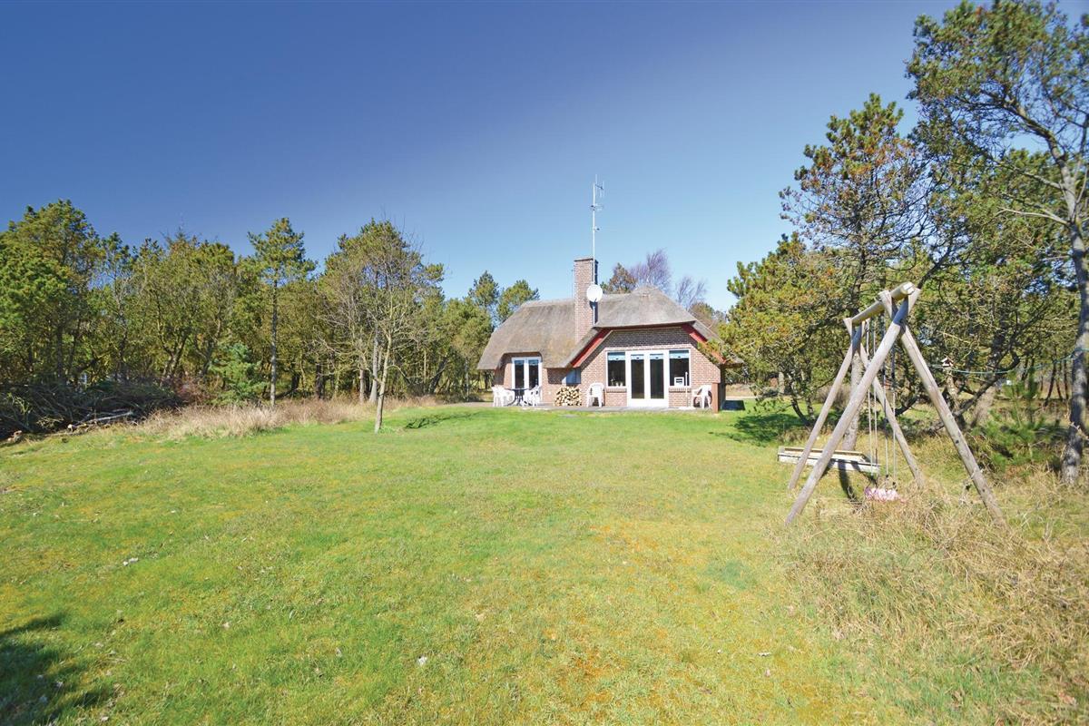 Dit huis met rieten dak ligt aan een rustige zijweg, niet ver van de duinen en de zee. Binnen geven houten muren en plafonds het huis veel charme. Via de keuken in het midden van de woon-eetkamer kunt u tijdens het koken de activiteiten van anderen volgen. Het huis heeft drie goede slaapkamers en een lichte badkamer met twee wastafels. Vanuit de woon-eetkamer heeft u toegang tot het grote en mooie terras met buitenhaard.