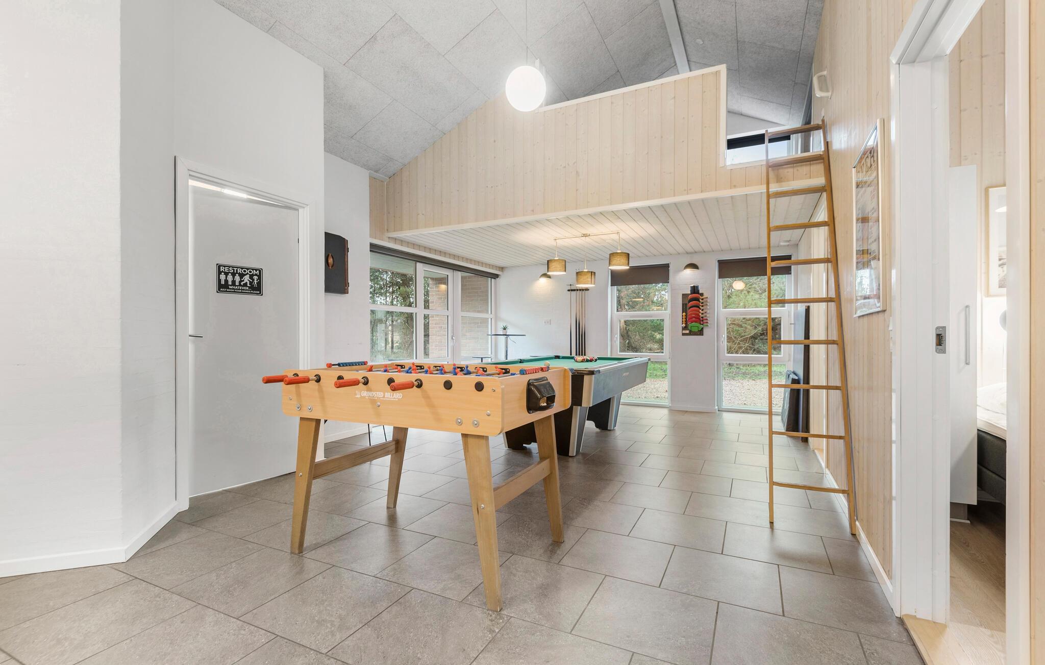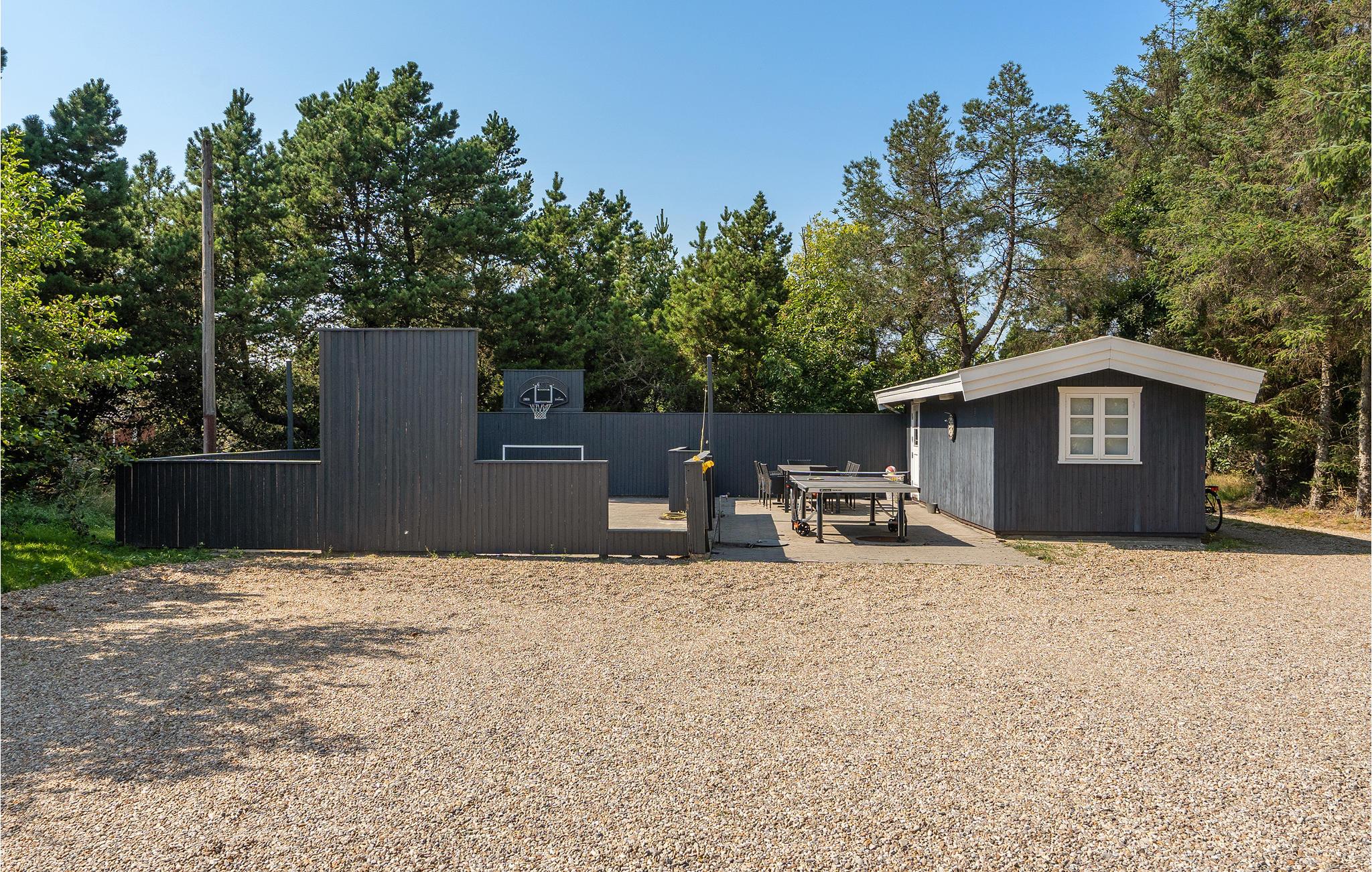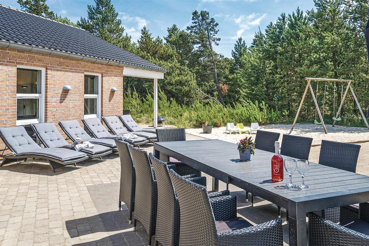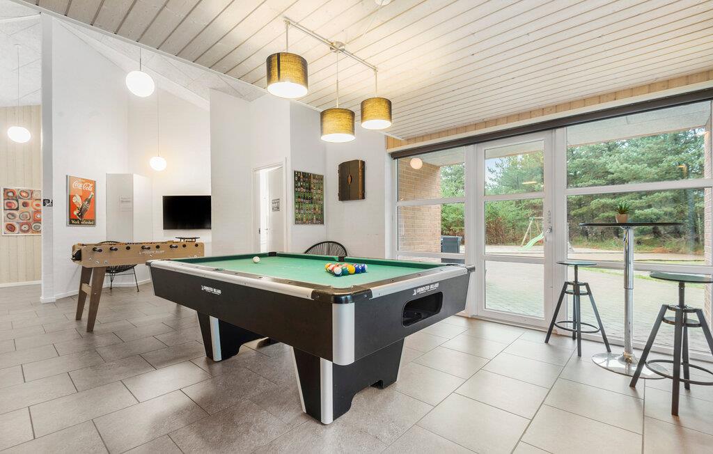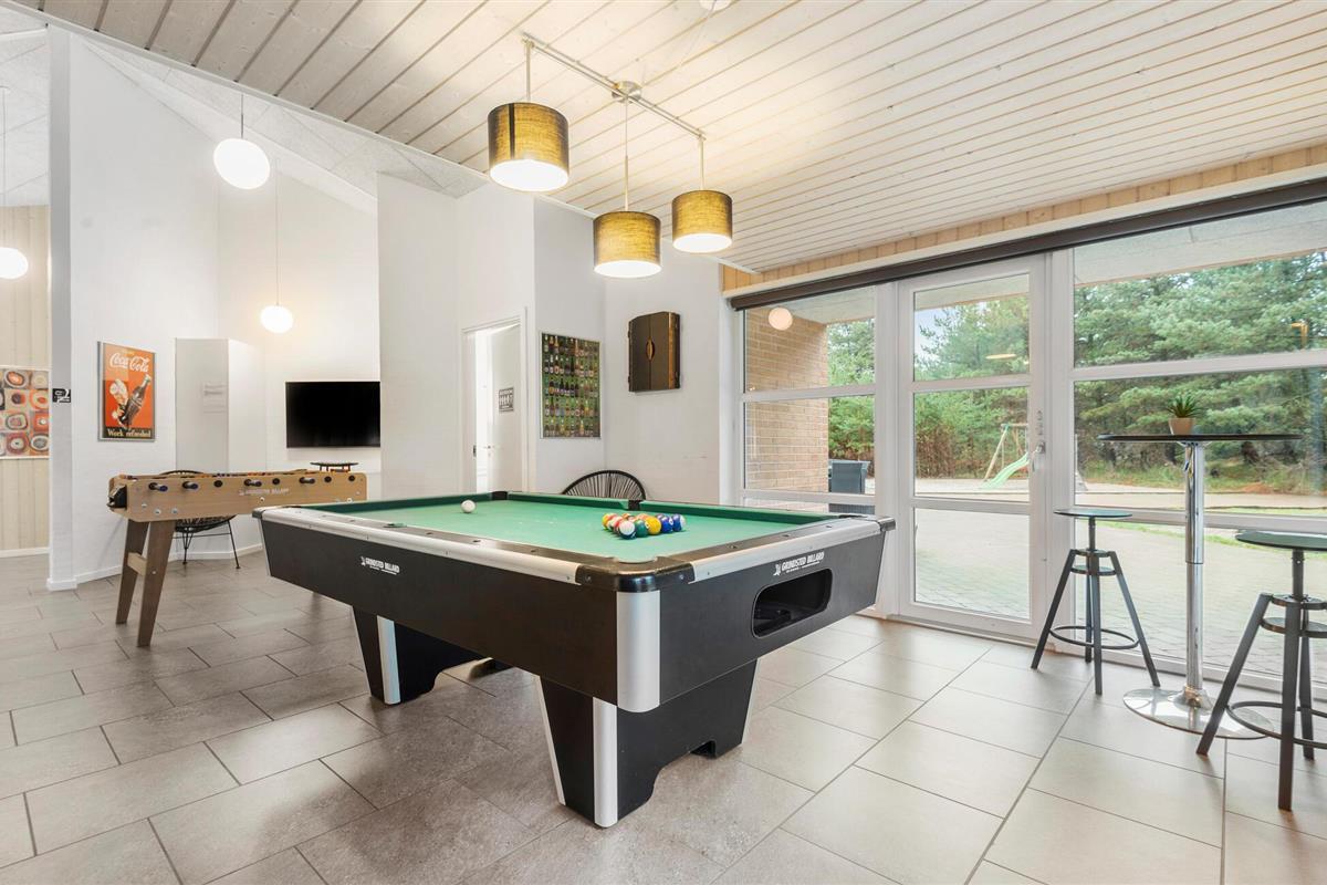 Prachtig huis met doordachte architectuur. Het wacht op u op een ongestoord natuurterrein dat plezier en ontspanning biedt voor alle leeftijden. U kunt er onder andere voetballen of basketballen. De keuken is het hart van het huis, het is een heerlijke plek om samen te komen, vanuit de keuken en het woongedeelte kijkt u in de zwembadruimte. Entertainment wordt ook verzorgd door de activiteitenruimte. In de zwembadruimte zijn er extra douches naast de whirlpool en de sauna. Rondom het huis zijn er grote terrassen om te ontspannen. Het huis is zeer goed geïsoleerd en wordt uitsluitend verwarmd met aardwarmte. Hoewel het huis groot is, hoeft u geen hogere stookkosten te verwachten. Een Boxer Max TV abonnement biedt vele Deense TV zenders.