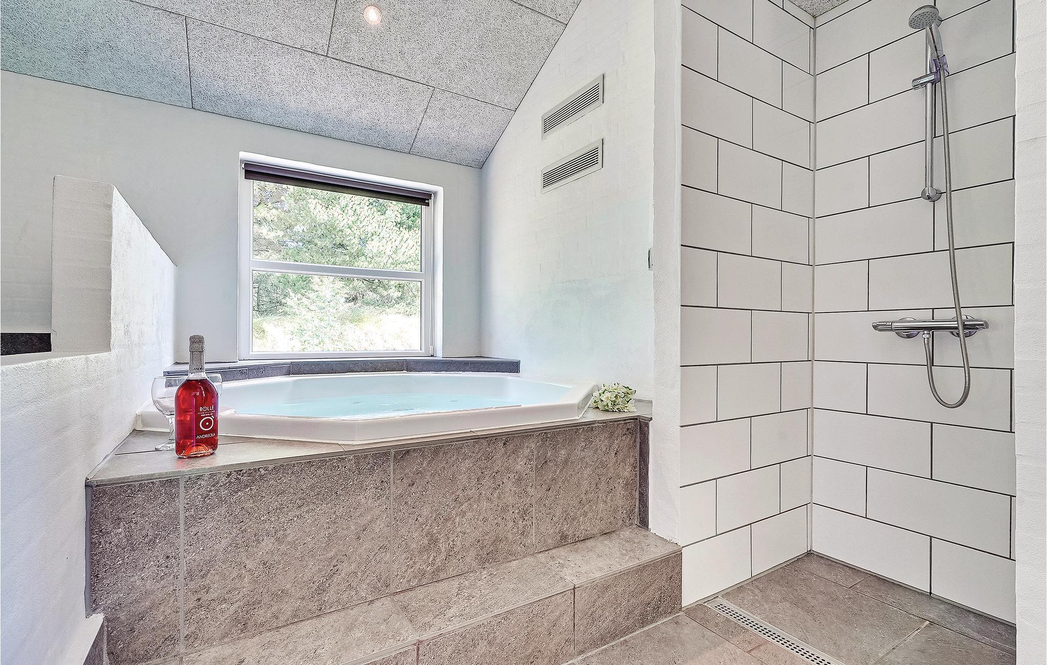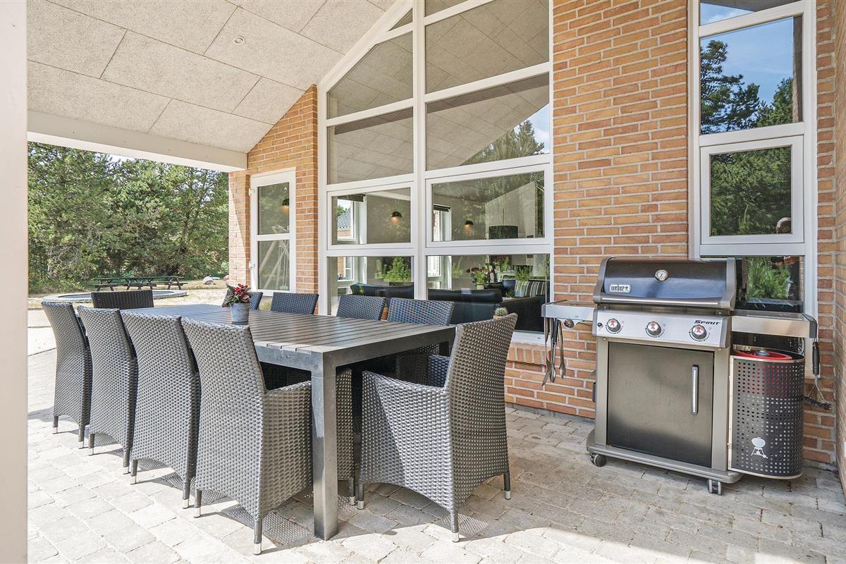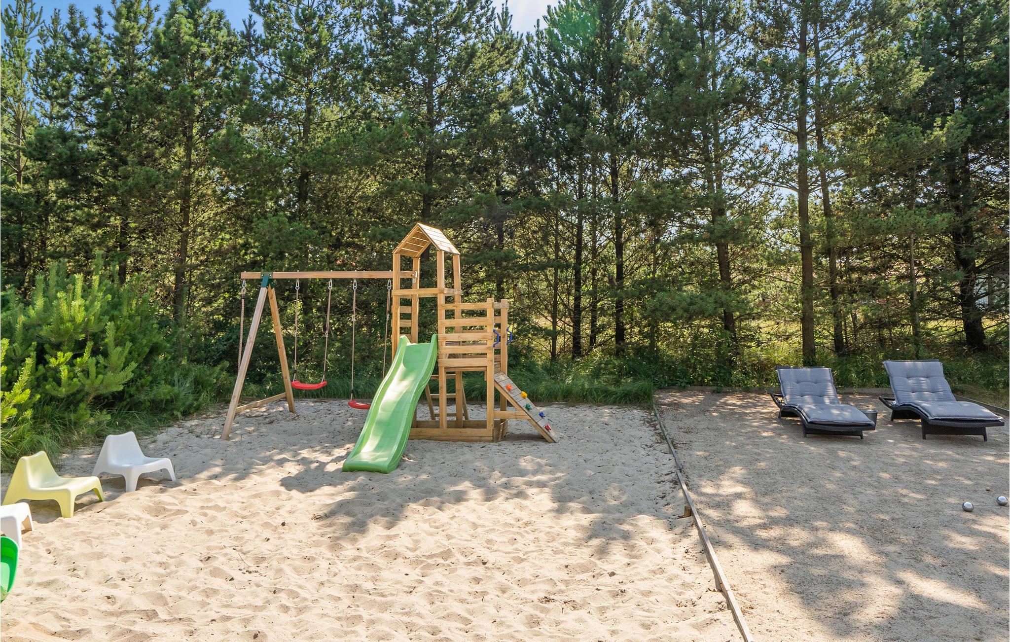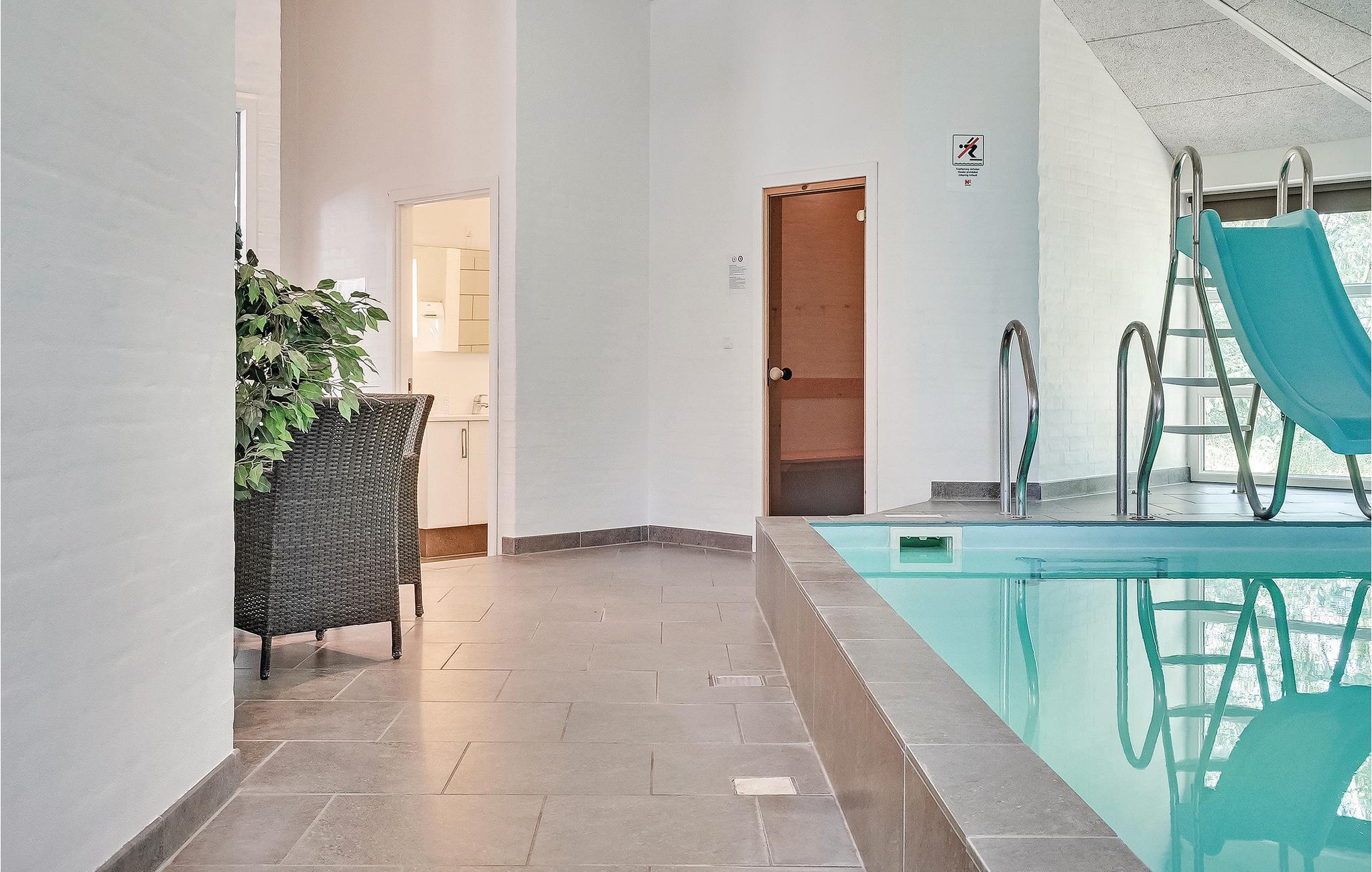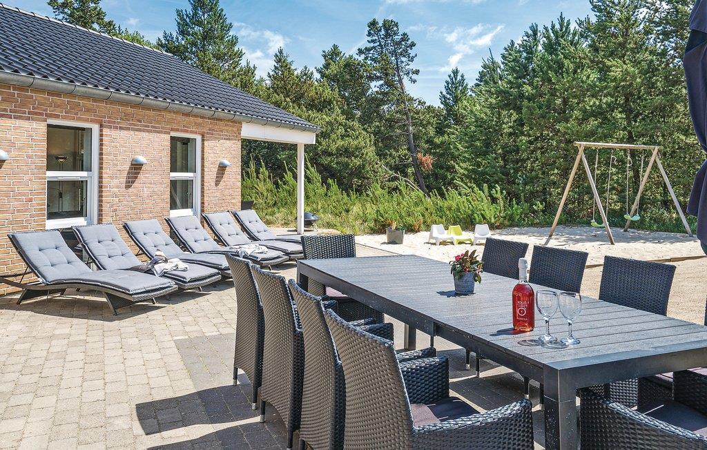 Prachtig huis met doordachte architectuur. Het wacht op u op een ongestoord natuurterrein dat plezier en ontspanning biedt voor alle leeftijden. U kunt er onder andere voetballen of basketballen. De keuken is het hart van het huis, het is een heerlijke plek om samen te komen, vanuit de keuken en het woongedeelte kijkt u in de zwembadruimte. Entertainment wordt ook verzorgd door de activiteitenruimte. In de zwembadruimte zijn er extra douches naast de whirlpool en de sauna. Rondom het huis zijn er grote terrassen om te ontspannen. Het huis is zeer goed geïsoleerd en wordt uitsluitend verwarmd met aardwarmte. Hoewel het huis groot is, hoeft u geen hogere stookkosten te verwachten. Een Boxer Max TV abonnement biedt vele Deense TV zenders.
