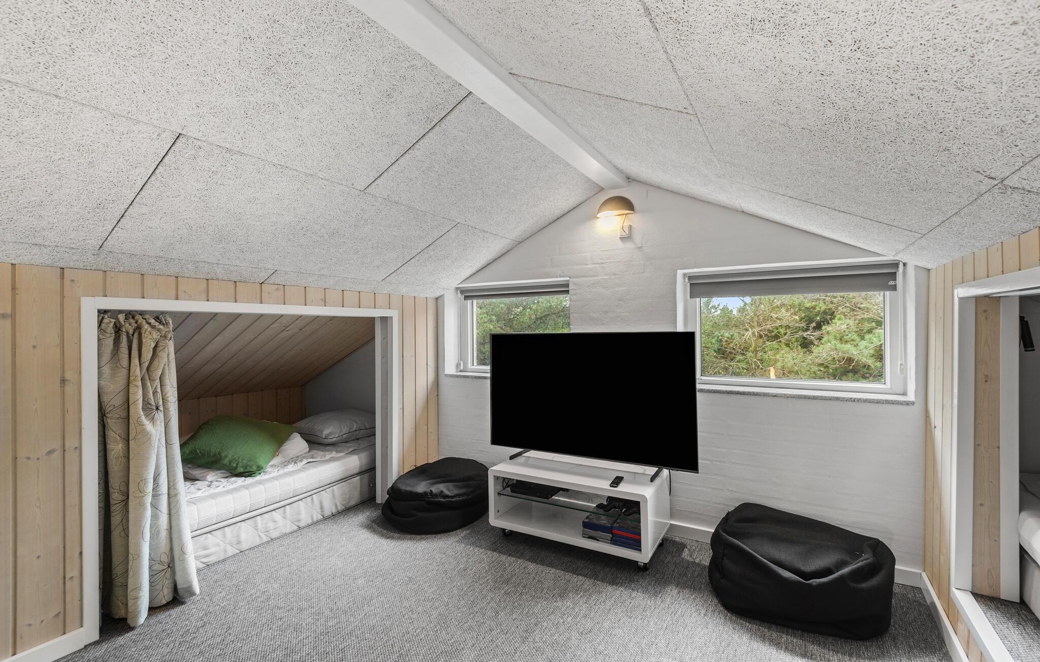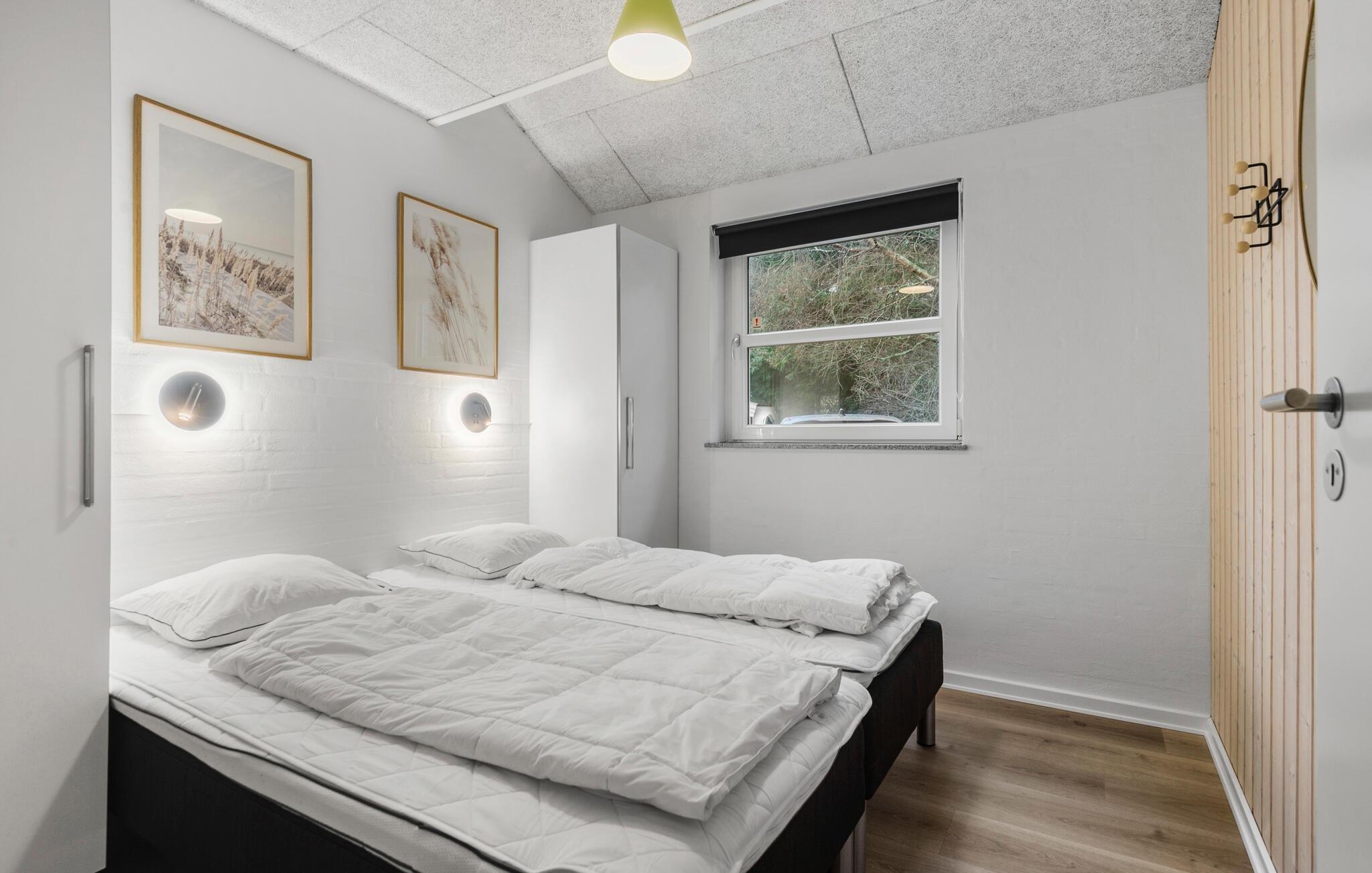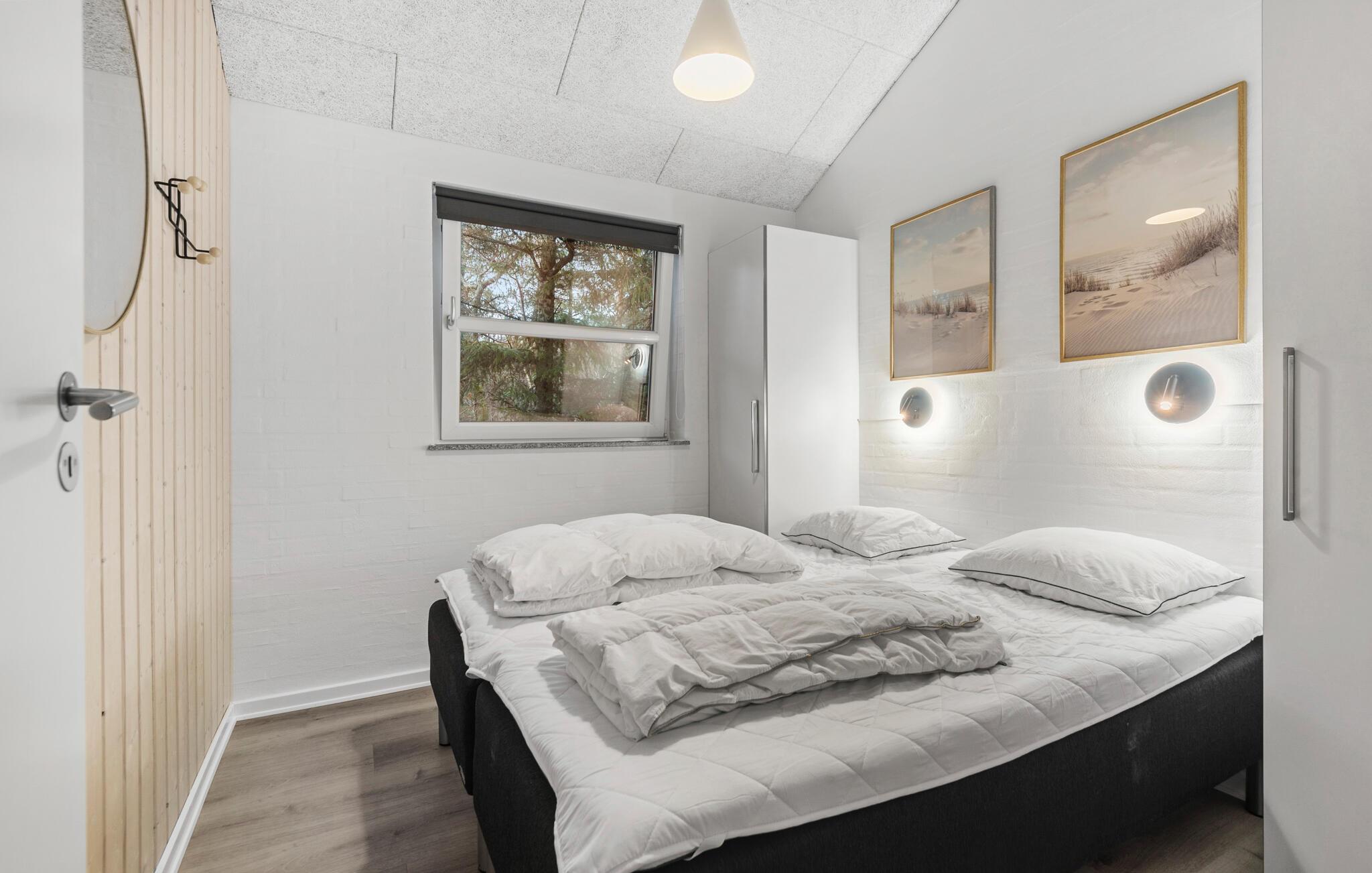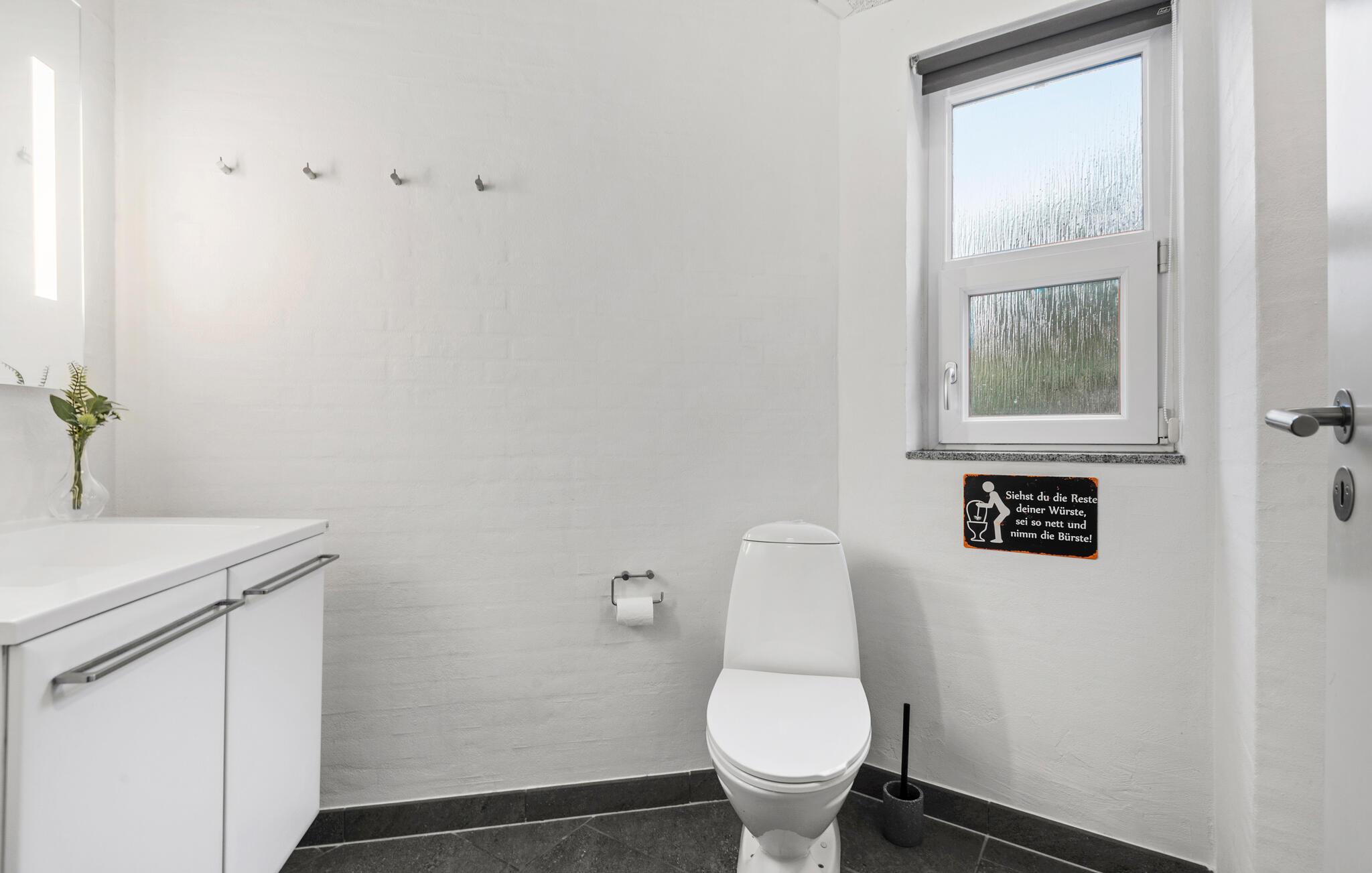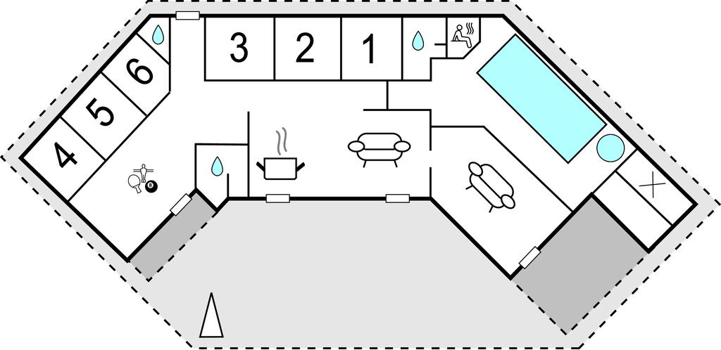 Prachtig huis met doordachte architectuur. Het wacht op u op een ongestoord natuurterrein dat plezier en ontspanning biedt voor alle leeftijden. U kunt er onder andere voetballen of basketballen. De keuken is het hart van het huis, het is een heerlijke plek om samen te komen, vanuit de keuken en het woongedeelte kijkt u in de zwembadruimte. Entertainment wordt ook verzorgd door de activiteitenruimte. In de zwembadruimte zijn er extra douches naast de whirlpool en de sauna. Rondom het huis zijn er grote terrassen om te ontspannen. Het huis is zeer goed geïsoleerd en wordt uitsluitend verwarmd met aardwarmte. Hoewel het huis groot is, hoeft u geen hogere stookkosten te verwachten. Een Boxer Max TV abonnement biedt vele Deense TV zenders.