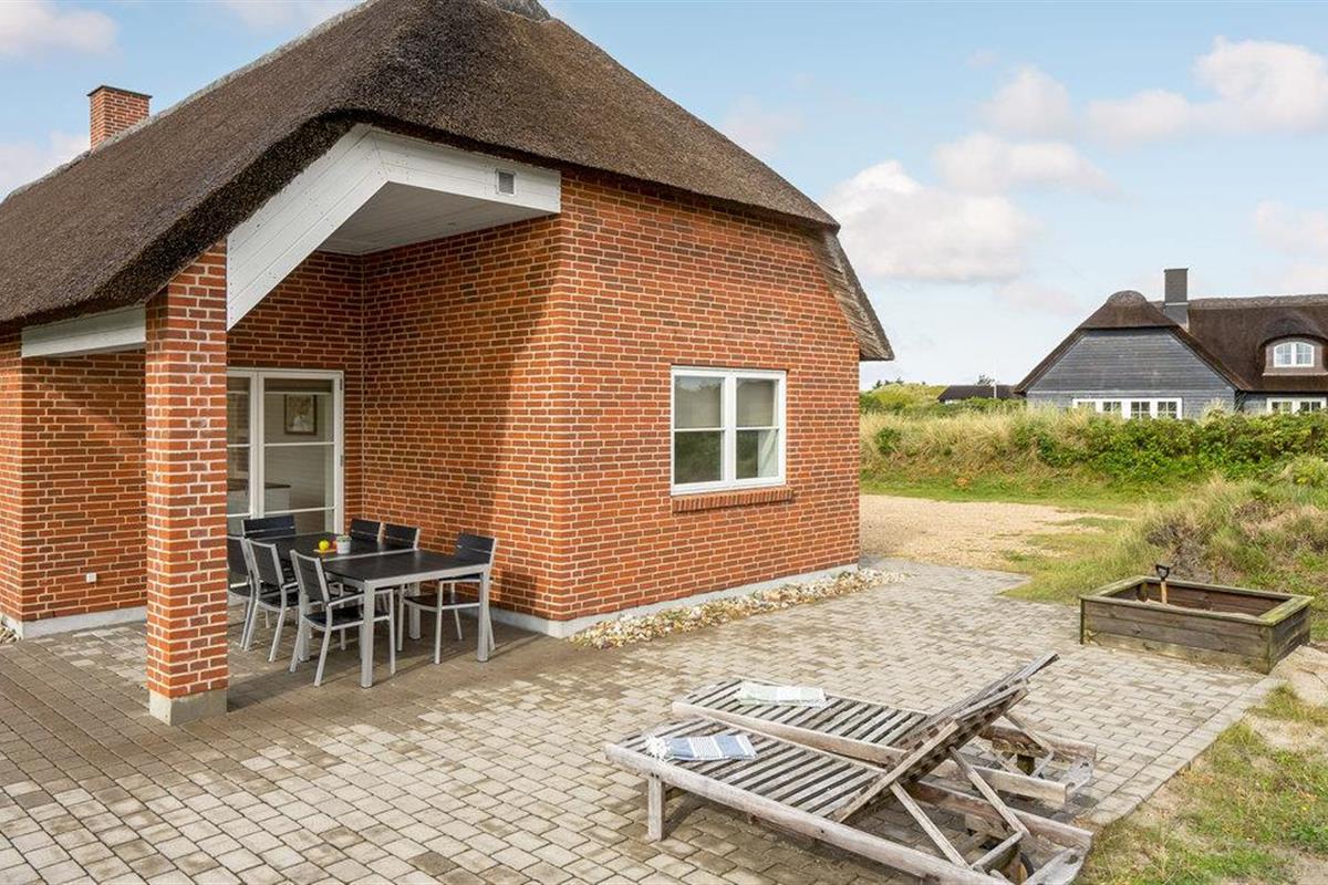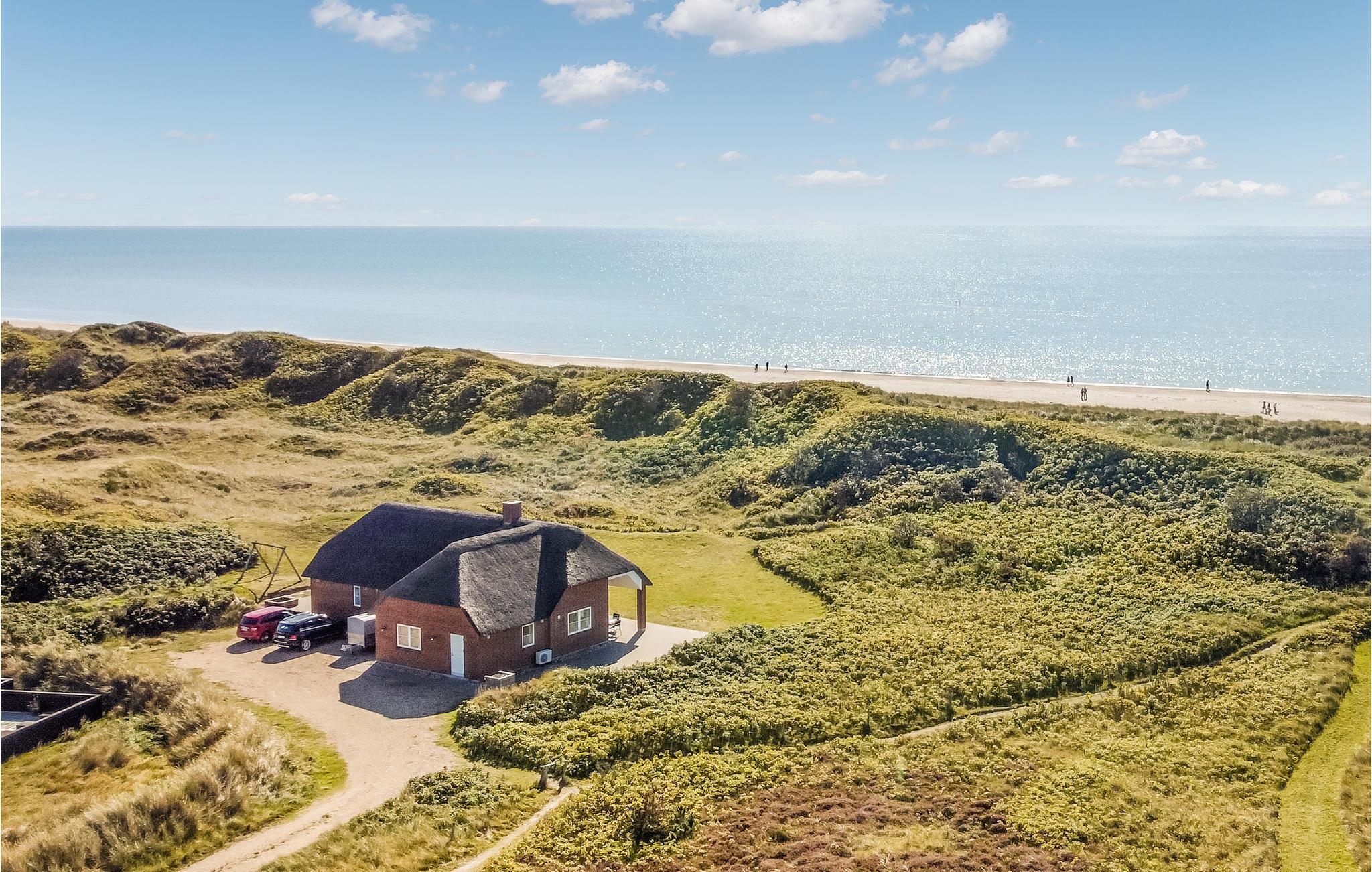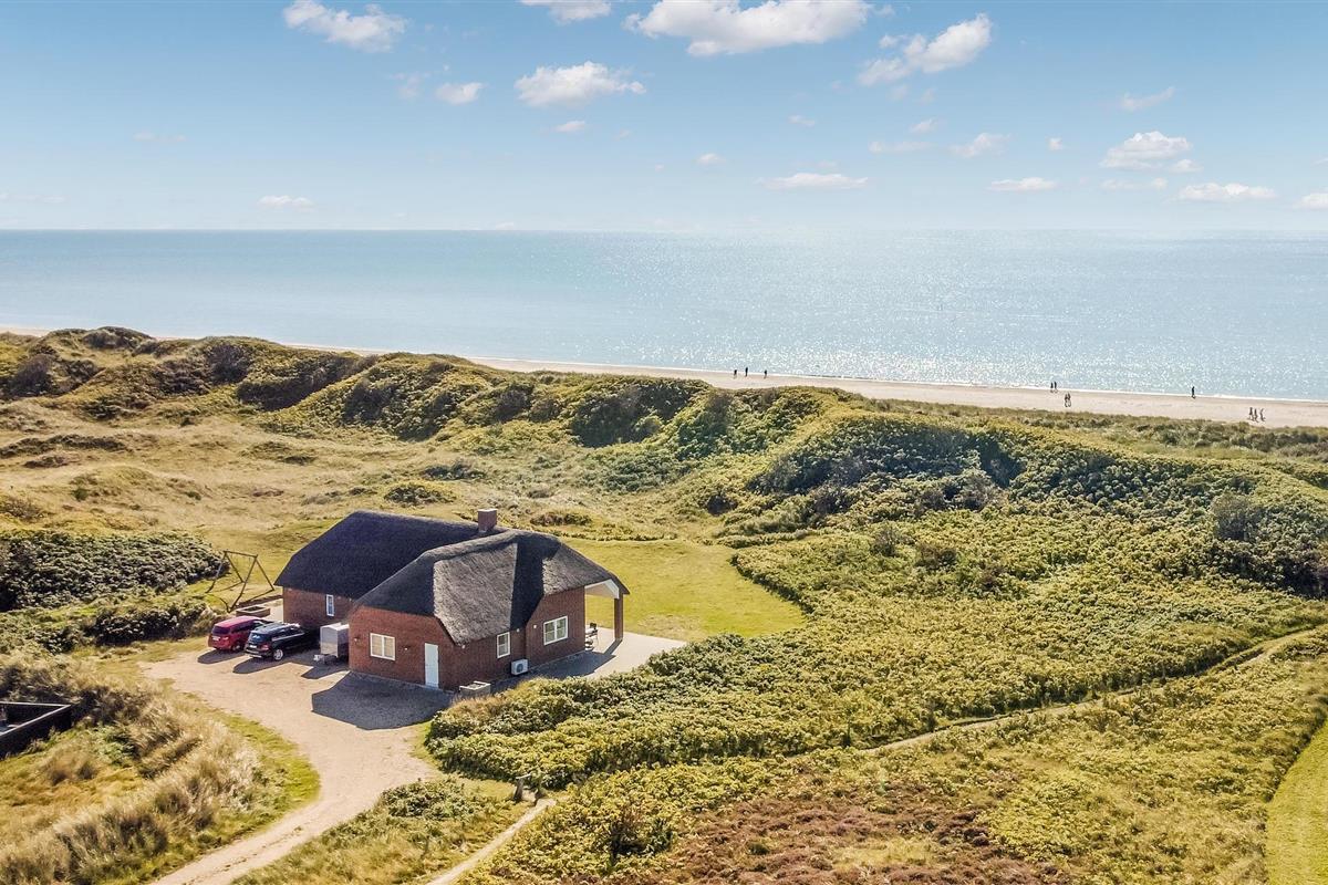 Fantastisch luxe vakantiehuis waarbij door en door aan kwaliteit en design is gedacht. Afgewerkt in het seizoen 2018. Het is een stenen huis met een rieten dak en ligt op een van de mooiste percelen van Blåvand, net achter de duinen en met de Noordzee als buur. Het lichte huis biedt een fantastisch uitzicht op de duinen direct buiten het raam vanuit de woonkamer met open keuken. De open haard zorgt voor de juiste vakantiesfeer met drie glazen zijden. Het huis heeft drie badkamers, waarvan één met directe toegang tot de ene slaapkamer. Buiten heeft u verschillende mooie terrassen tot uw beschikking, zowel open als overdekt.