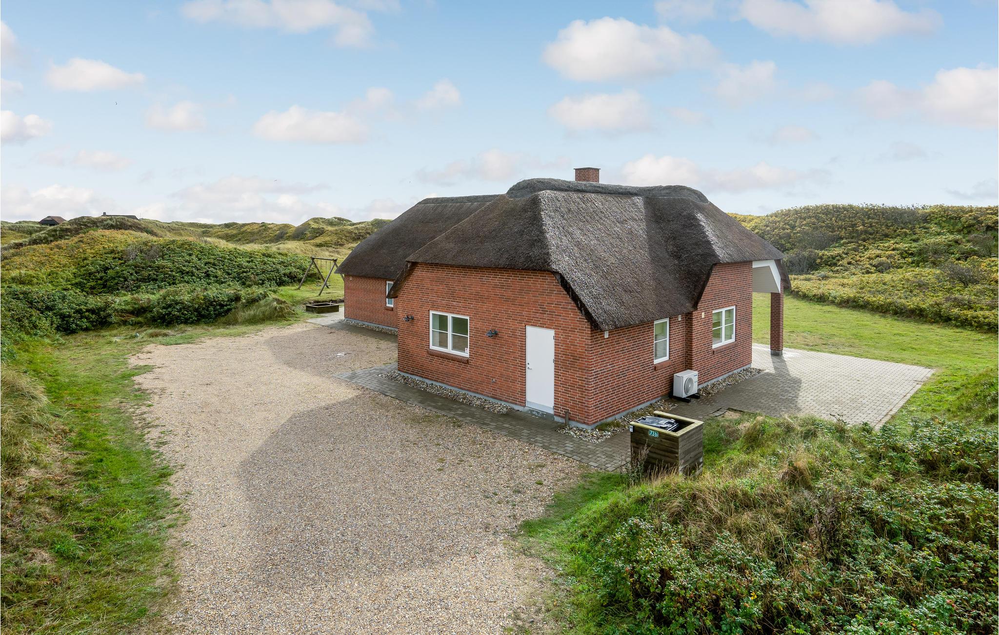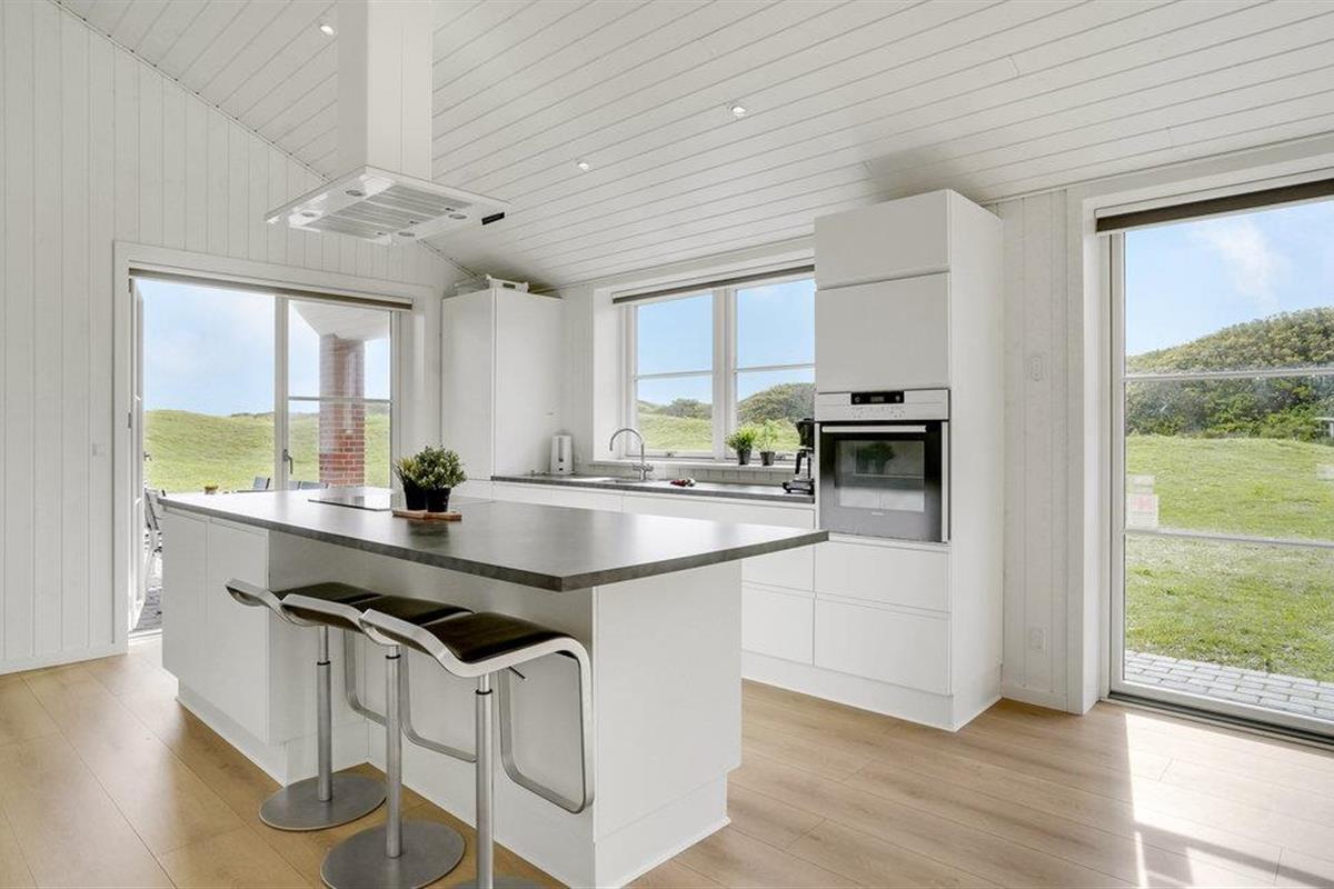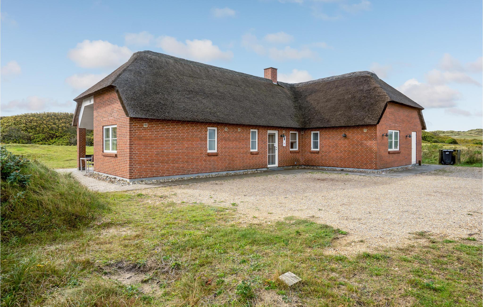 Fantastisch luxe vakantiehuis waarbij door en door aan kwaliteit en design is gedacht. Afgewerkt in het seizoen 2018. Het is een stenen huis met een rieten dak en ligt op een van de mooiste percelen van Blåvand, net achter de duinen en met de Noordzee als buur. Het lichte huis biedt een fantastisch uitzicht op de duinen direct buiten het raam vanuit de woonkamer met open keuken. De open haard zorgt voor de juiste vakantiesfeer met drie glazen zijden. Het huis heeft drie badkamers, waarvan één met directe toegang tot de ene slaapkamer. Buiten heeft u verschillende mooie terrassen tot uw beschikking, zowel open als overdekt.