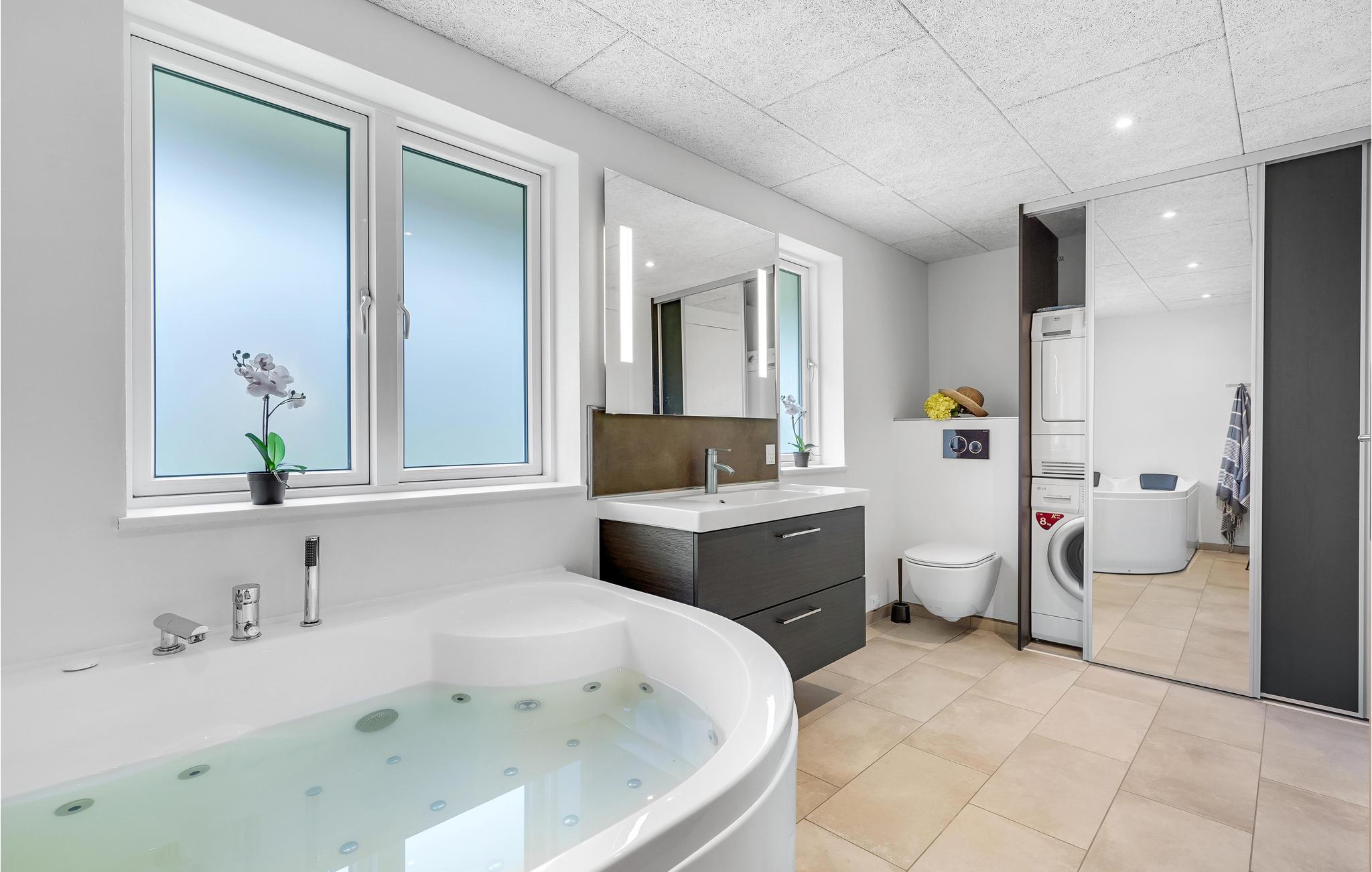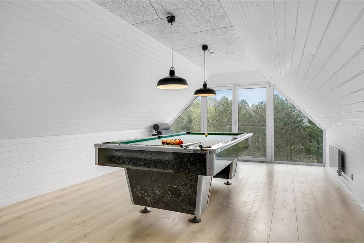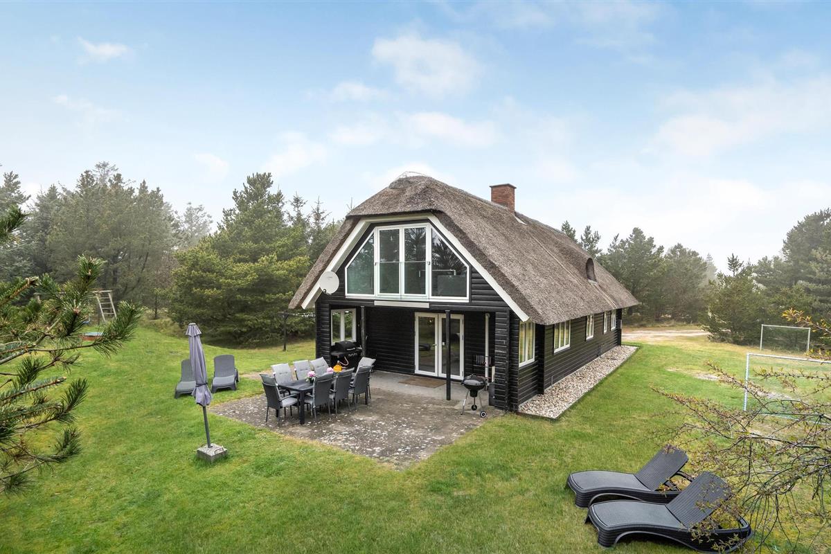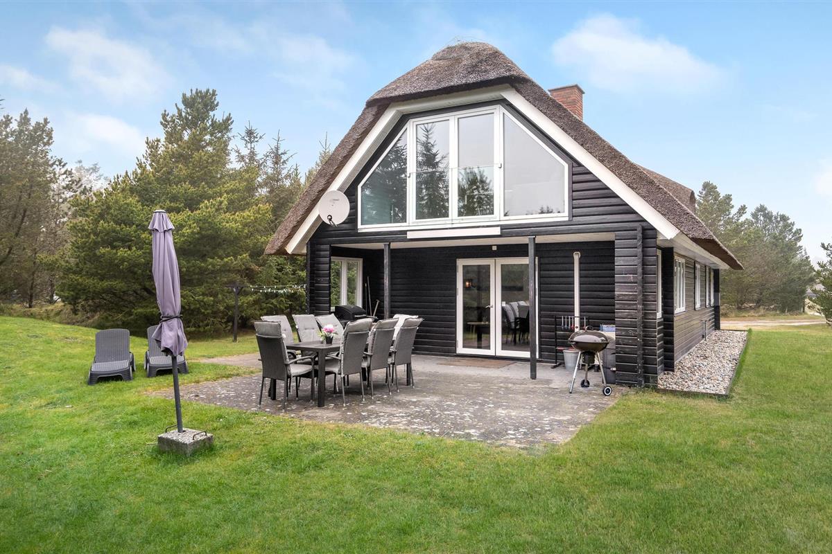 Op een groot, open natuurperceel in Blåvand ligt dit gezellige huis met rieten dak en moderne inrichting. De terrassen zijn overdekt, zodat u zelfs bij regenachtig weer buiten kunt zitten en barbecueën. Er is een whirlpool en sauna in het huis, dus het is een goede uitvalsbasis voor een ontspannende vakantie. Op de 1e verdieping is er een activiteitenruimte waar u vele gezellige uurtjes kunt doorbrengen. Het huis biedt 3 slaapkamers en een alkoof met 2 slaapplaatsen op de 1e verdieping, evenals een gastentoilet.