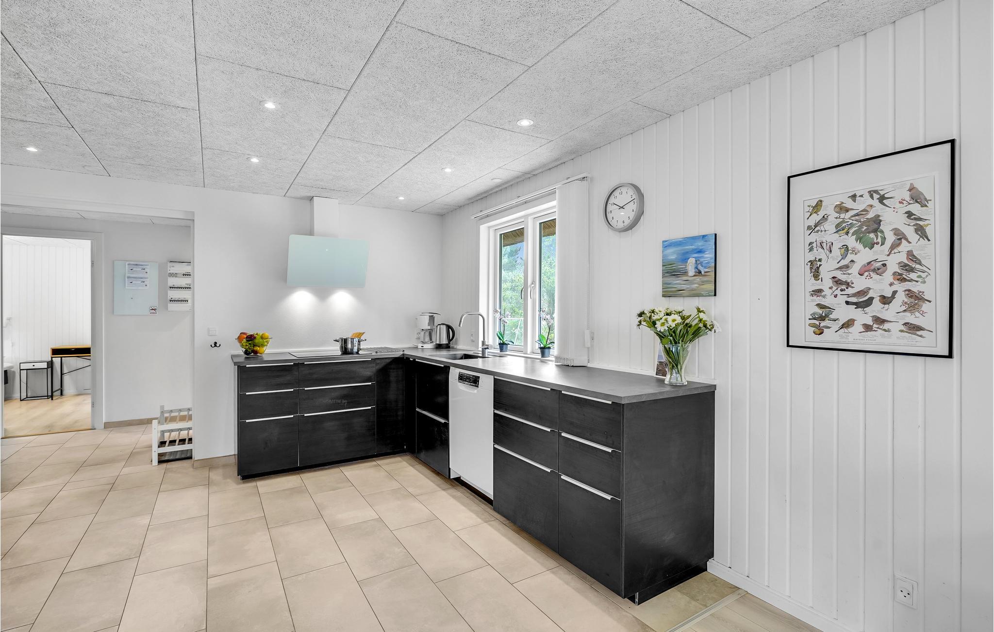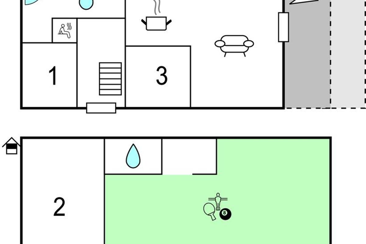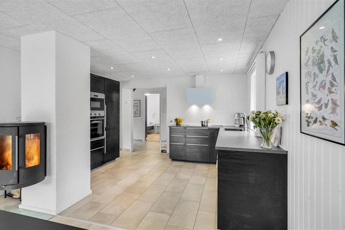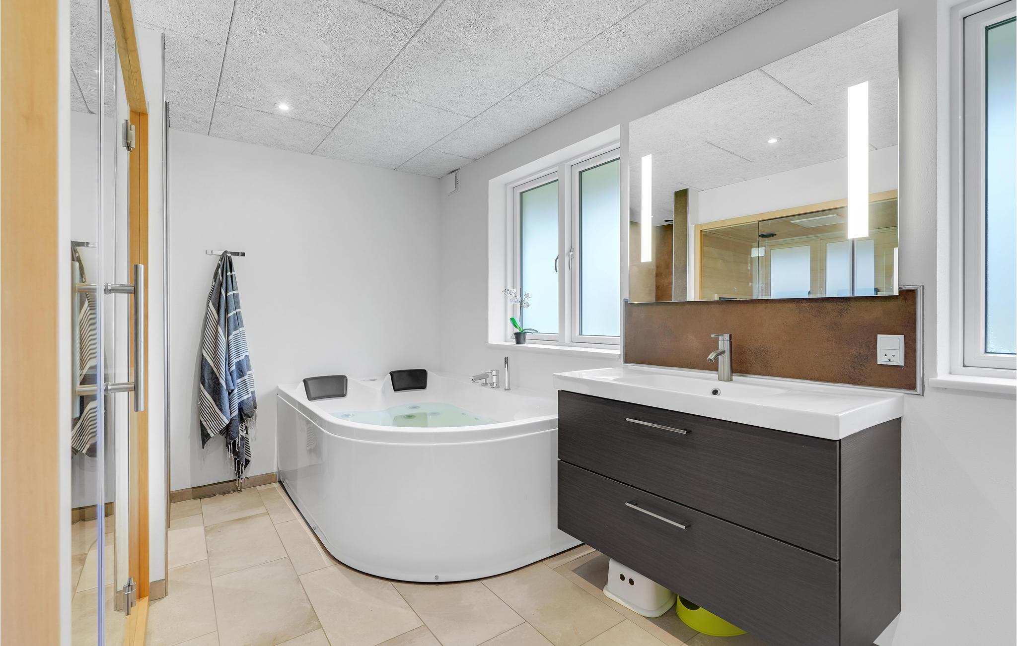 Op een groot, open natuurperceel in Blåvand ligt dit gezellige huis met rieten dak en moderne inrichting. De terrassen zijn overdekt, zodat u zelfs bij regenachtig weer buiten kunt zitten en barbecueën. Er is een whirlpool en sauna in het huis, dus het is een goede uitvalsbasis voor een ontspannende vakantie. Op de 1e verdieping is er een activiteitenruimte waar u vele gezellige uurtjes kunt doorbrengen. Het huis biedt 3 slaapkamers en een alkoof met 2 slaapplaatsen op de 1e verdieping, evenals een gastentoilet.