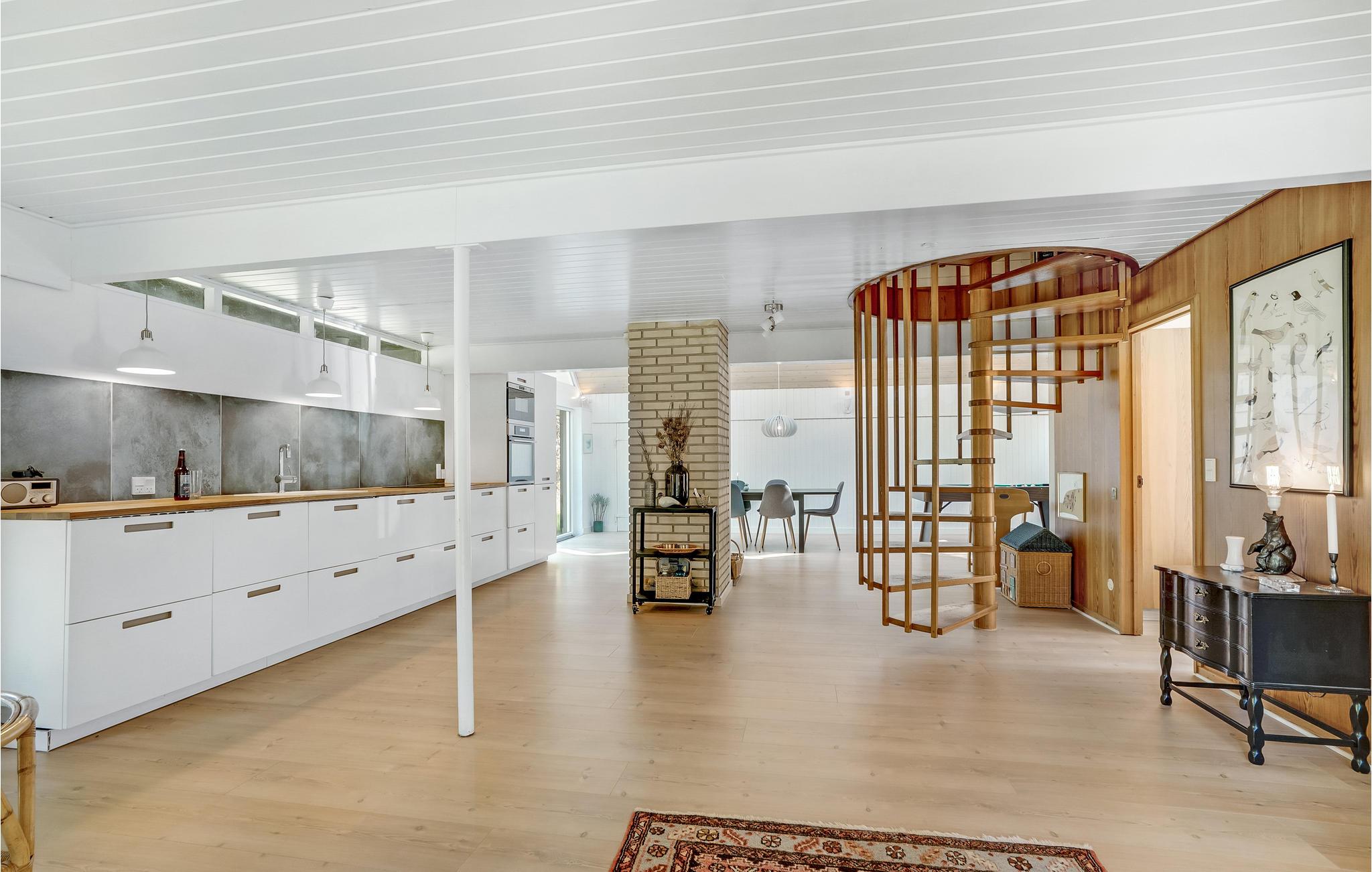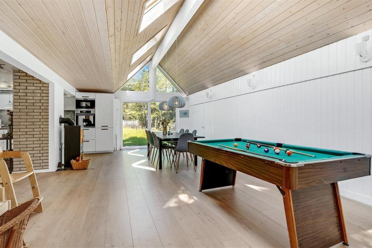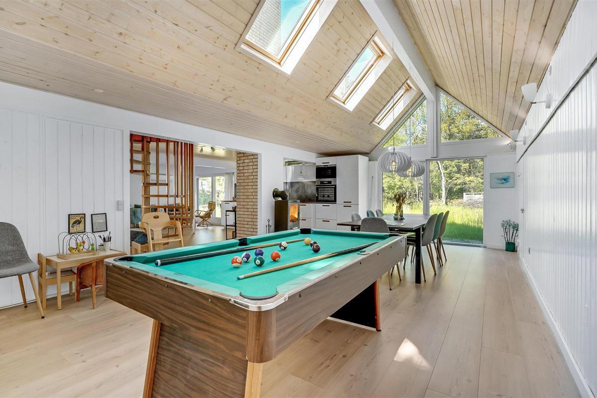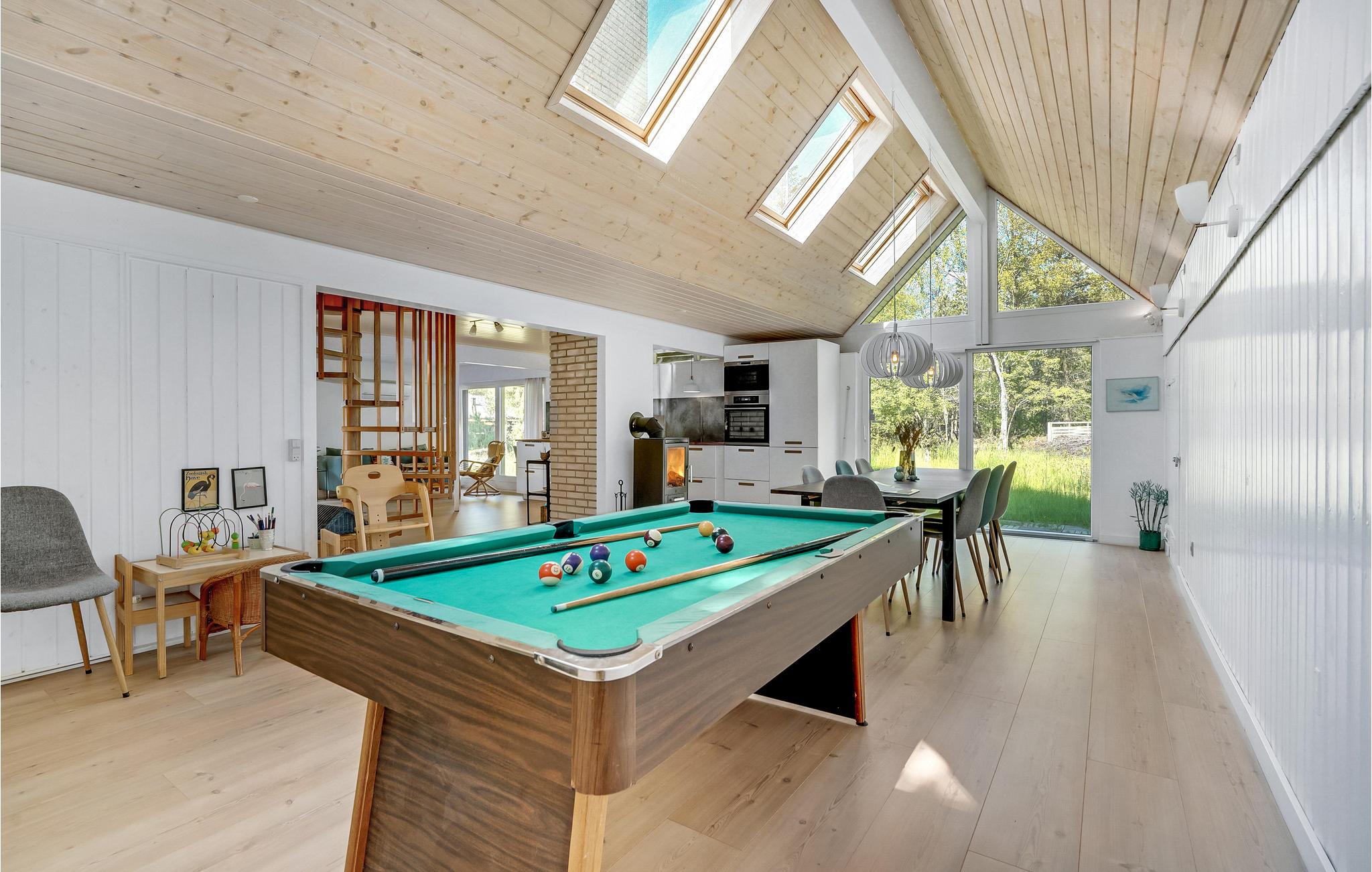 Groot en interessant ingericht vakantiehuis met woonkamers op de begane grond en de bovenverdieping. Het vakantiehuis is volledig gerenoveerd met een moderne keuken en badkamer. Vanuit de woonkamer kunt u genieten van het uitzicht op de natuur, die zich al voor de deur uitspreidt. U kunt comfortabel ontspannen of actief zijn aan de biljarttafel, op de schommel en in de zandbak. Het perceel is prachtig en daarop bent u deels veilig voor ongewenste blikken. Winkels, het strand en de zee liggen op loopafstand.