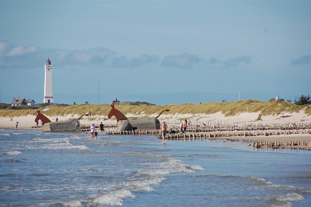 Groot, modern vakantiehuis in Blåvand met uitzicht op natuur en dichtbij strand en winkels.