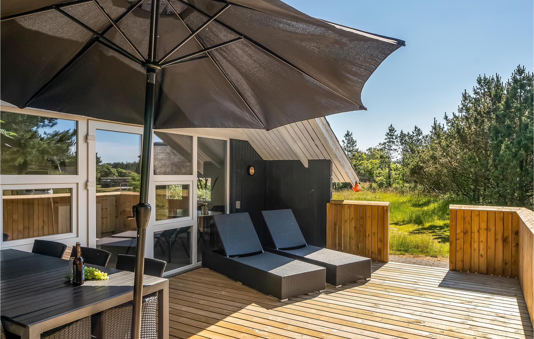 Gezellig en comfortabel vakantiehuis in Blåvand met groot gazon en zonnig terras, ideaal voor een ontspannen verblijf in de natuur.