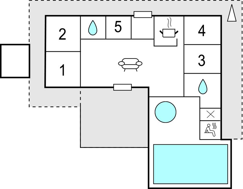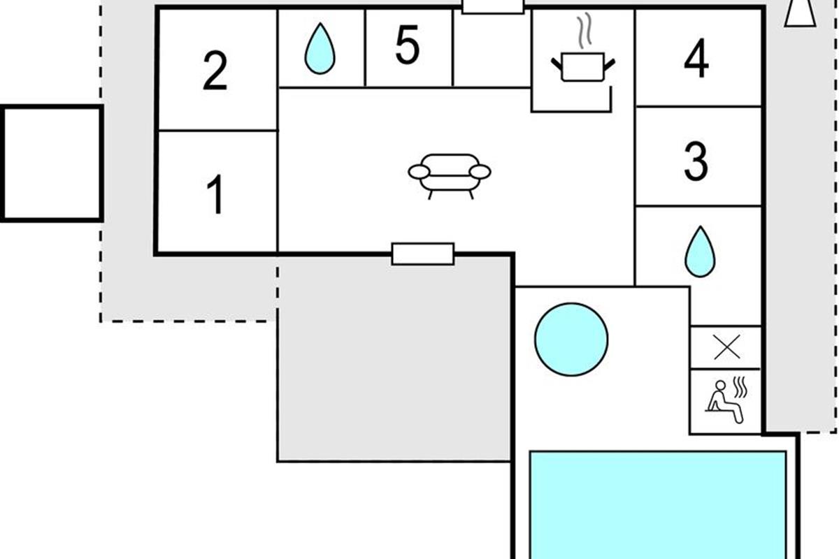 Vanuit de centrale woonkamer heeft u direct toegang tot alle vertrekken van het huis. Vanuit de eethoek heeft u zicht op de zwembadruimte, waar ook ruimte is om te zitten en te kletsen, zeker als u wilt ontspannen van de sauna en de whirlpool. De betegelde terrassen omringen het huis, waar u altijd een rustig plekje vindt. Door de ligging aan het einde van een doodlopende straat heeft u totaal geen last van verkeer.