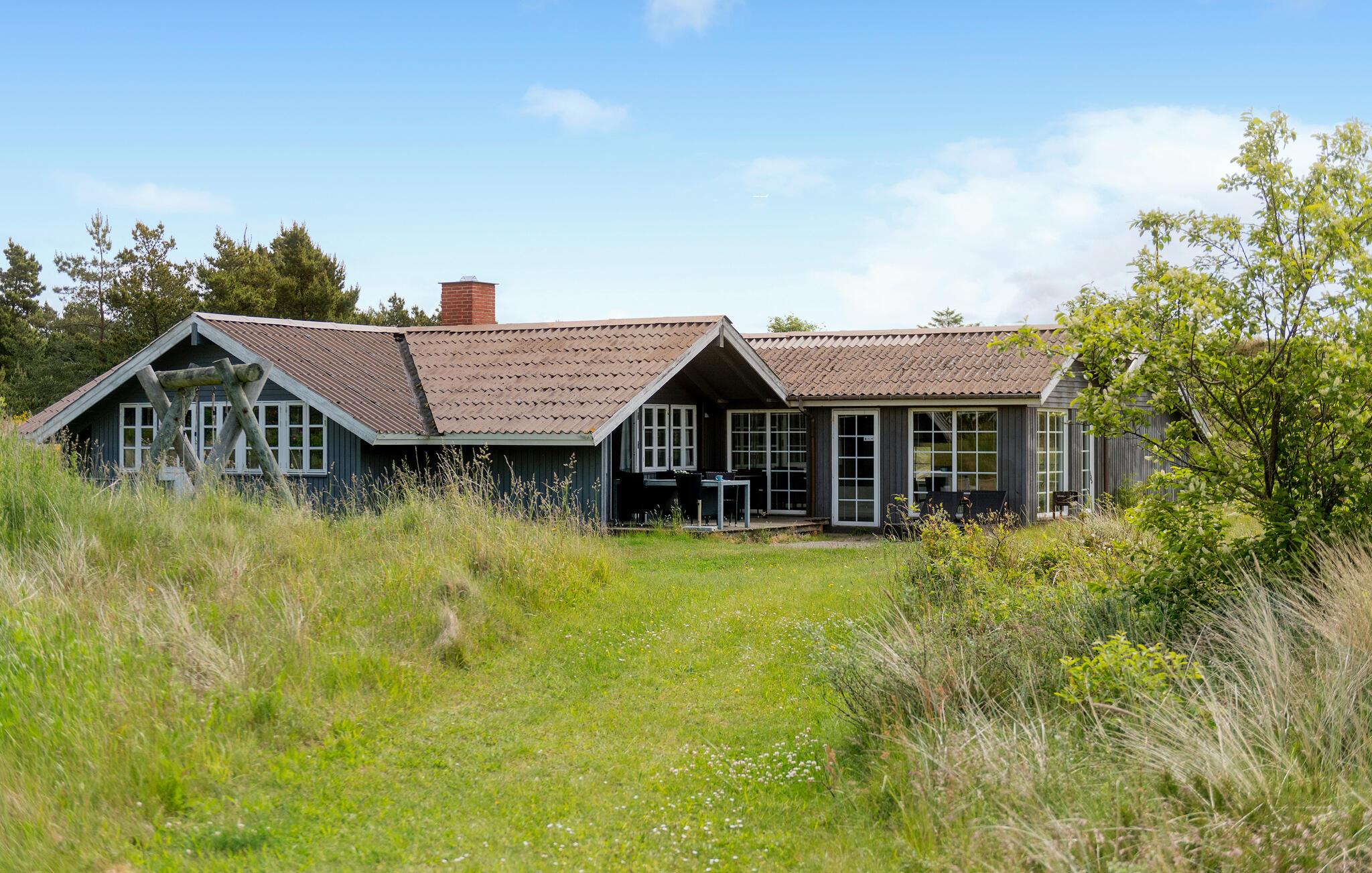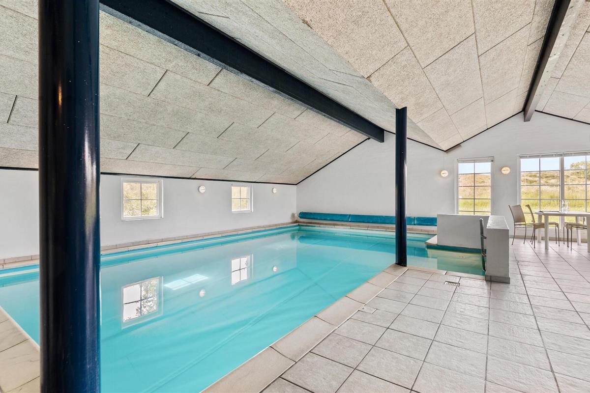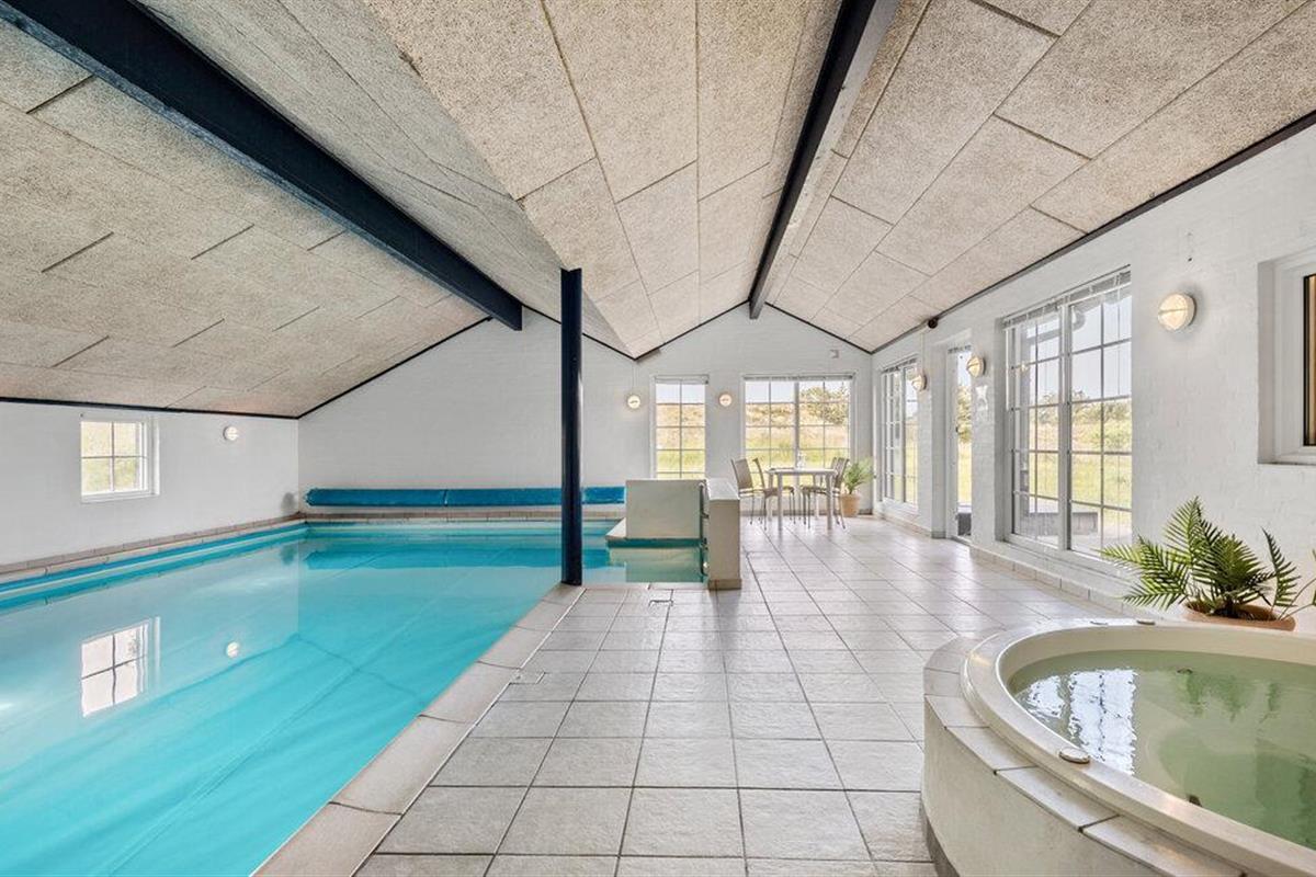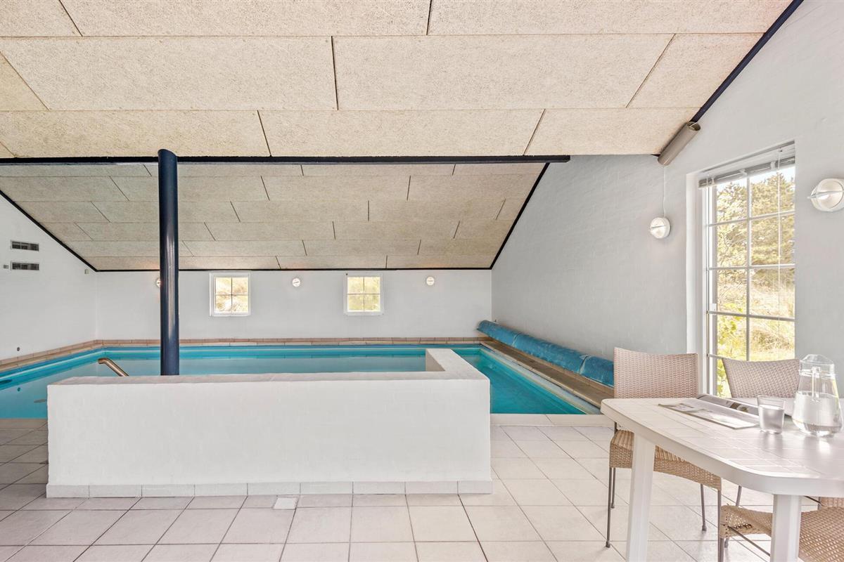Centraal gelegen in Blåvand, op een groot, deels heuvelachtig natuurgrondstuk, staat dit mooie vakantiehuis, op slechts 1300 m van de Noordzee. Het huis werd in 1992 gemoderniseerd en beschikt over alle denkbare comfort, bijv. een zwembad van 40 m² met tegenstroominstallatie. Het zwembad heeft ook lichte stenen muren, klinkervloeren en een grote whirlpool voor 5 personen, sauna en apart toilet en douche. Een grote extra badkamer met vloerverwarming maakt deel uit van het huis. De lichte keuken is gecombineerd met de woonkamer en is gezellig, licht gebeitste muren, parketvloeren en tapijten. De grote ramen laten u uitkijken op het terrein, waar ook het gedeeltelijk open terras op u wacht. Hier bent u midden in de natuur en toch niet ver van de stad.
