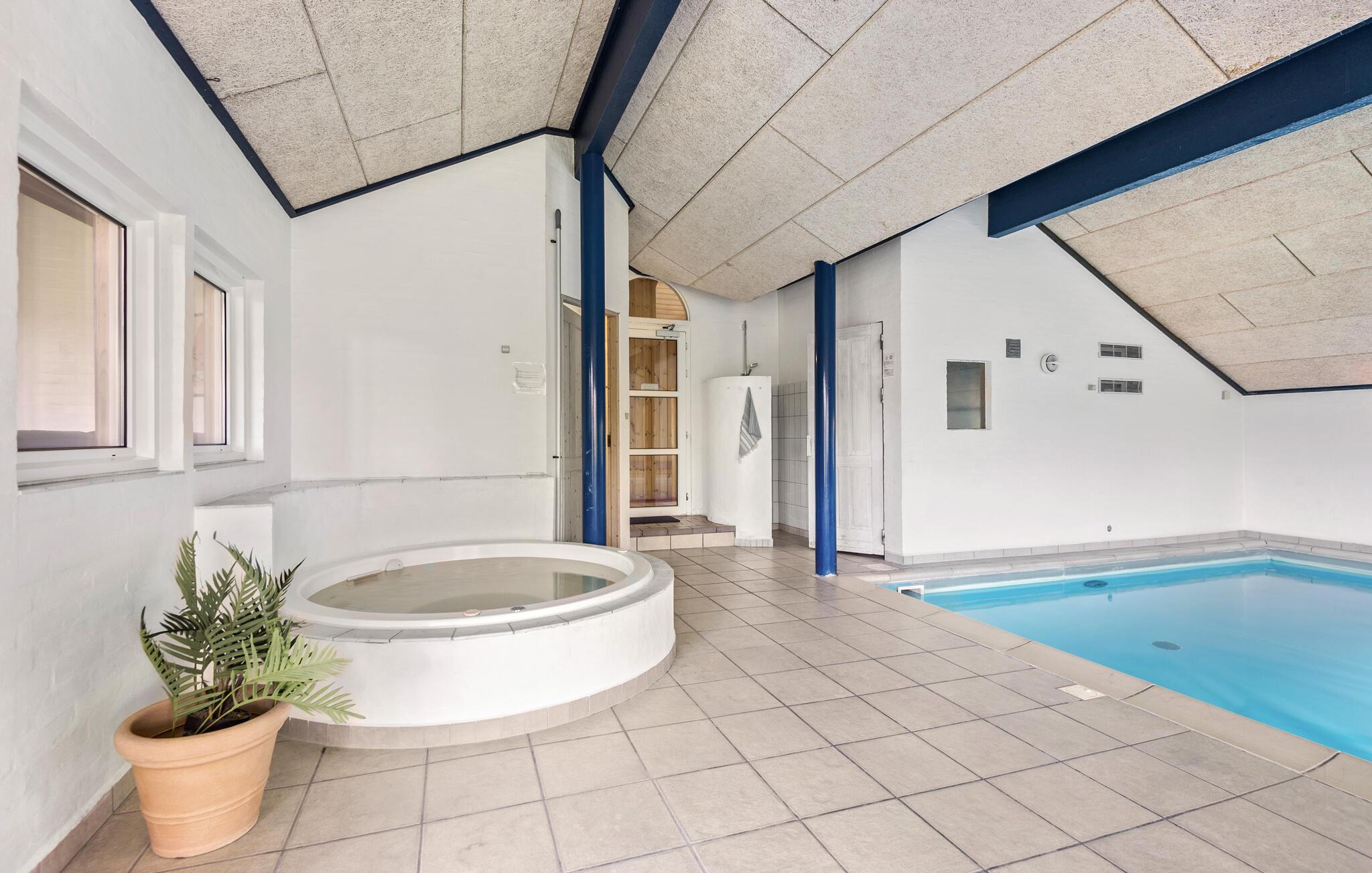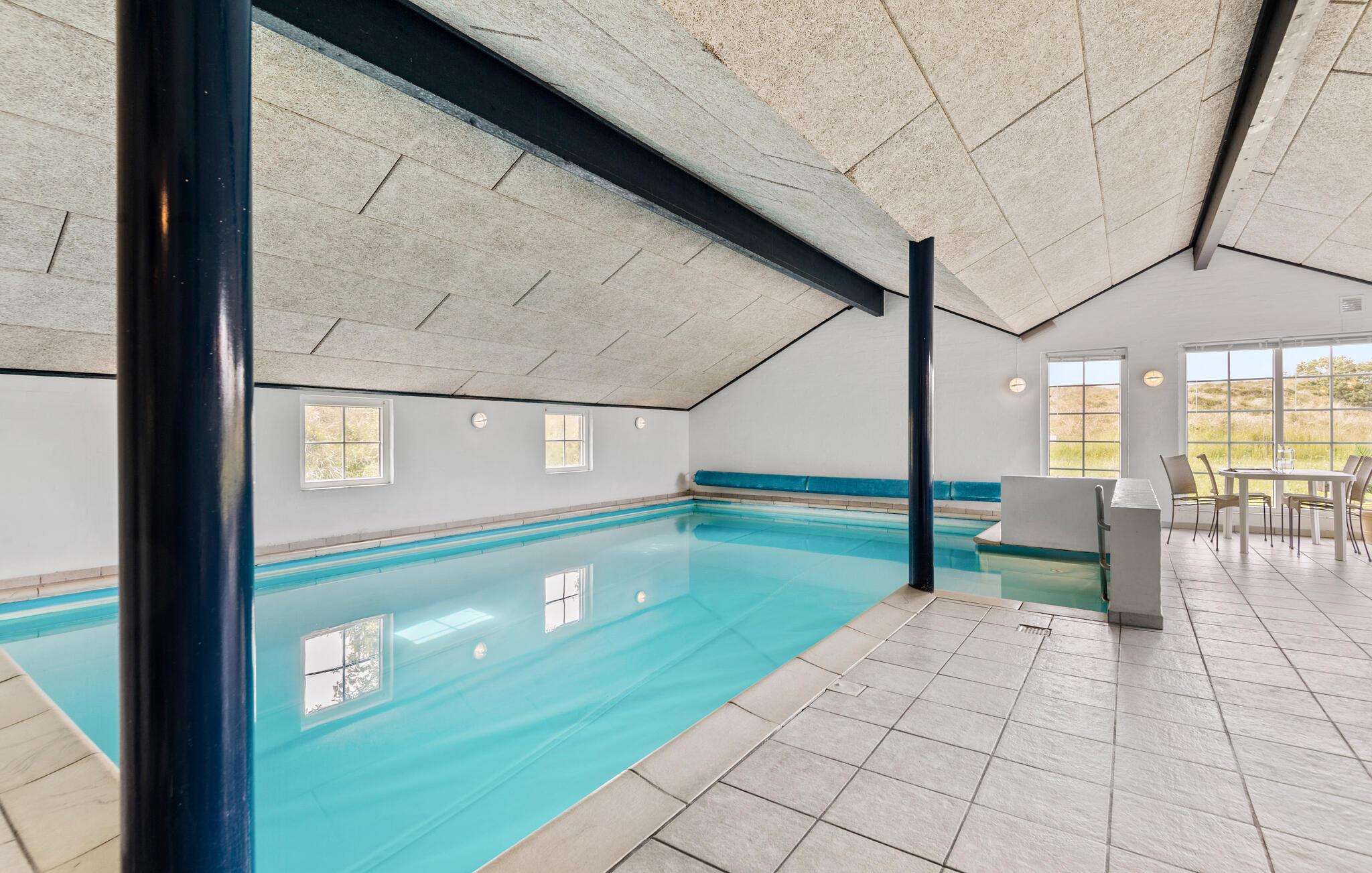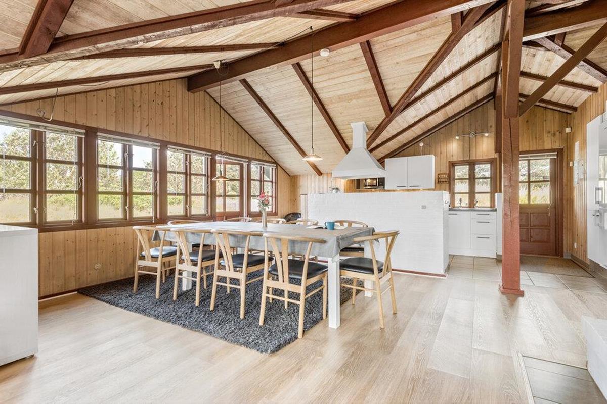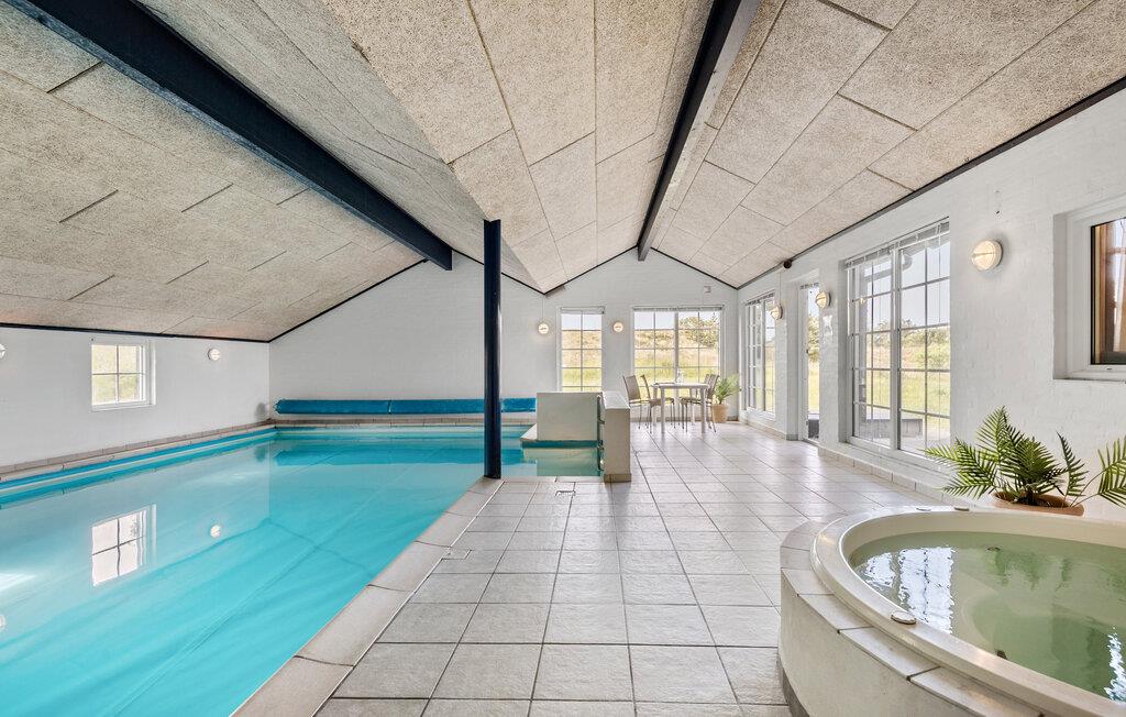 Centraal gelegen in Blåvand, op een groot, deels heuvelachtig natuurgrondstuk, staat dit mooie vakantiehuis, op slechts 1300 m van de Noordzee. Het huis werd in 1992 gemoderniseerd en beschikt over alle denkbare comfort, bijv. een zwembad van 40 m² met tegenstroominstallatie. Het zwembad heeft ook lichte stenen muren, klinkervloeren en een grote whirlpool voor 5 personen, sauna en apart toilet en douche. Een grote extra badkamer met vloerverwarming maakt deel uit van het huis. De lichte keuken is gecombineerd met de woonkamer en is gezellig, licht gebeitste muren, parketvloeren en tapijten. De grote ramen laten u uitkijken op het terrein, waar ook het gedeeltelijk open terras op u wacht. Hier bent u midden in de natuur en toch niet ver van de stad.