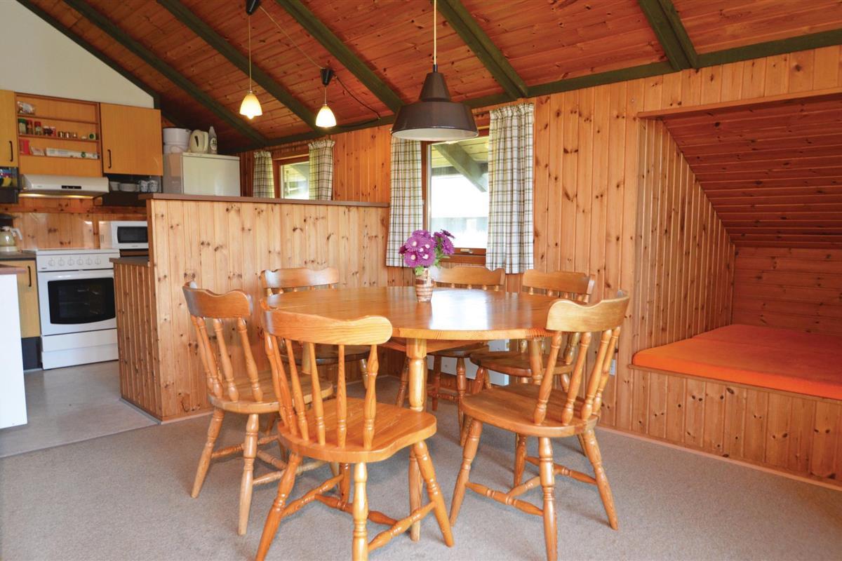 Veel hout en gezellige verlichting zorgen voor veel comfort in dit uitnodigende vakantiehuis. Geniet samen van kookavonden in de goed uitgeruste keuken en ontspan in de ruime woonkamer na lange uitstapjes. Steek de houtkachel aan en sluit de dag af met een film of een bordspel.