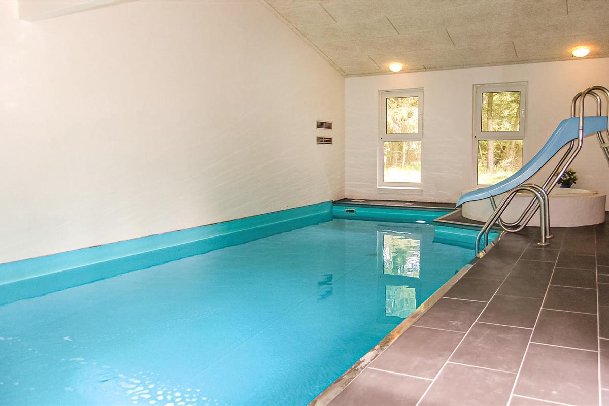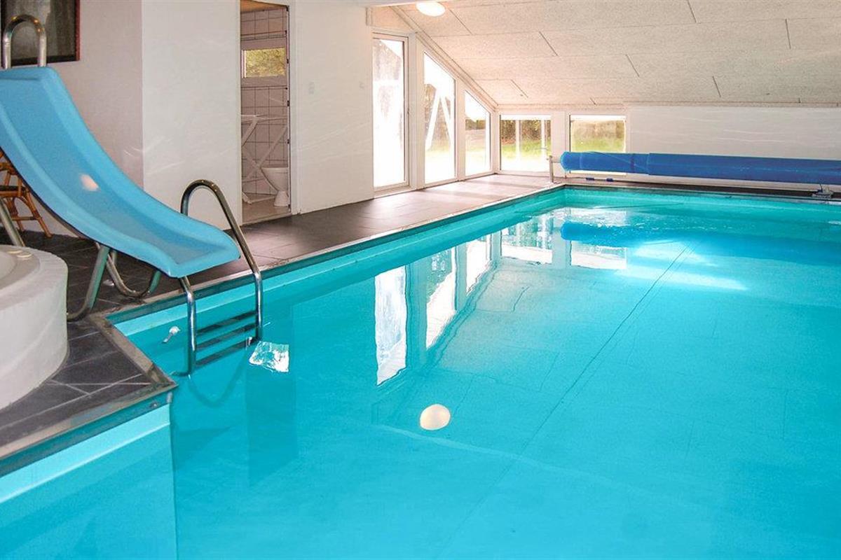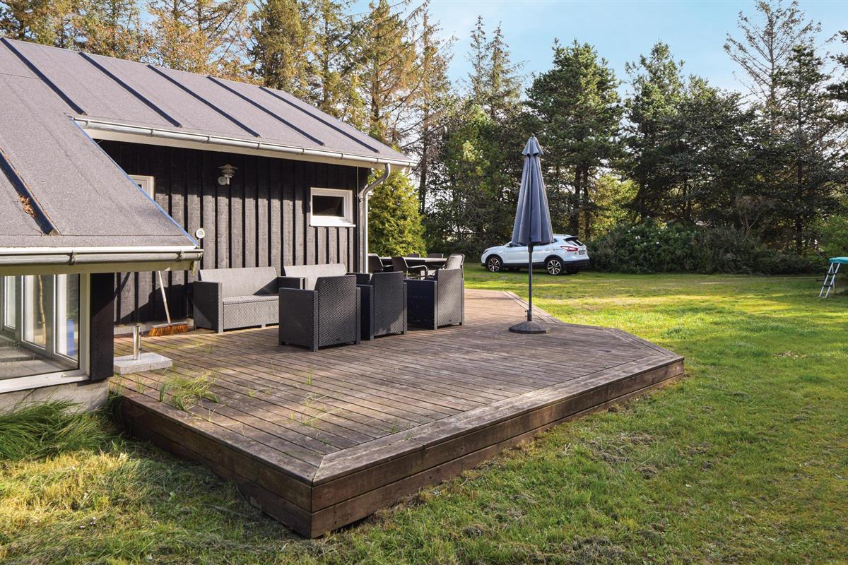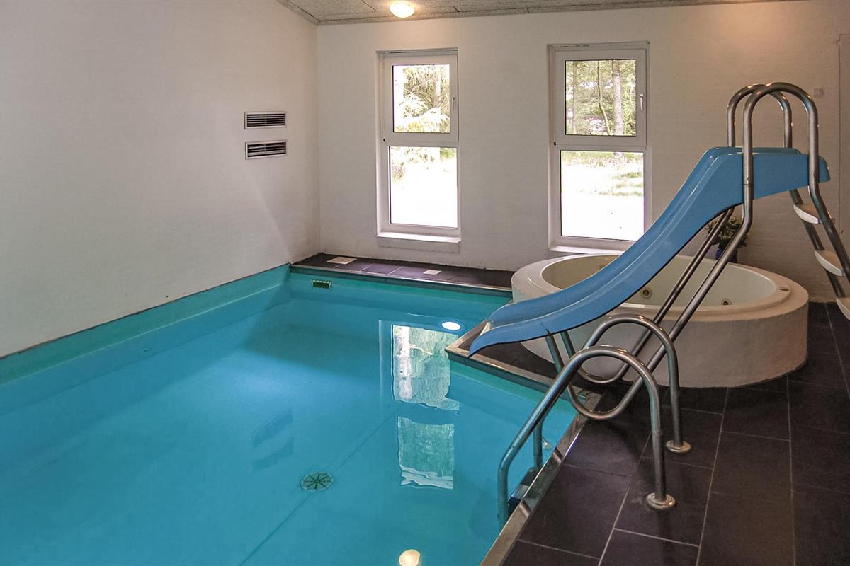 Dit mooie vakantiehuis ligt op een groot, afgesloten natuurperceel in het oostelijke deel van Blåvand. Een groot natuurgebied dat zich uitstrekt tot aan het strand ligt op slechts enkele minuten lopen. De praktische kamerverdeling en de twee badkamers maken het huis ideaal voor twee gezinnen. De aantrekkingskracht van het huis is echter zonder twijfel het 27 m² grote zwembad met glijbaan en kinderbad. Hier kunnen groot en klein urenlang en in weer en wind ravotten. Sauna is ook beschikbaar in het huis. Het huis is modern ingericht met mooi meubilair dat goed past bij de rest van het interieur.