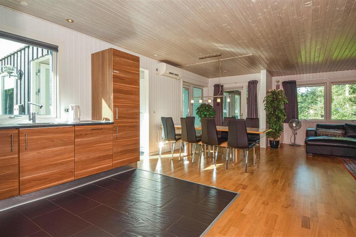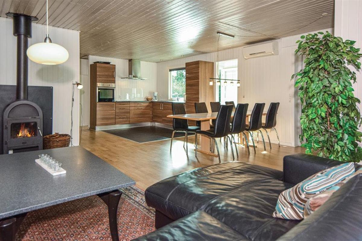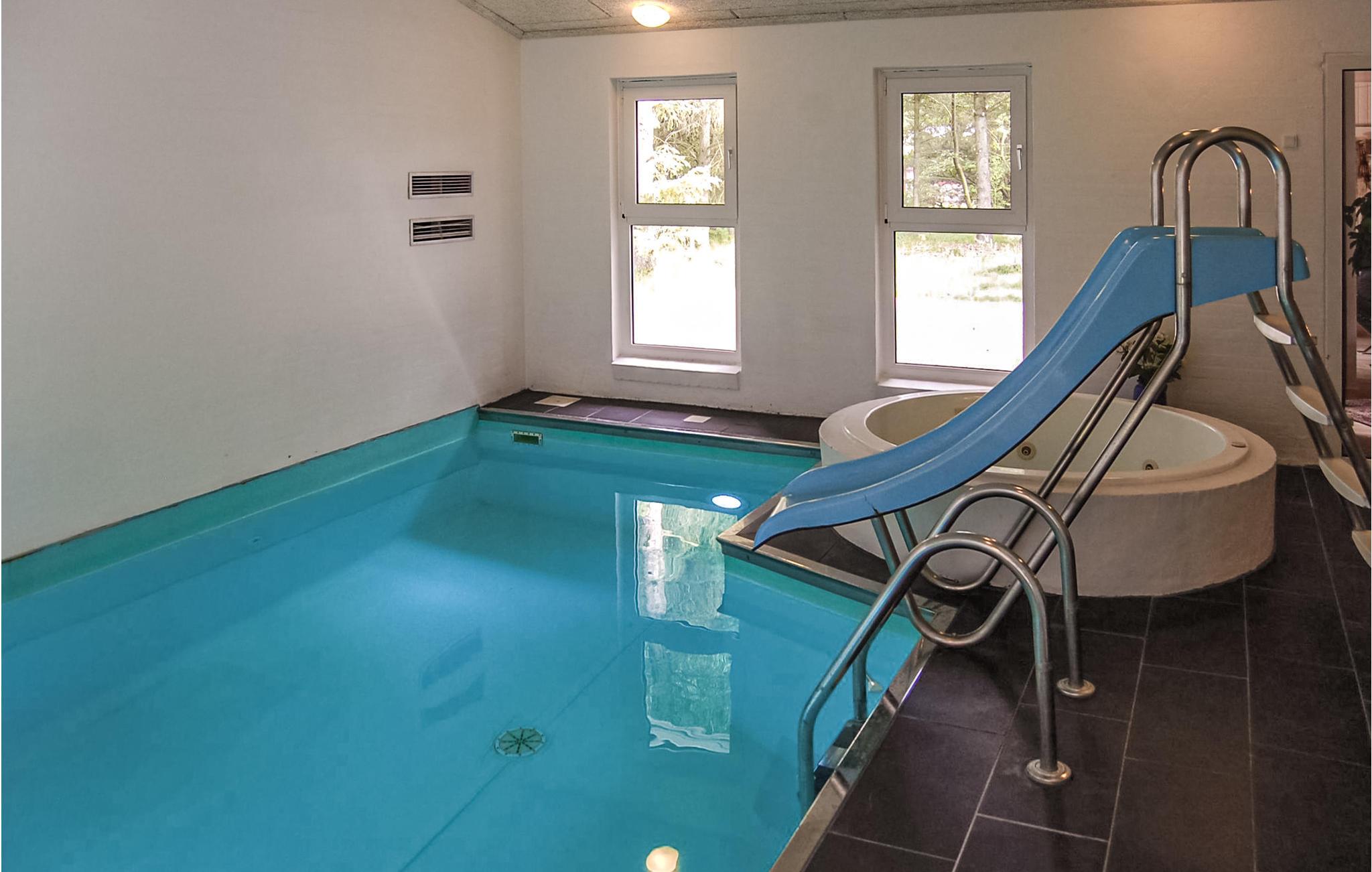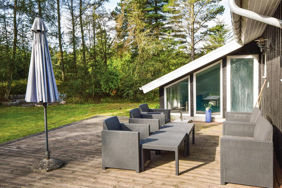 Dit mooie vakantiehuis ligt op een groot, afgesloten natuurperceel in het oostelijke deel van Blåvand. Een groot natuurgebied dat zich uitstrekt tot aan het strand ligt op slechts enkele minuten lopen. De praktische kamerverdeling en de twee badkamers maken het huis ideaal voor twee gezinnen. De aantrekkingskracht van het huis is echter zonder twijfel het 27 m² grote zwembad met glijbaan en kinderbad. Hier kunnen groot en klein urenlang en in weer en wind ravotten. Sauna is ook beschikbaar in het huis. Het huis is modern ingericht met mooi meubilair dat goed past bij de rest van het interieur.