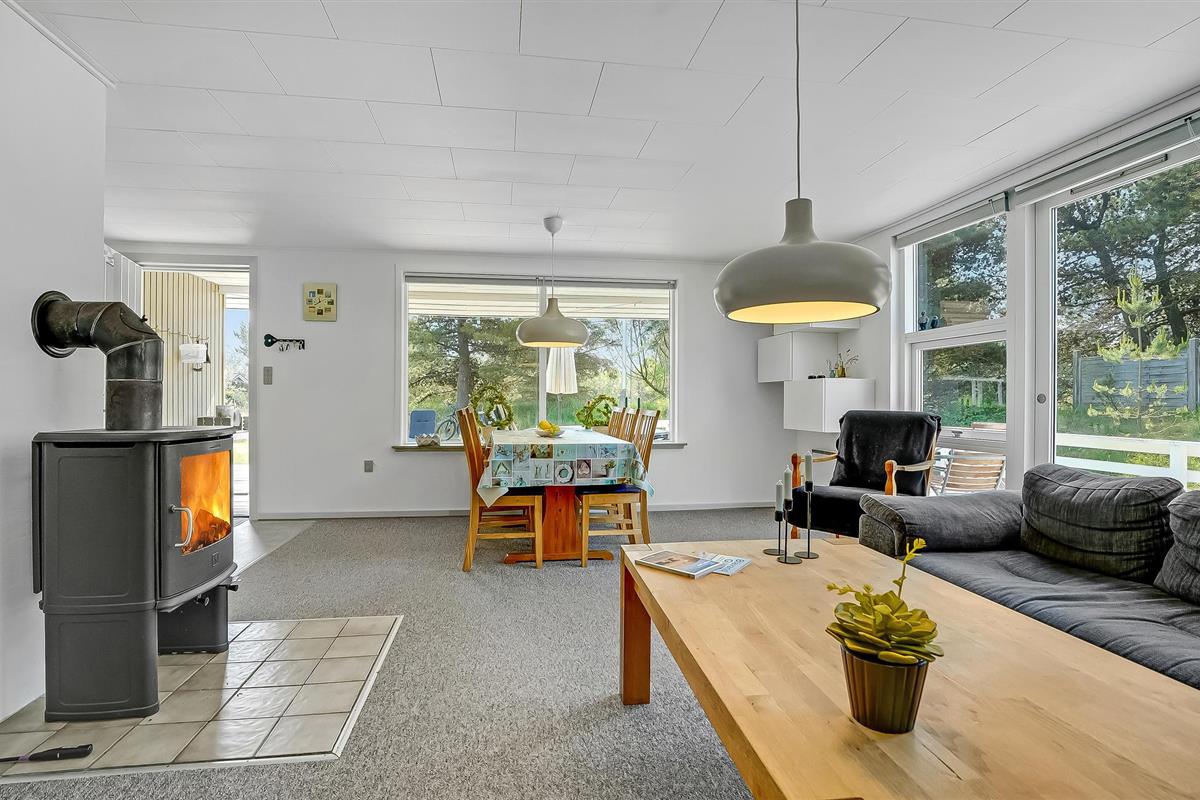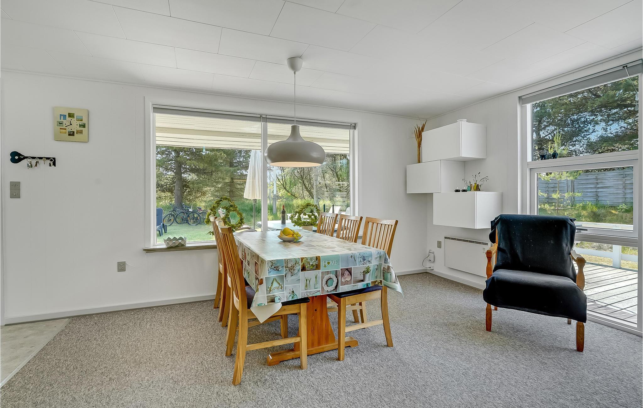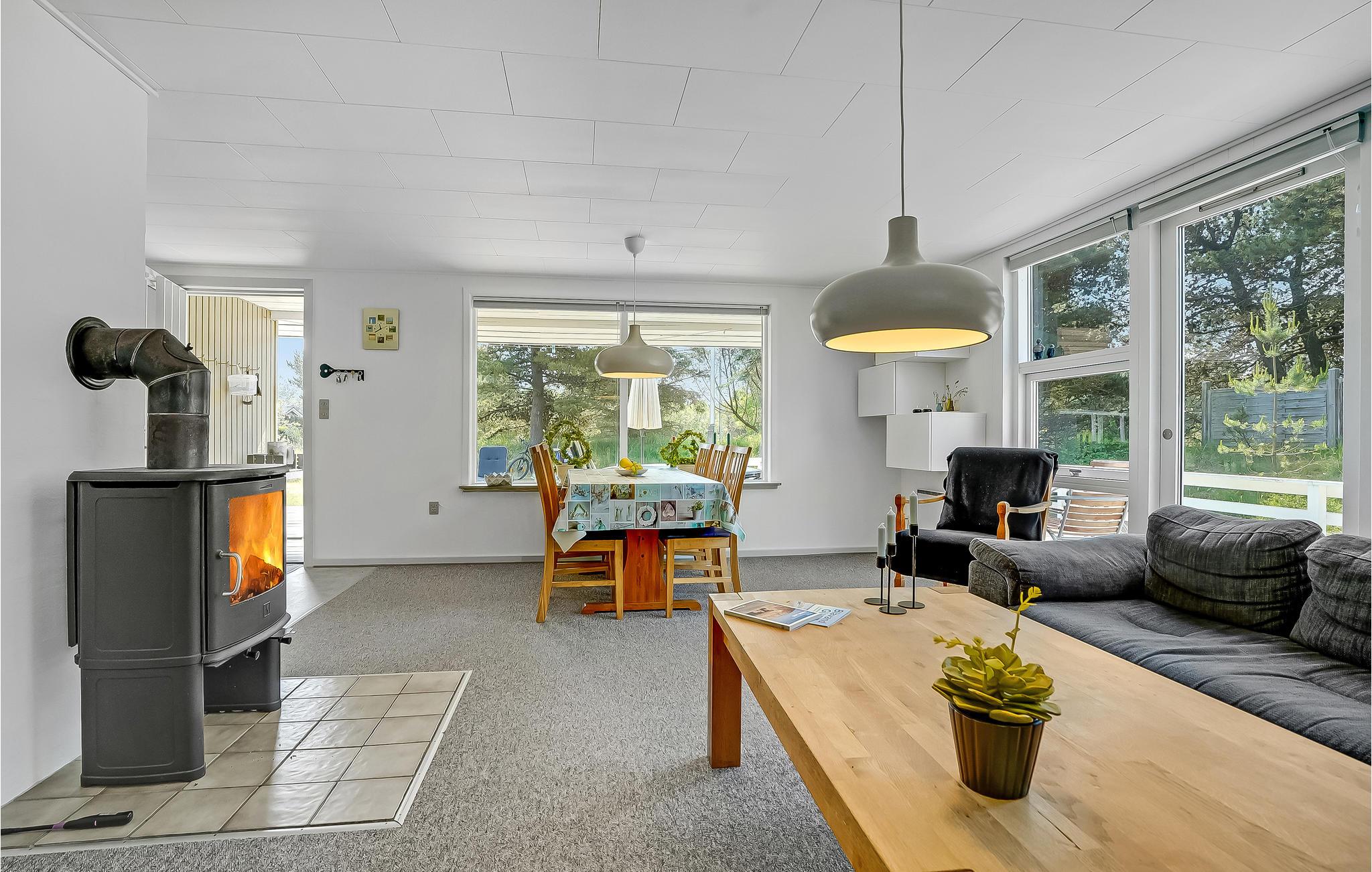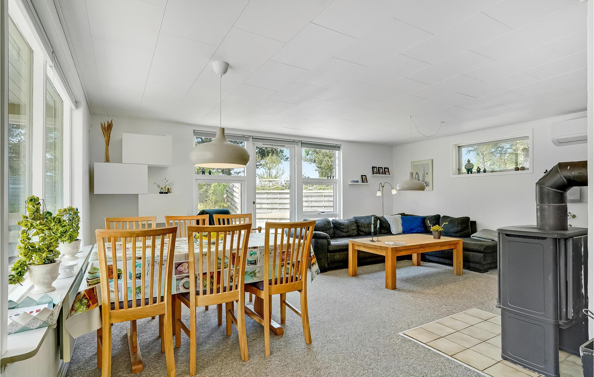 Op slechts een paar minuten lopen van het centrum van Blåvand wacht dit gezellige, zandkleurige houten huis op je op een ruim natuurperceel. Hier vind je alles wat je nodig hebt voor een zorgeloze vakantie met veel tijd voor het gezin en onvergetelijke momenten in de natuur. De grote ramen in de woonkamer laten daglicht binnenstromen en zorgen voor een lichte, uitnodigende sfeer. In de keuken kun je samen met de kinderen een taart bakken, waar je dan aan de eettafel of in de zithoek van kunt genieten, misschien met een spannend bordspel of een leuke familiequiz.