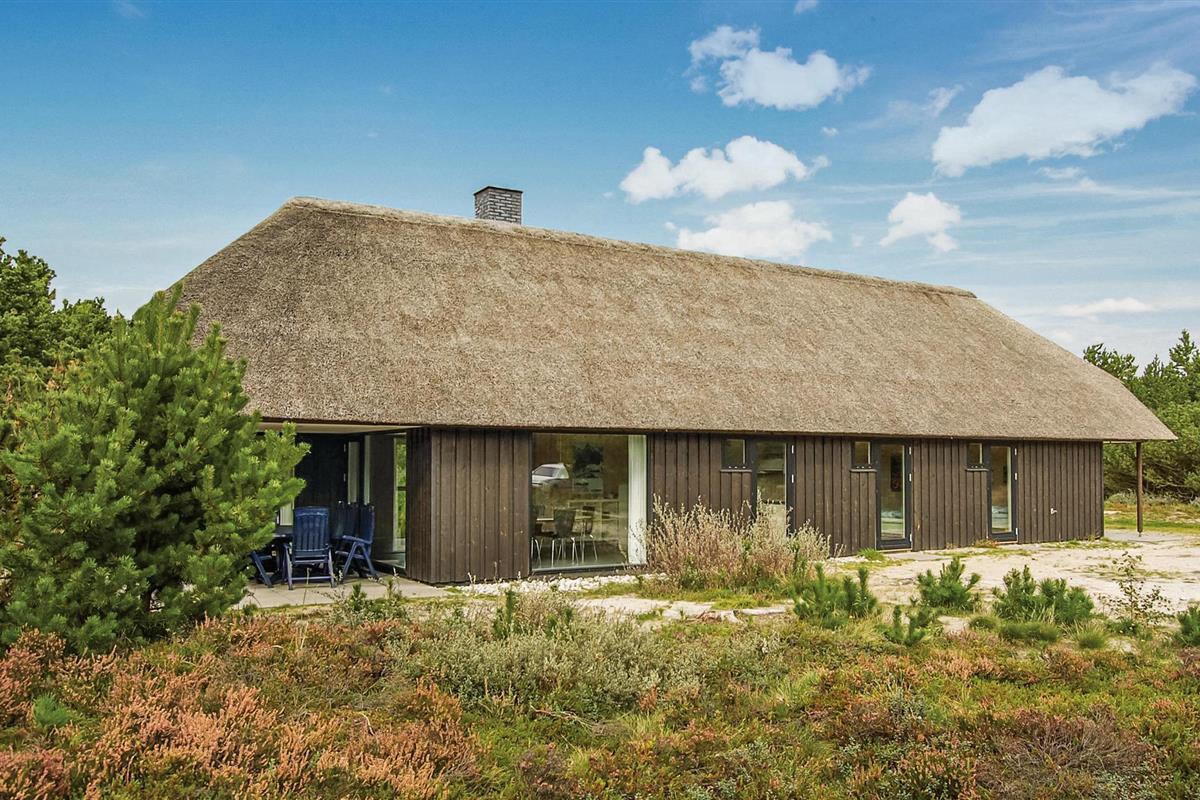 Rustig rietgedekt vakantiehuis met sauna, nabij strand en winkels in Blåvand, Denemarken.