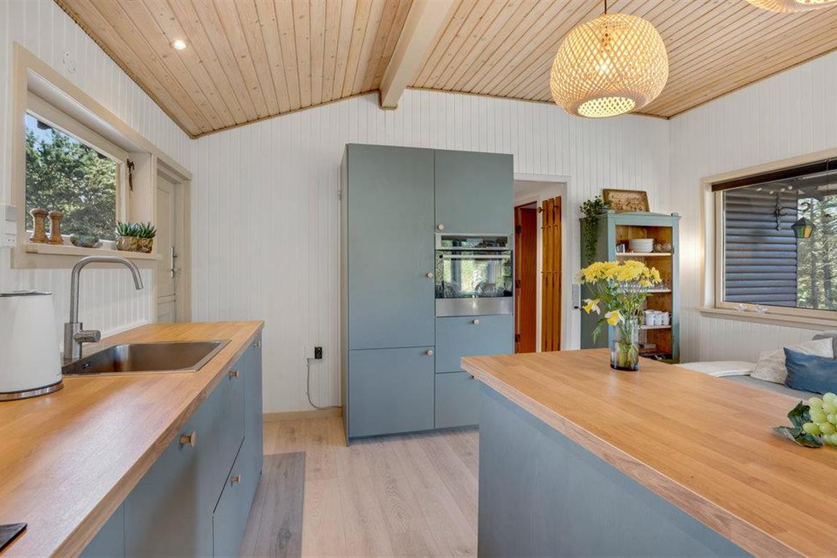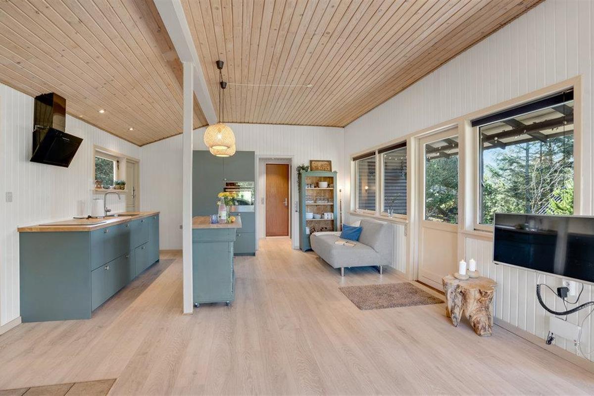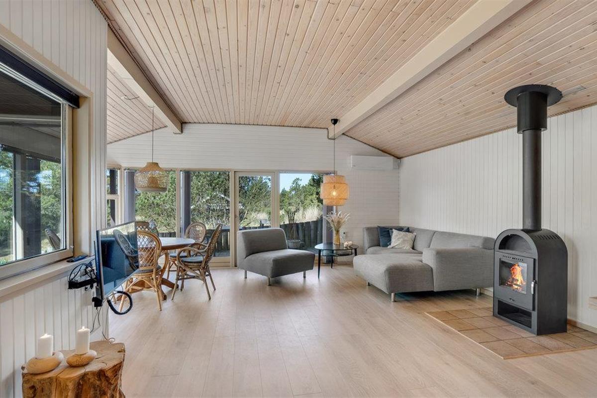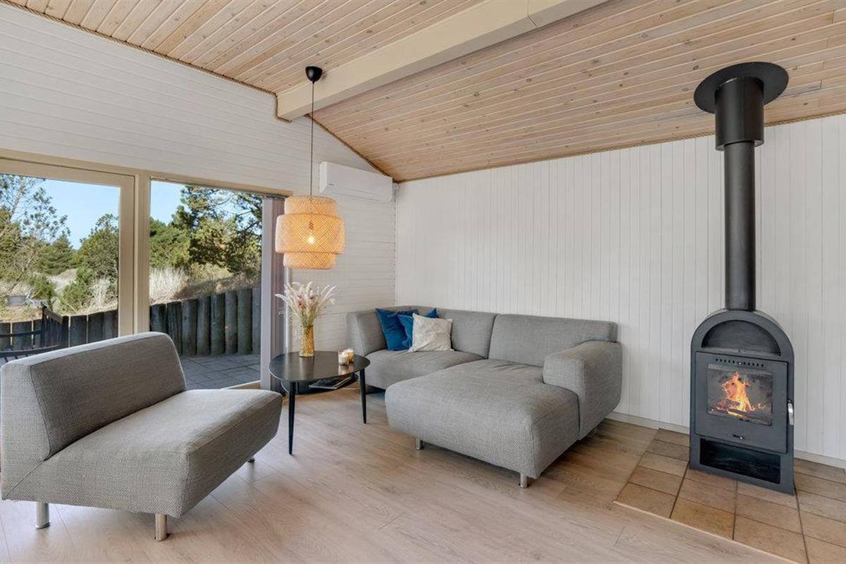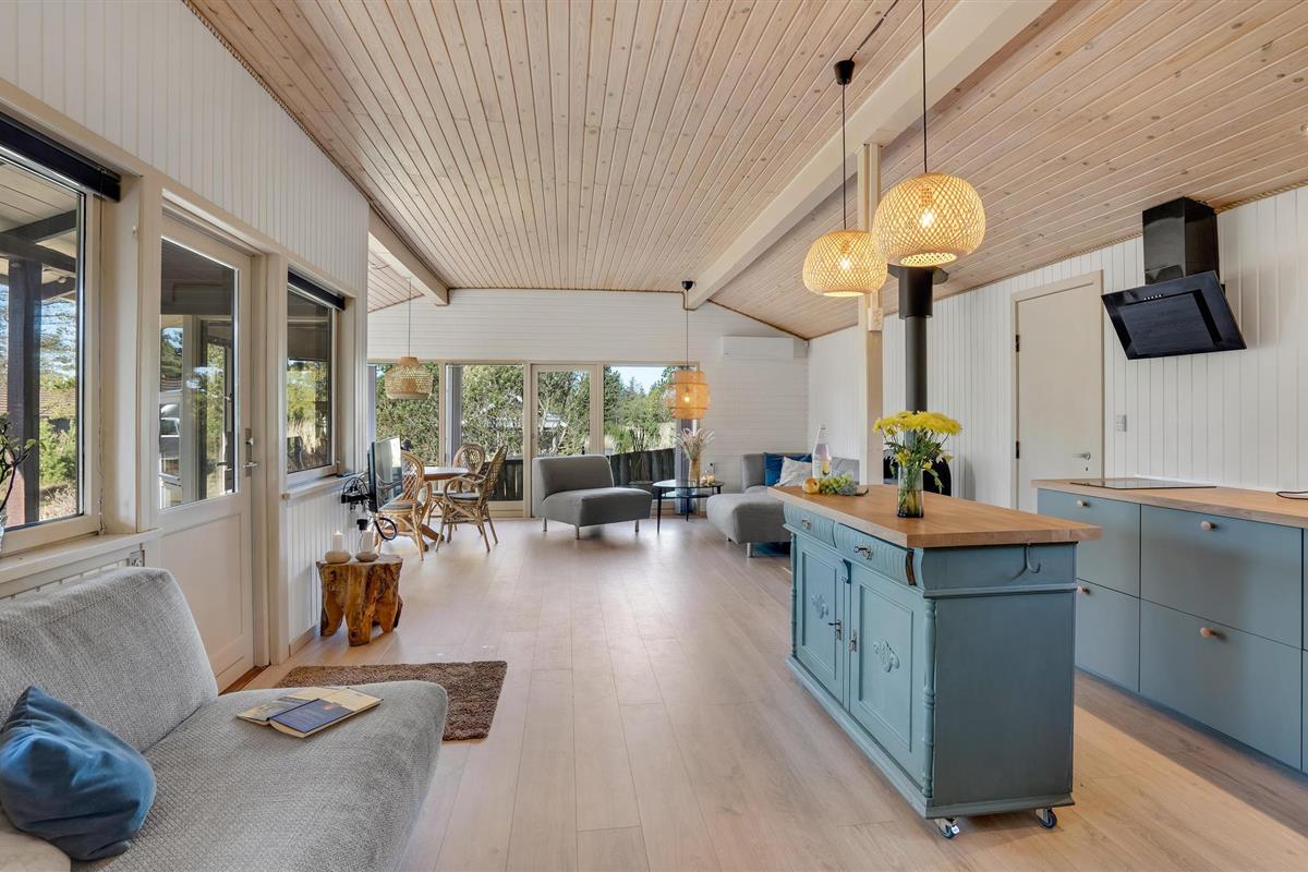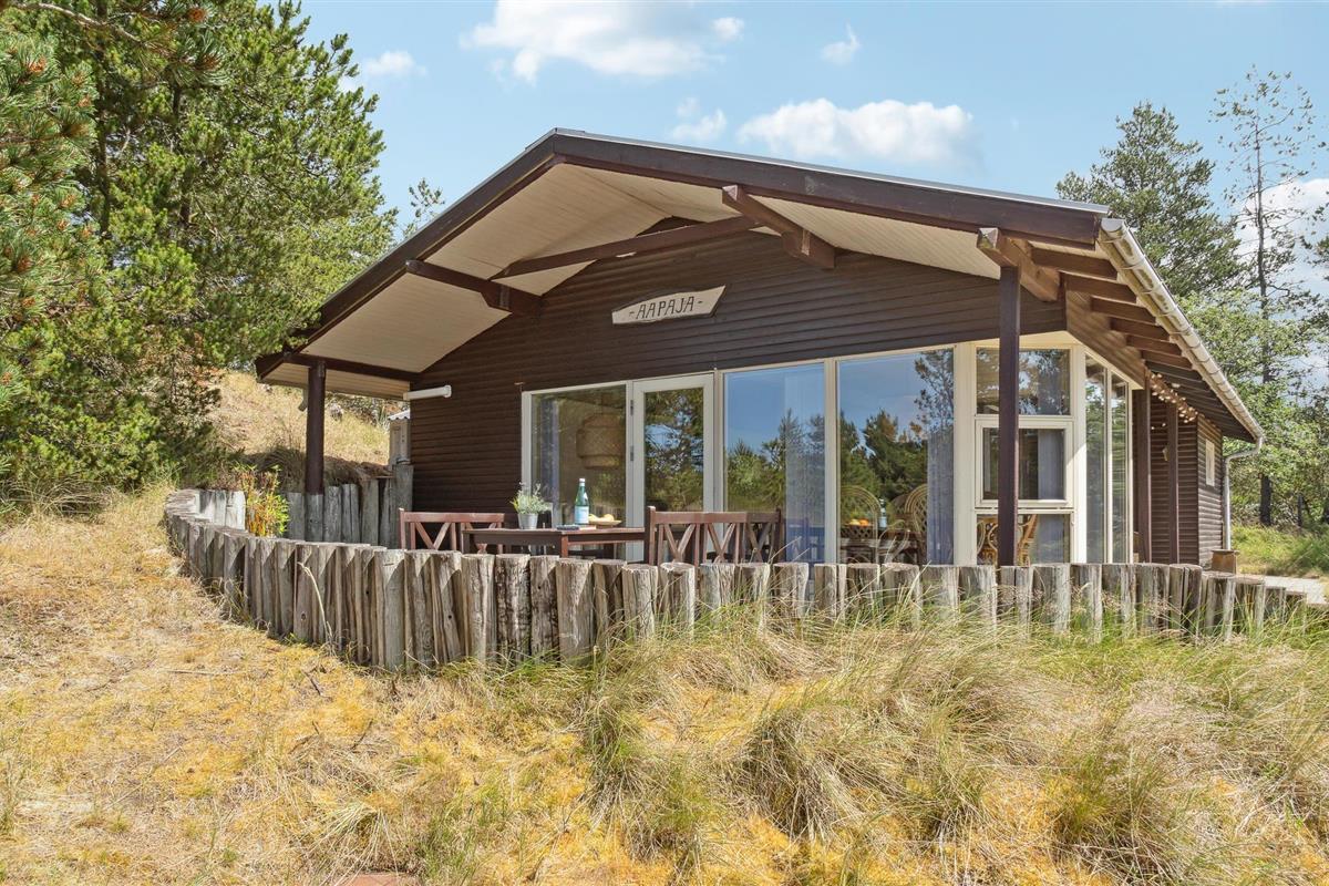 Dit gezellige vakantiehuis ligt op een prachtig perceel aan het einde van een klein pad. De grote woonkamer is licht en vriendelijk en de vele grote glaspartijen zorgen voor een prachtig uitzicht op de mooie tuin. Rondom het huis zijn verschillende goede en windvrije terrassen. De omgeving nodigt uit tot lange wandelingen in de natuur, waar u zowel het strand als duinen, bos- en heidegebieden kunt ervaren. Het is echter ook niet ver van het huis naar de stad Blåvand.