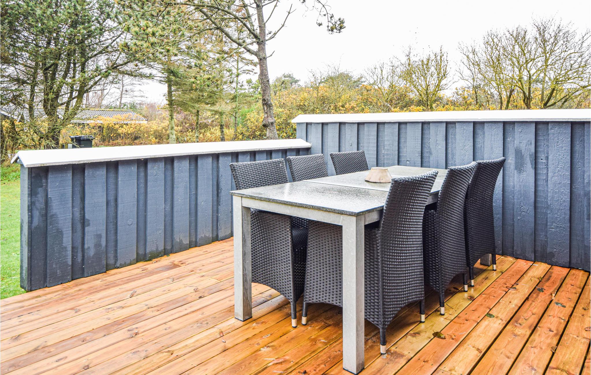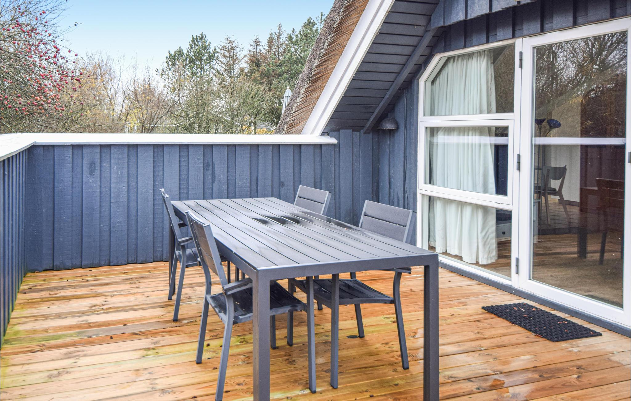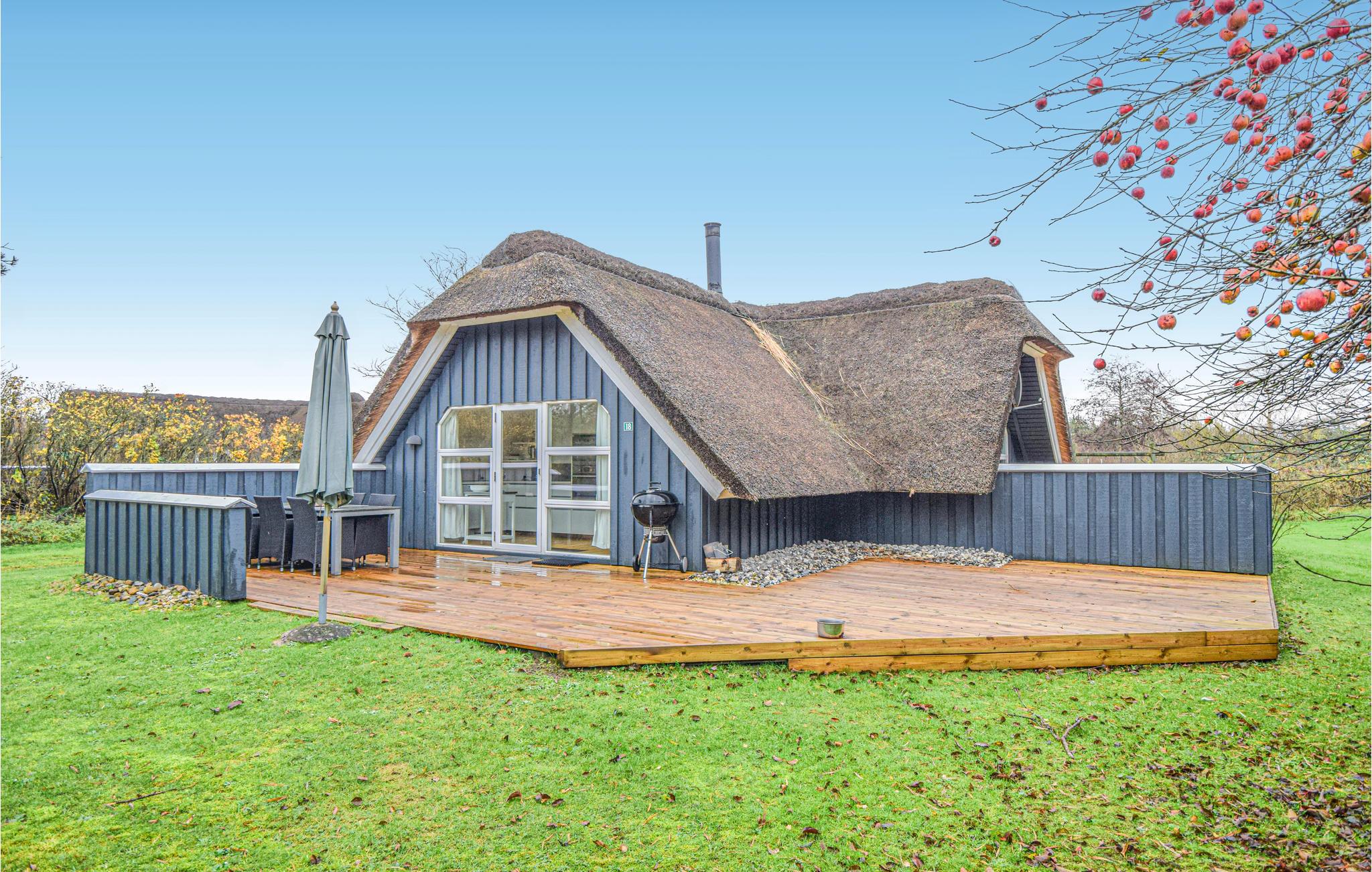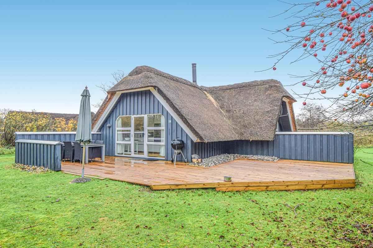 Op slechts 400 m van het water staat dit mooie houten huis met rieten dak. Het is goed ingericht, met goed en functioneel meubilair. Het huis wordt gekenmerkt door vele gemakken. Na een snelle wandeling op het strand of in de natuurlijk prachtige omgeving, zal een verblijf in de jacuzzi voor twee een genot zijn. Daarna kunt u naar de woonkamer gaan om te ontspannen voor de warme, gezellige open haard. Het huis heeft een prachtig houten terras van 115 m2, dat in de zomermaanden veel gebruikt zal worden. Of u nu alleen van het weer wilt genieten of ook lekker eten op de barbecue wilt bereiden.