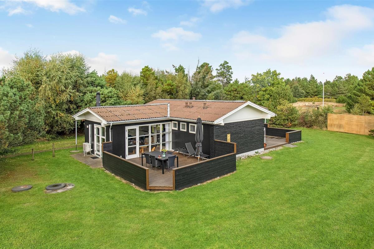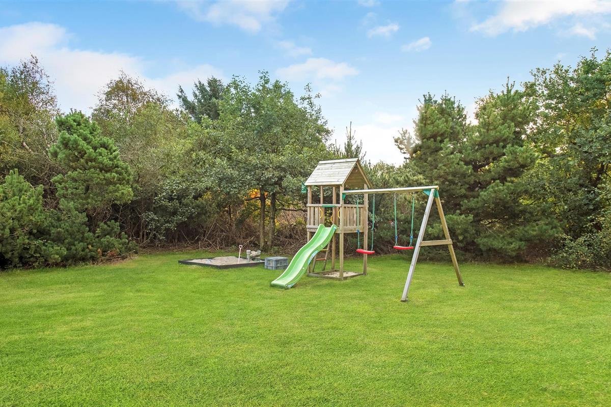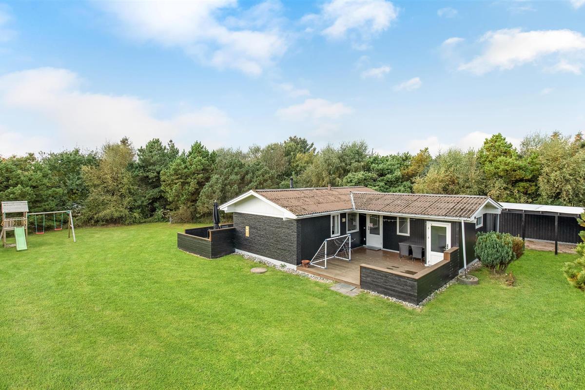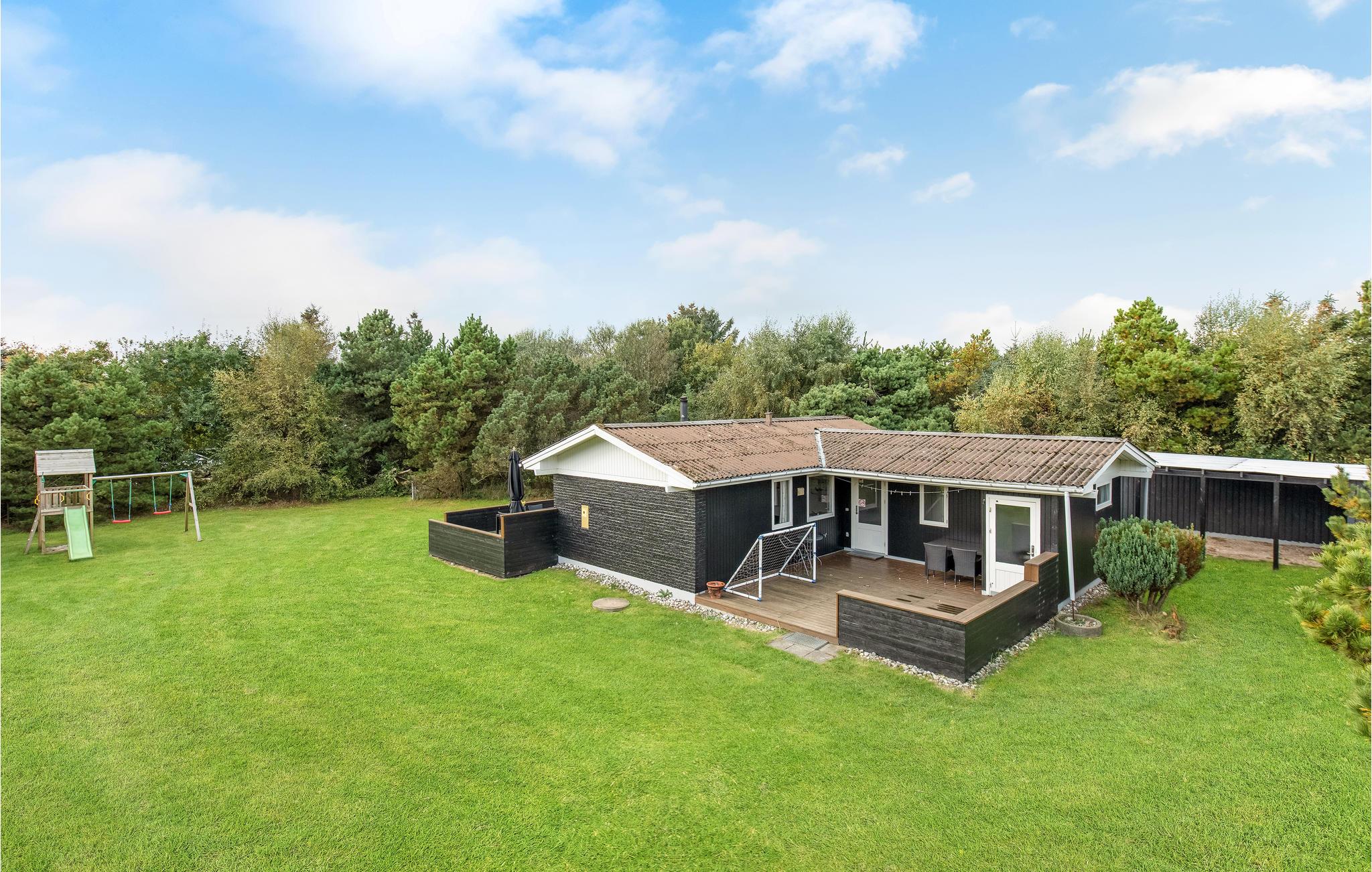 Gezellig houten vakantiehuis in Blåvand met sauna, bubbelbad en speelplek, vlak bij natuur en centrum.