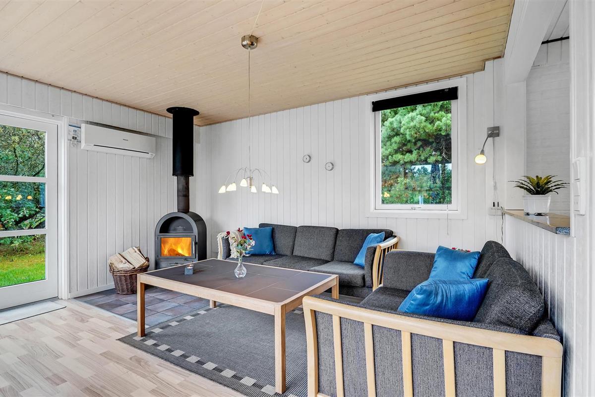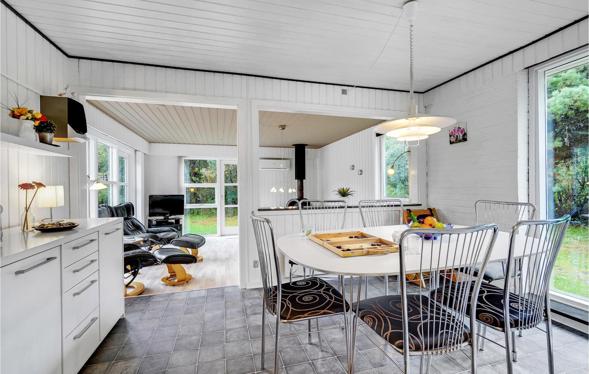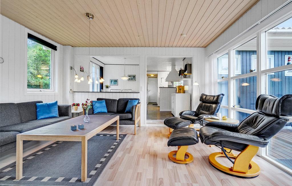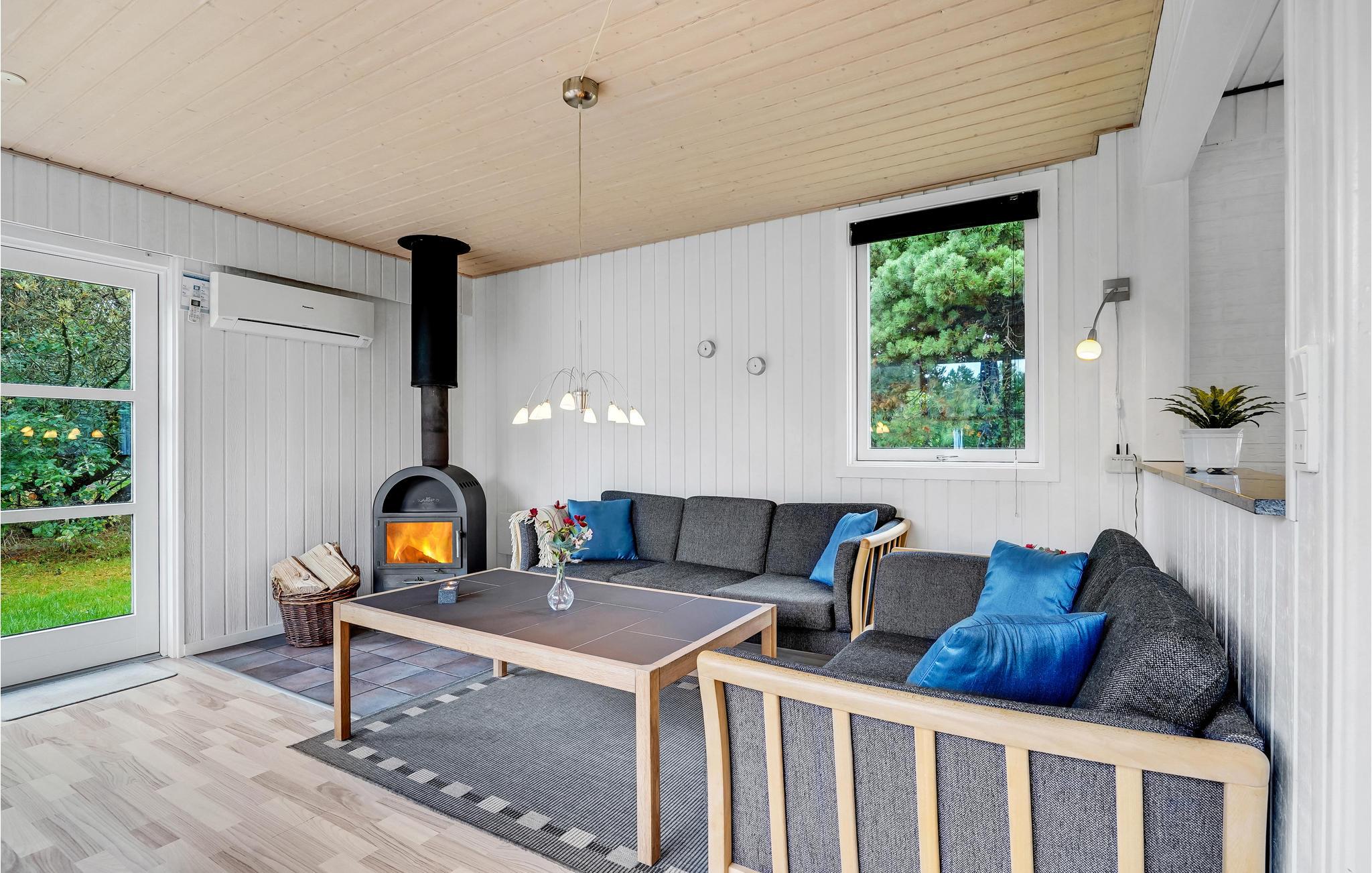 De houten muren en plafonds creëren een gezellige sfeer. De rijke inrichting omvat een vijfpersoons bubbelbad en een sauna voor verwenmomenten. In de lichte woonkamer kun je in een fauteuil naast de houtkachel een goed boek lezen of een film kijken. Je hebt ook toegang tot een ruim terras met een barbecue en ligstoelen op een perceel beschermd tegen inkijk. Dit biedt je ideale omstandigheden om te zonnebaden en een overdekt terras waar je kunt genieten van de frisse lucht terwijl je kijkt naar de steeds veranderende wolkenformaties. Er is ook een voetbalgoal, schommel en zandbak, evenals een speeltoren. Alle gezinsleden zullen hier gelukkig zijn en genieten van hun tijd in Denemarken.